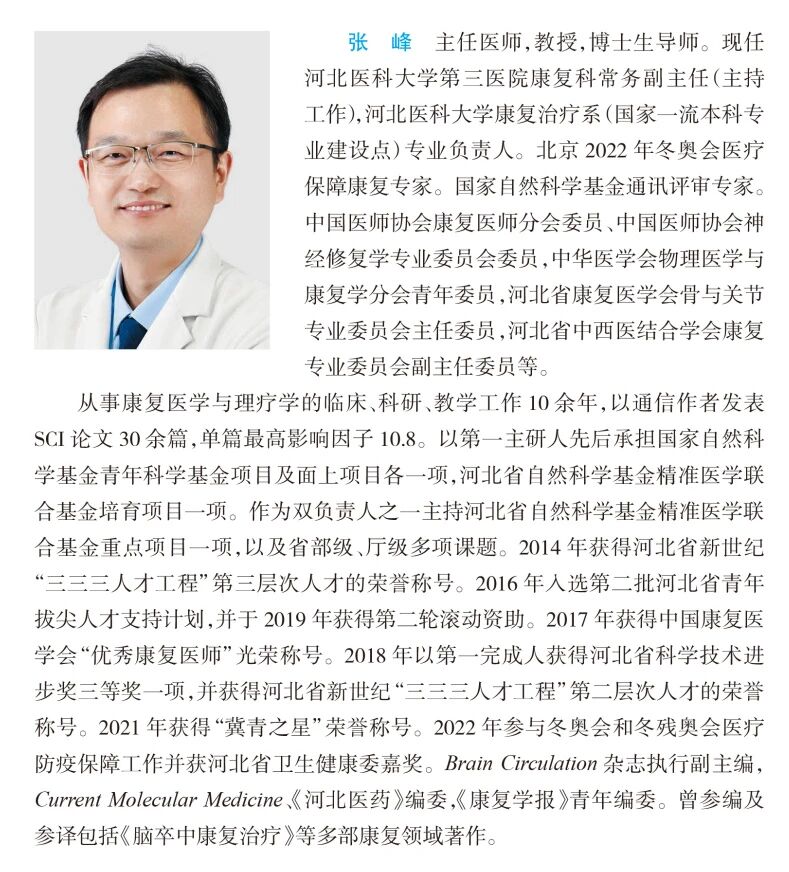 主任医师,博士生导师。安徽医科大学第一附属医院康复医学中心原主任。安徽医科大学康复医学系主任,安徽省康复医学质控中心主任。安徽省“江淮名医”,中国康复医学会理事、中国康复医学会颈椎病专业委员会副主任委员、神经康复专业委员会常务委员;长三角康复一体化发展联盟委员会首任主席;安徽省医师协会康复医师分会主任委员。