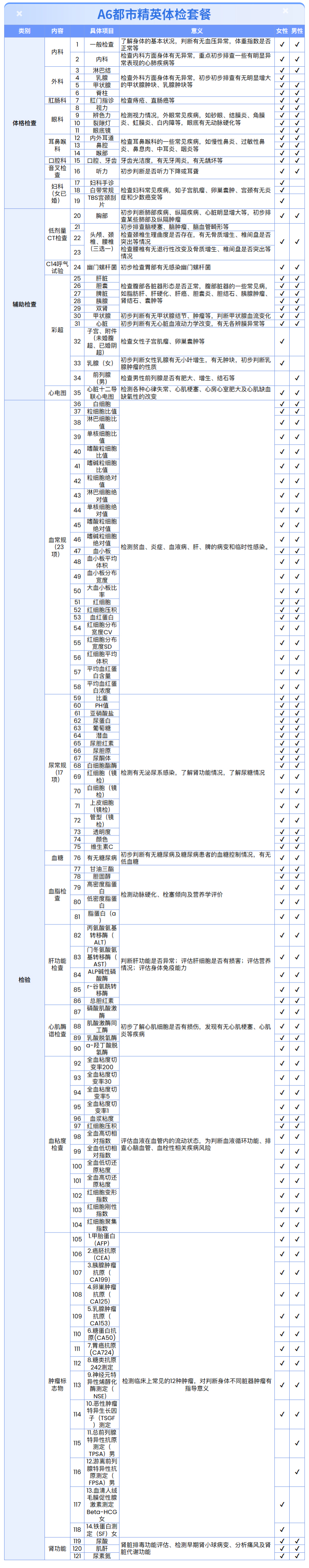【职场通用|爆款|精英尊享】含低剂CT两项+八彩超+C14+心肌酶谱+肿瘤十二项 A6
