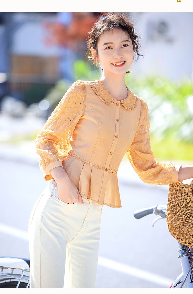 DD-仙洋气文艺衬衫女长袖春装设计感小众2023新款女娃娃领修身衬衣