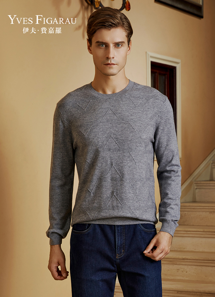 YvesFigarau伊夫·费嘉罗100%绵羊毛秋冬新款套头舒适保暖打底休闲毛衣921166