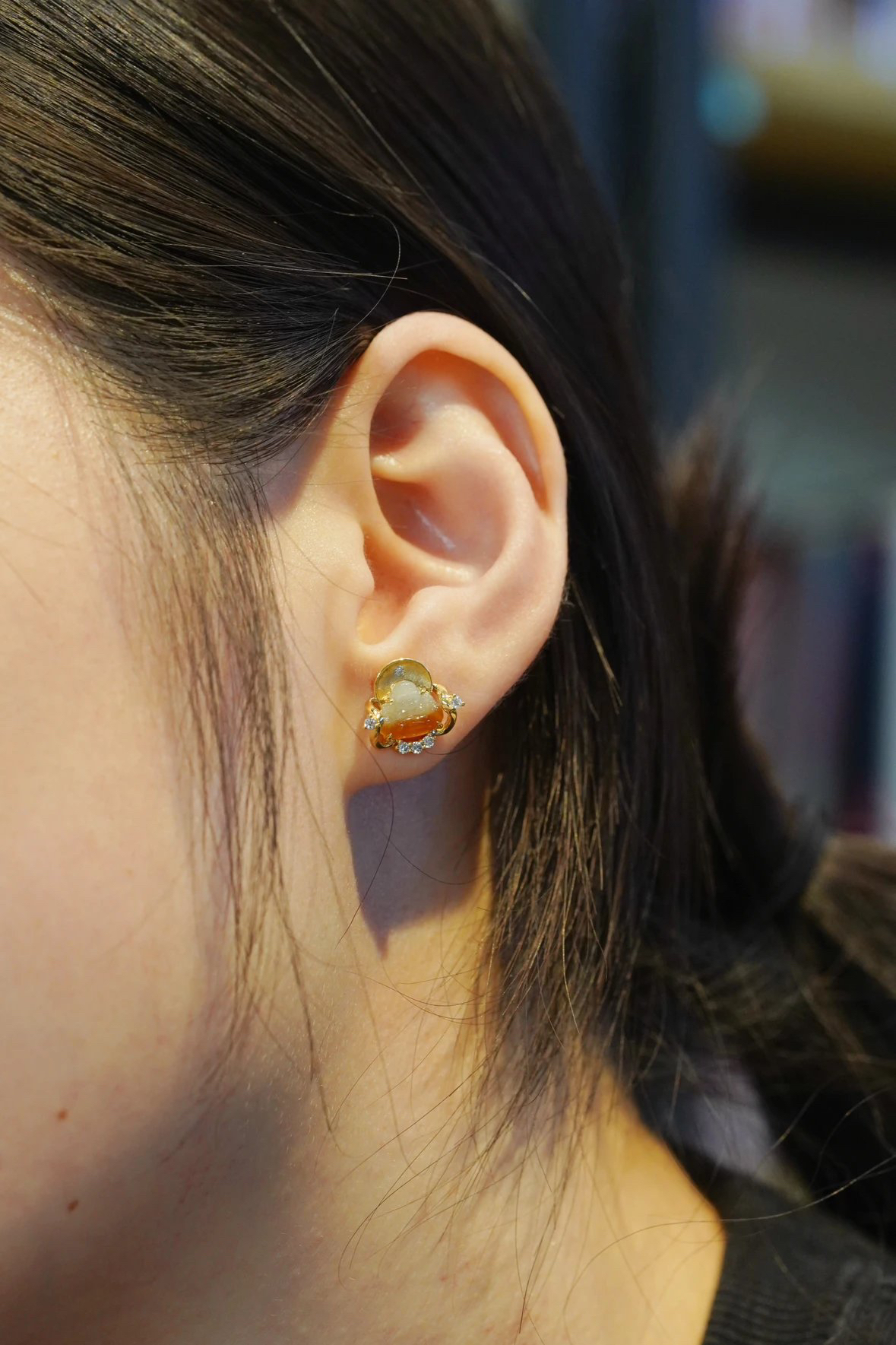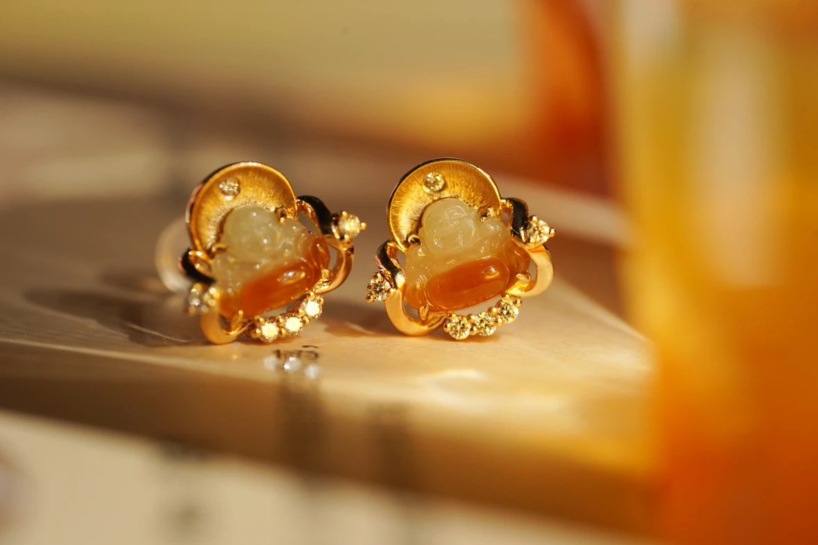 【喆】翡翠弥勒佛耳钉