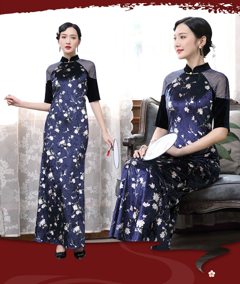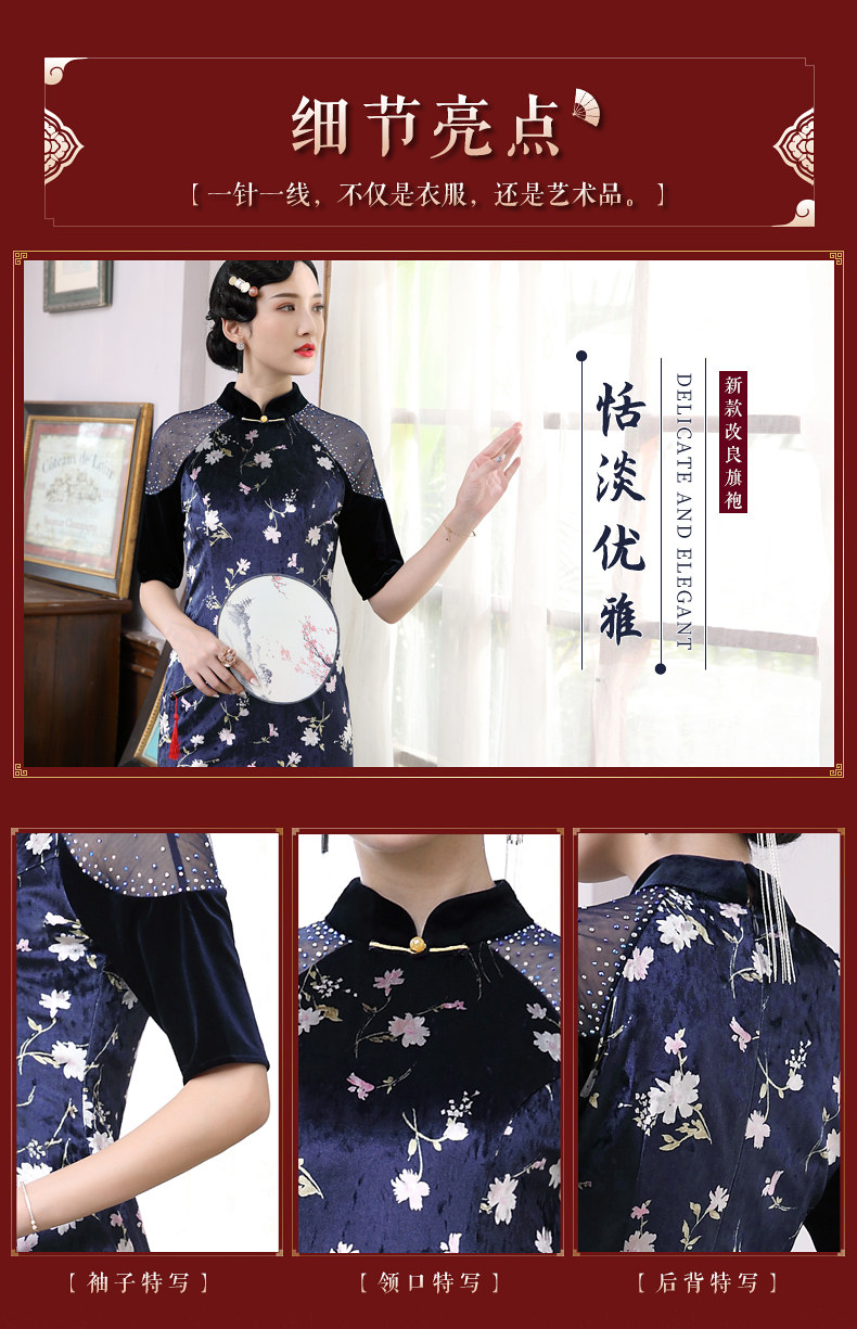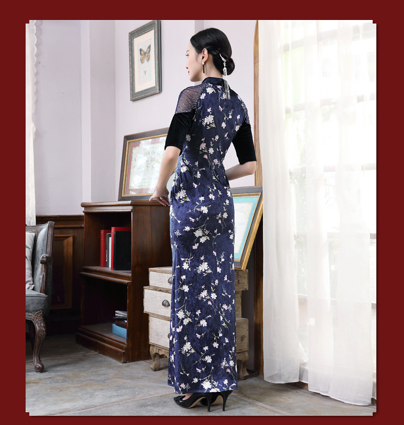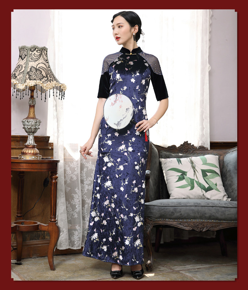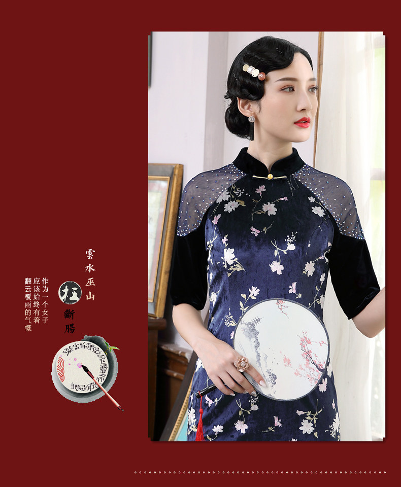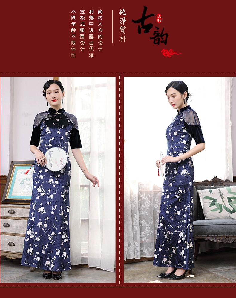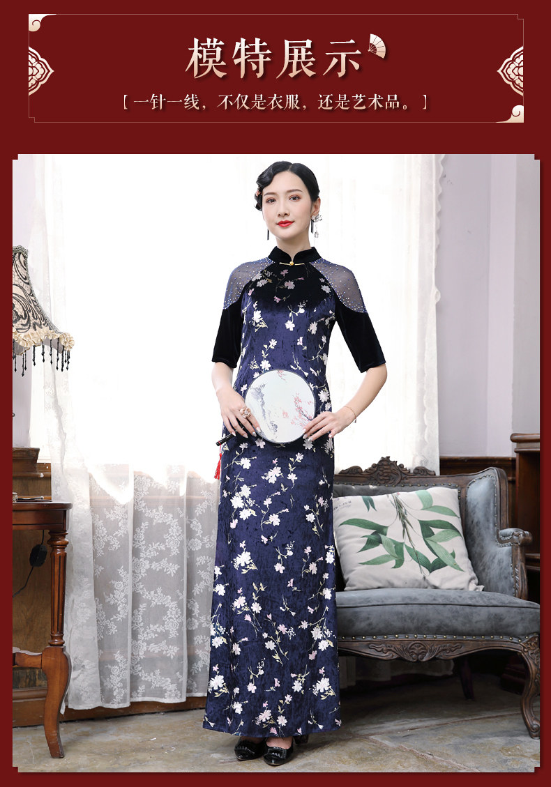 DLQ-A2186秋季长款高档蚀骨旗袍年轻款少女改良连衣裙