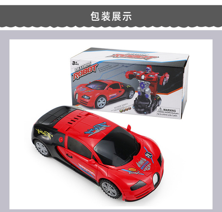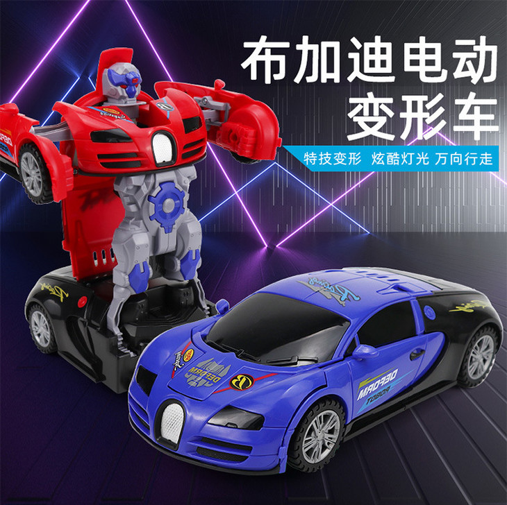 电动万向变形车布加迪音乐灯光自动变形机器人儿童玩具-S仓