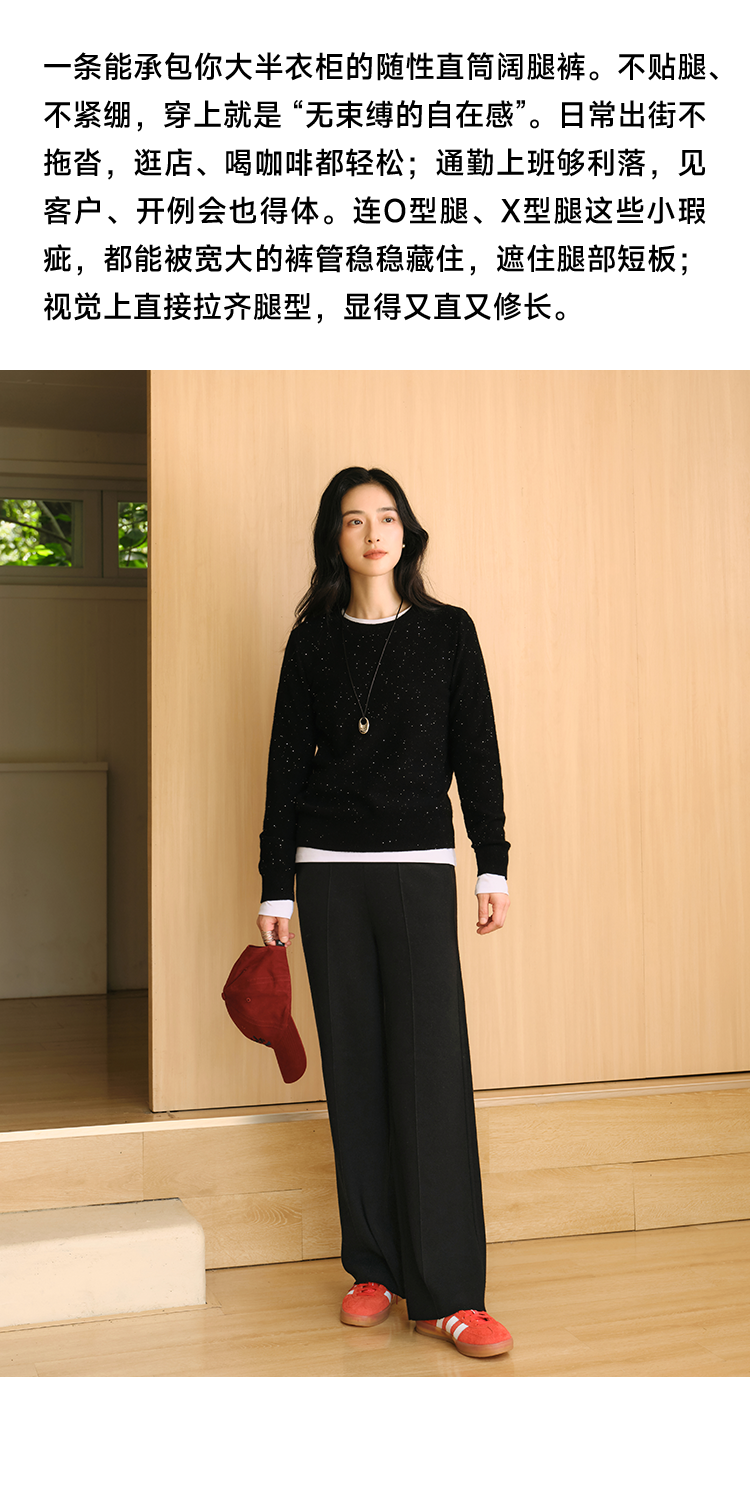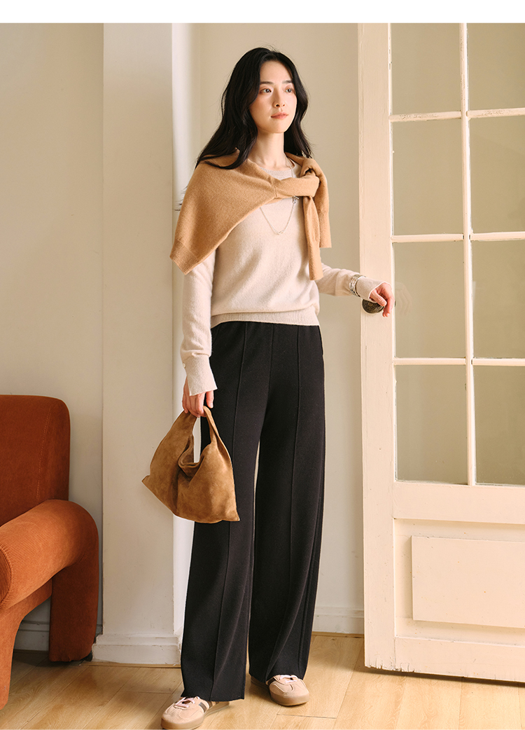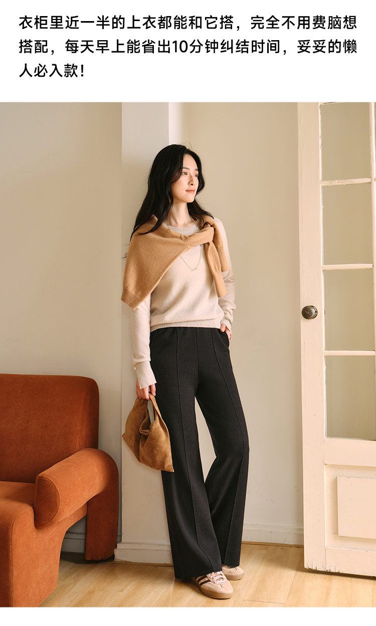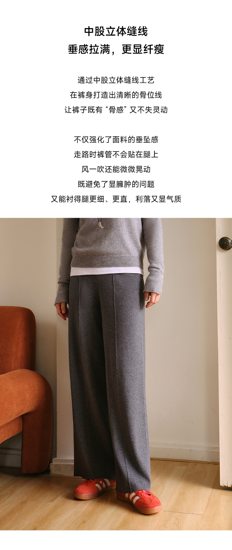 发热云朵裤 日本进口双面磨毛锁温褶裥直筒裤FB479323N