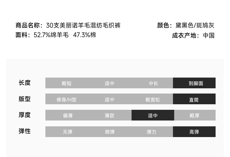 30支美丽诺羊毛混纺毛织裤FCF3WSP105