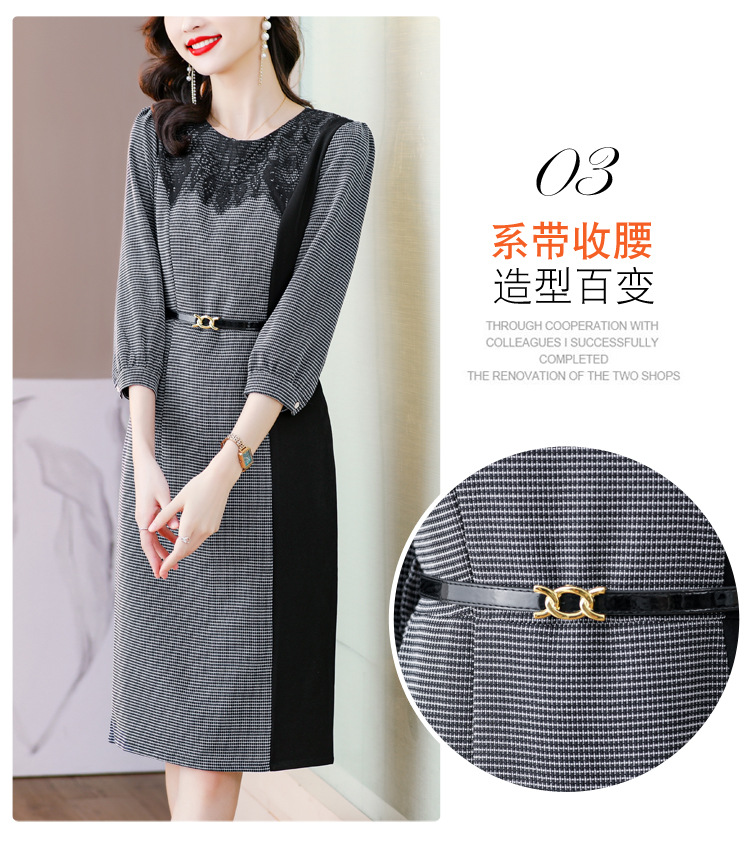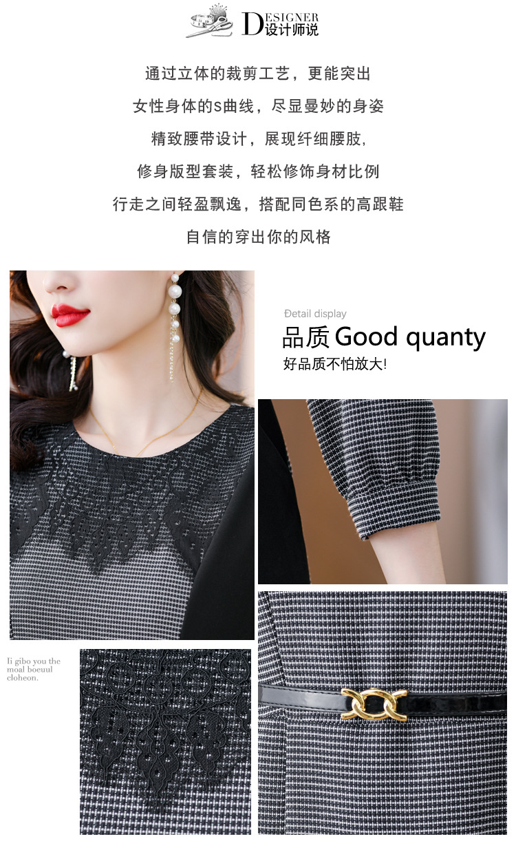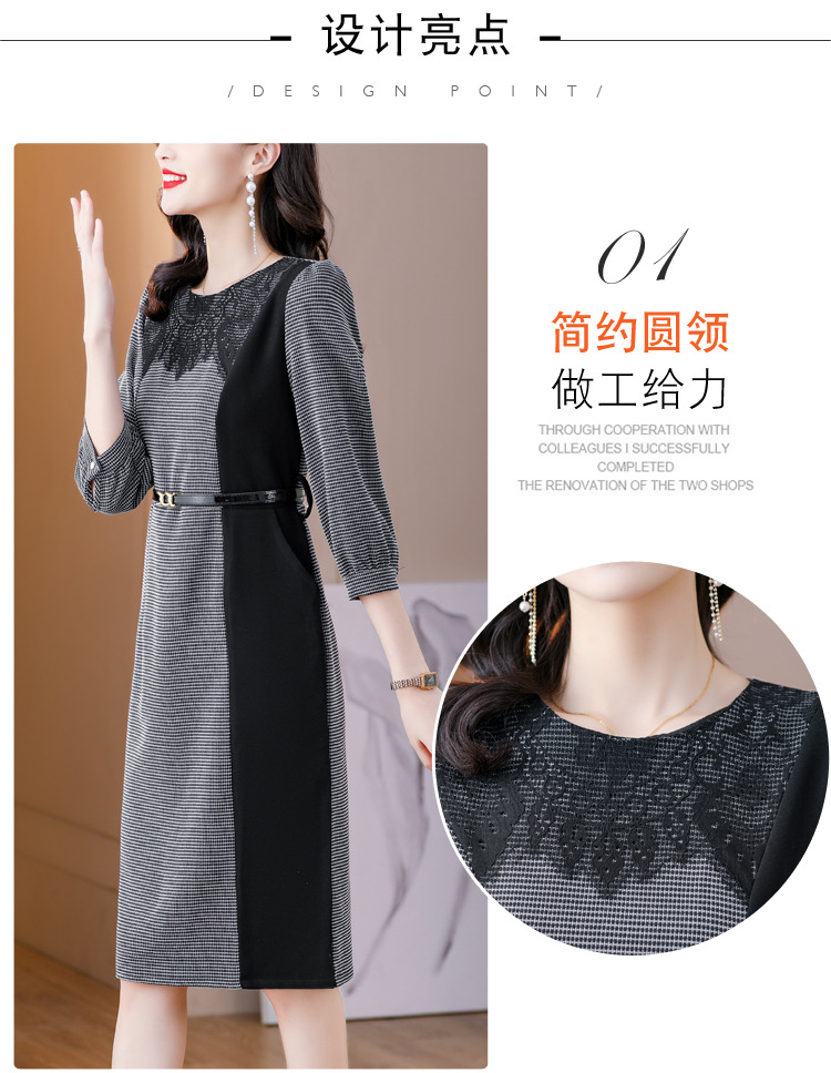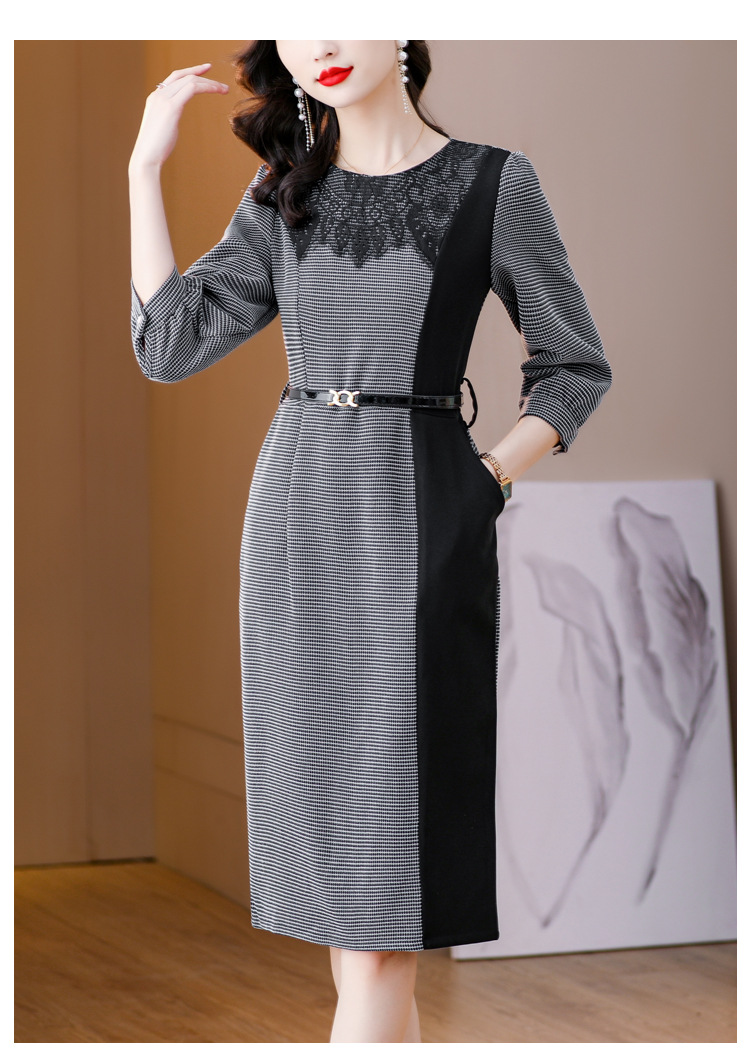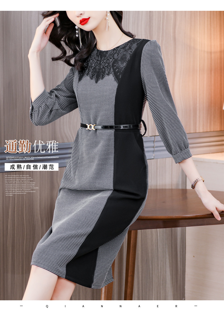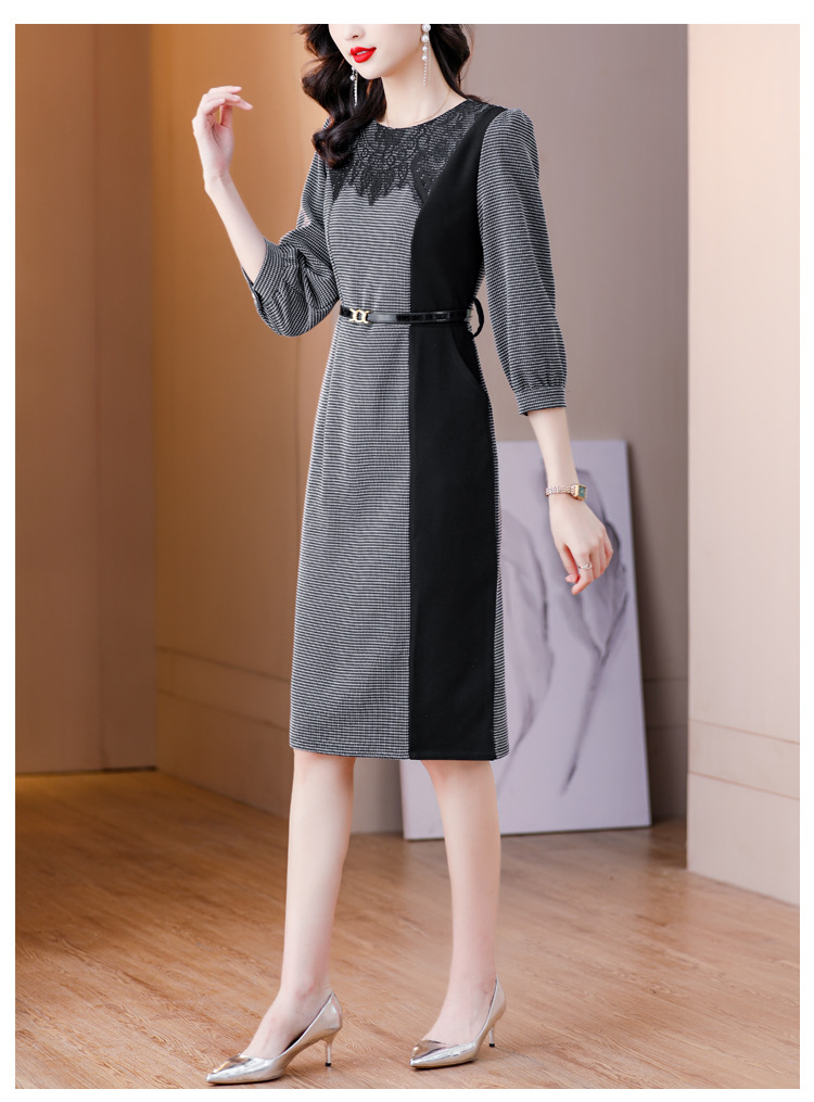 AHM ybb6971时尚气质优雅连衣裙蕾丝撞色系带显瘦包臀裙