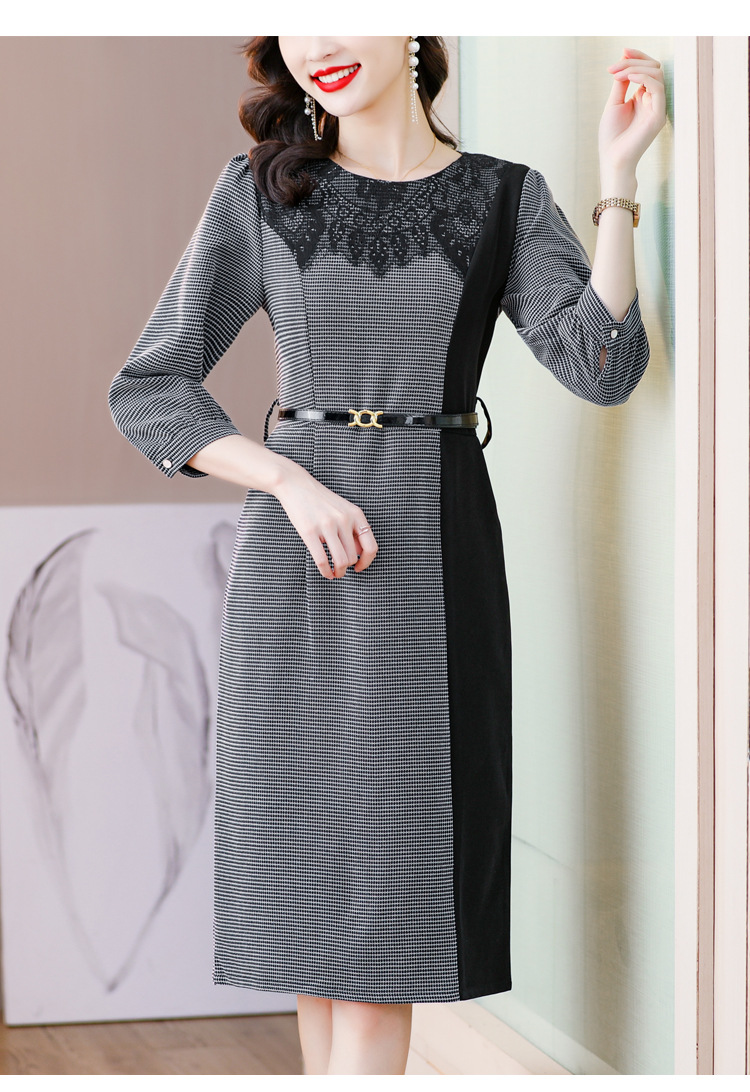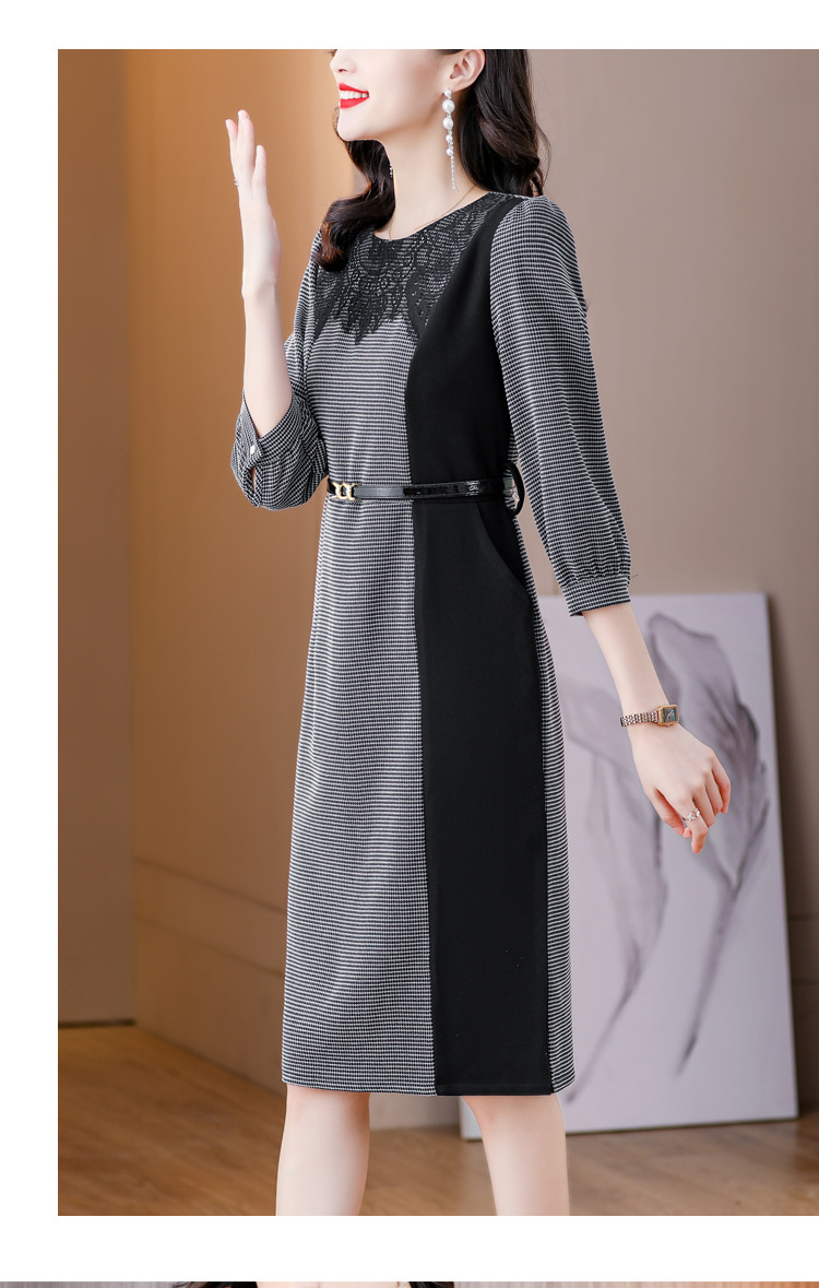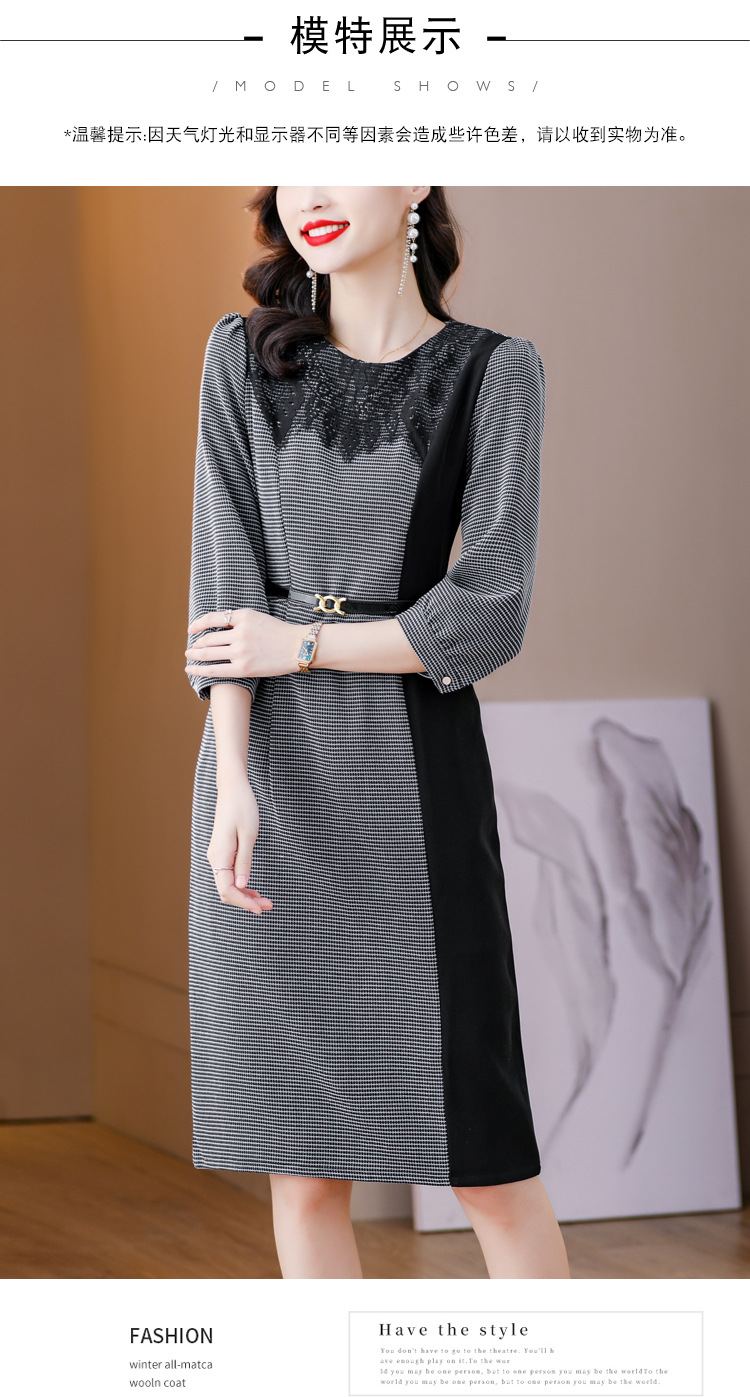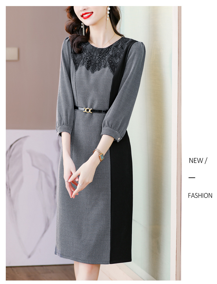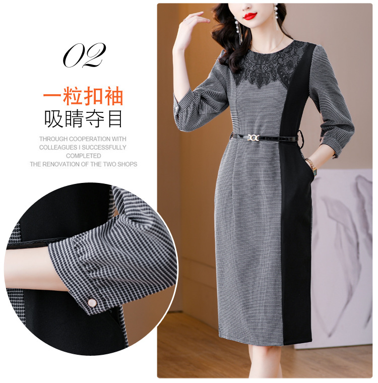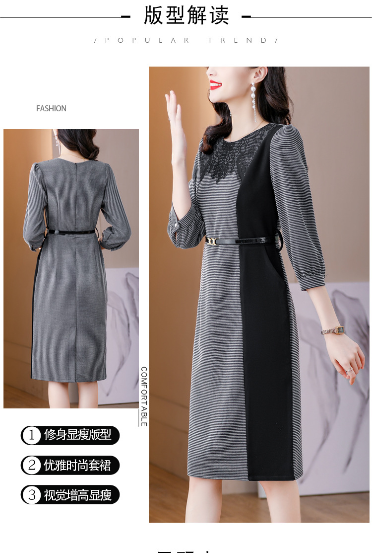 AHM ybb6971时尚气质优雅连衣裙蕾丝撞色系带显瘦包臀裙