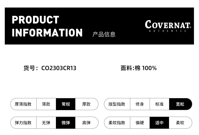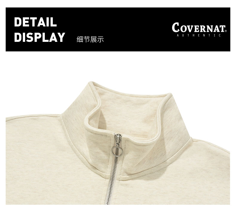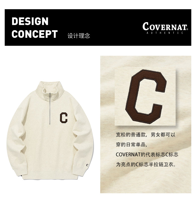 【韩国潮牌】Covernat秋季新品C LOGO中长拉链无帽套头男女同款卫衣CO2303CR13