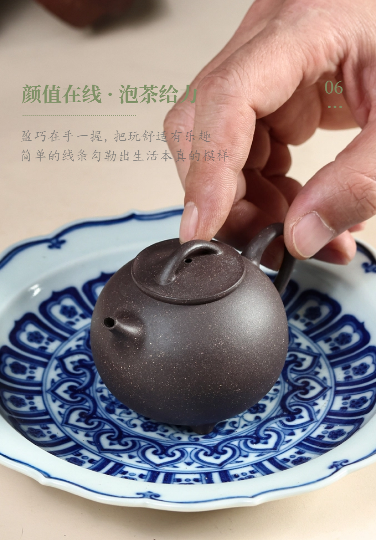 圆瓢 宜兴原矿紫砂 小品壶慢生活 泡茶壶 生活美学茶器 色泽效果细腻而丰富