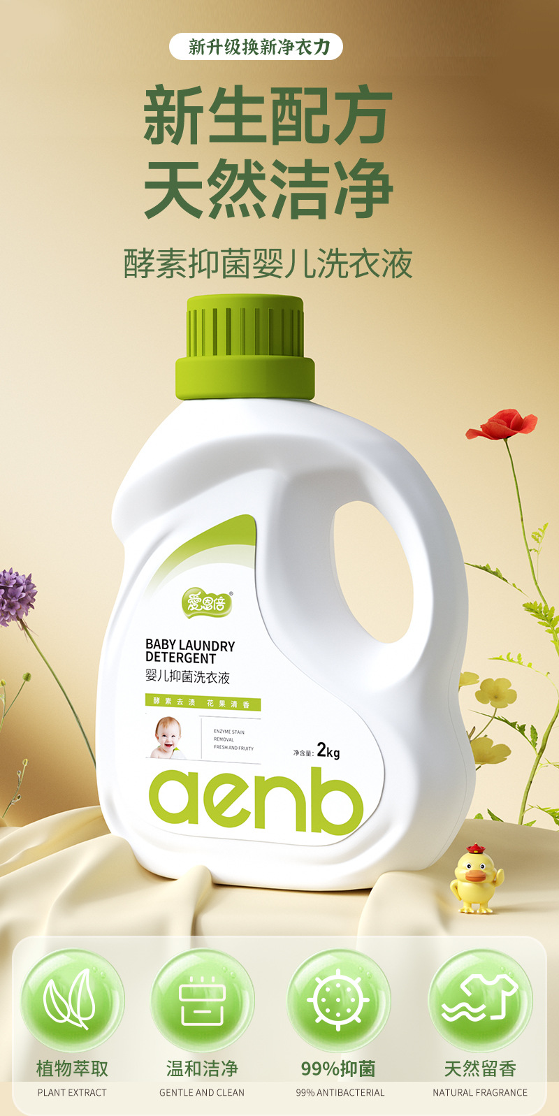 【新生配方,天然洁净】除菌除螨植物精华洗衣液 2kg柔顺护衣低泡 易洗持久留香-QQ
