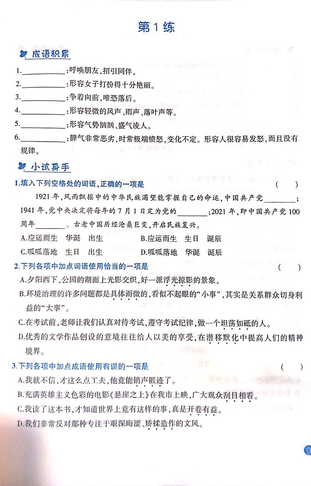 初中语文基础知识专项训练词语运用专项训练