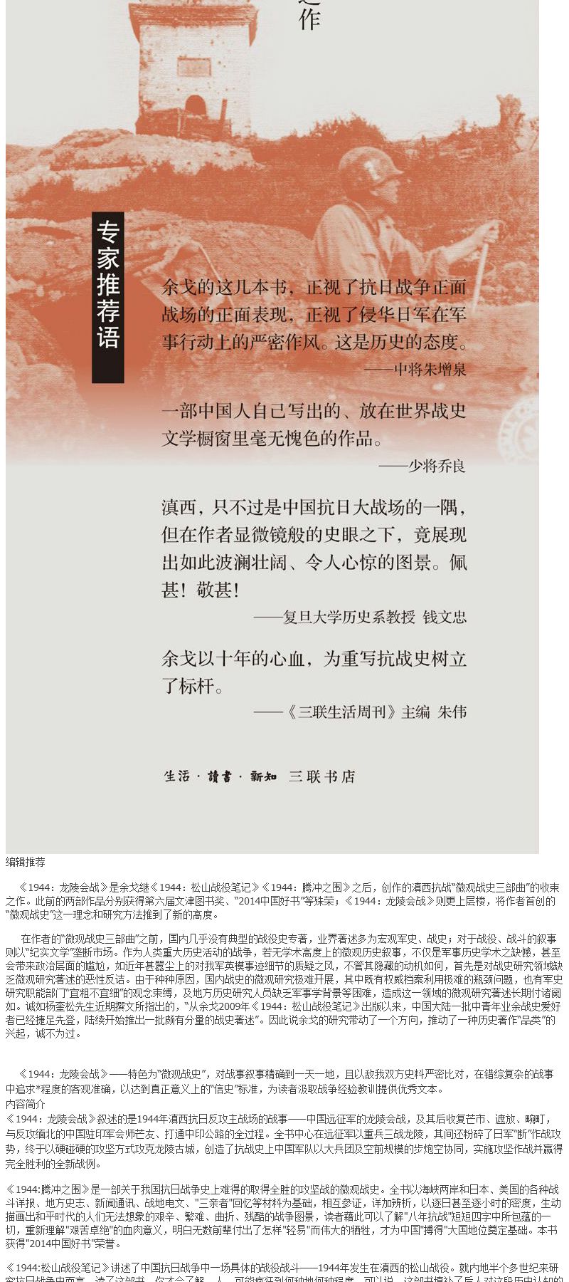 - 生活•读书•新知三联书店是一家具有悠久历史和光荣传统的出版机构。建店八十余年来,始终秉承“竭诚为读者服务”的宗旨,坚持“一流、新锐”的标准,被誉为“中国知识分子的精神家园”。