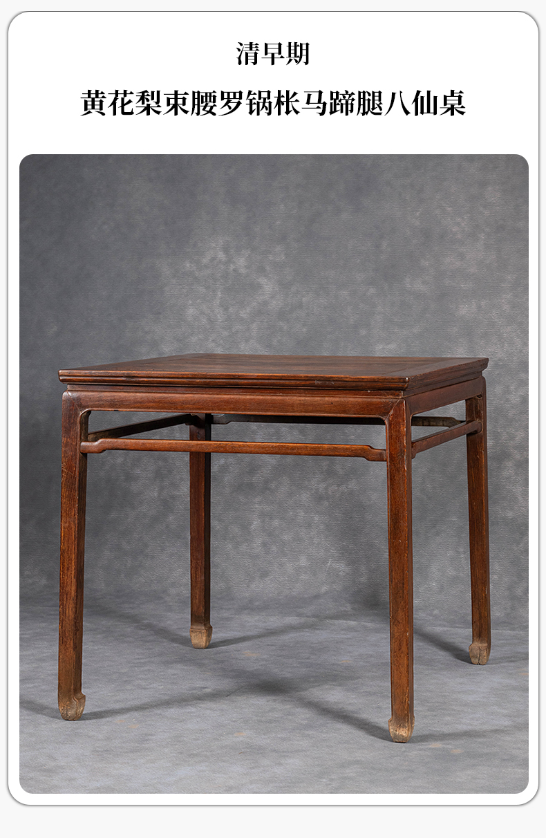 清早期 黄花梨束腰罗锅枨马蹄腿八仙桌