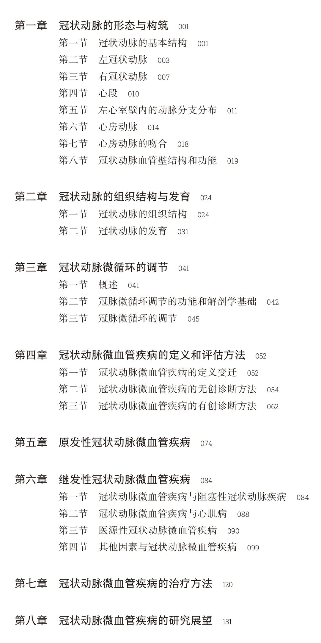 本书详细介绍了冠状动脉微血管的解剖发育和病理生理,阐述了微血管疾病的发病机制和评估方法,并对临床常见的原发性和继发性冠状动脉微血管疾病的诊断分类和治疗策略进行详细描述,进一步对今后的研究方向提出展望。