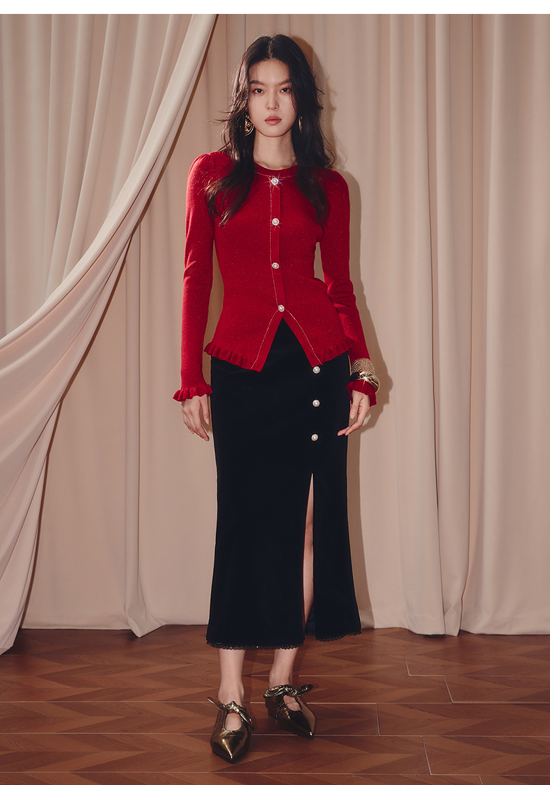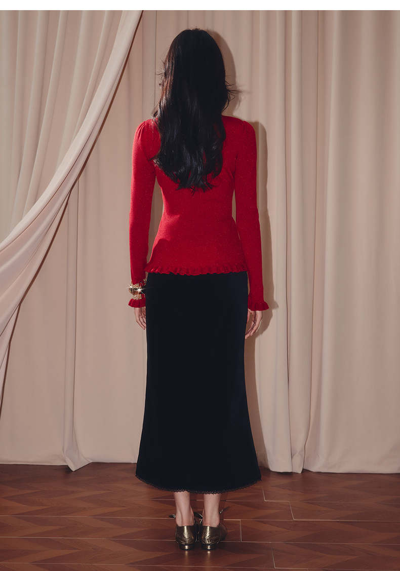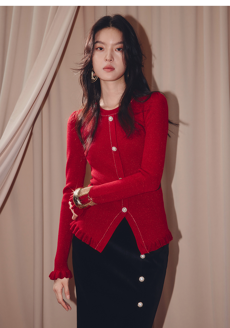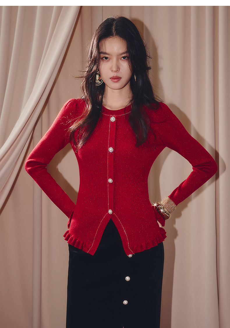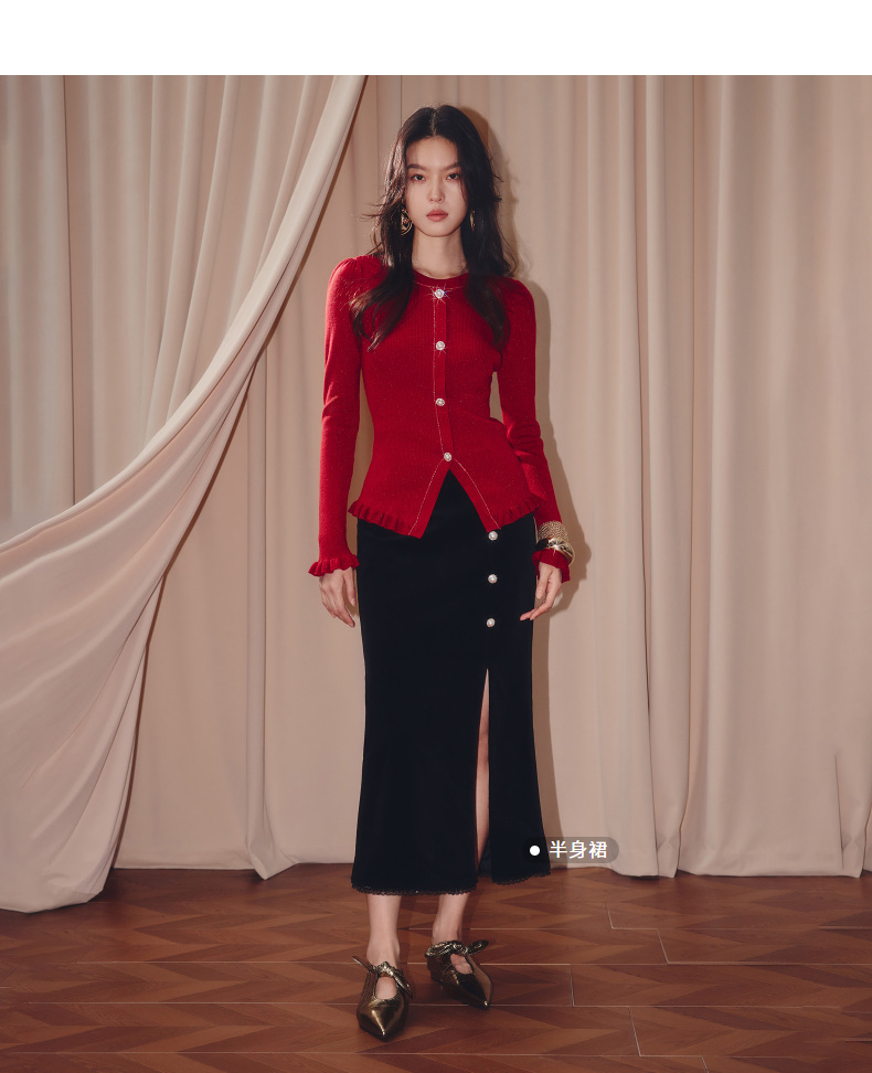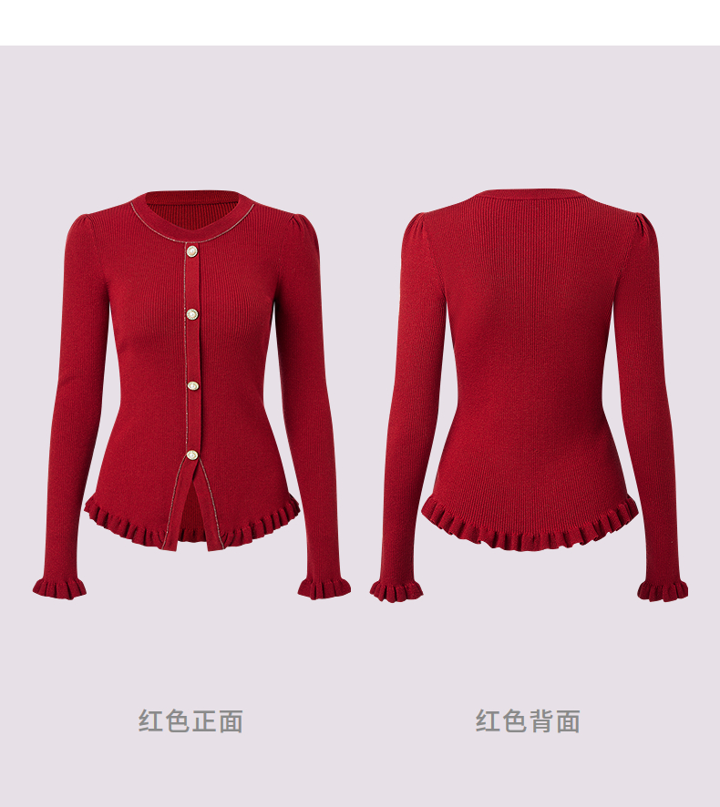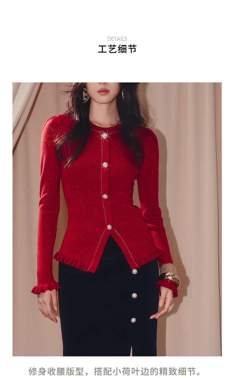 玛克门店发货:MAXRIENY复古宫廷穿搭亮皮扣套头毛针织衫(货号:MF86SW504)