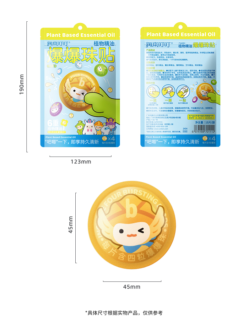 润本植物精油爆珠贴驱蚊液成人儿童婴儿宝宝防蚊液户外随身专用贴