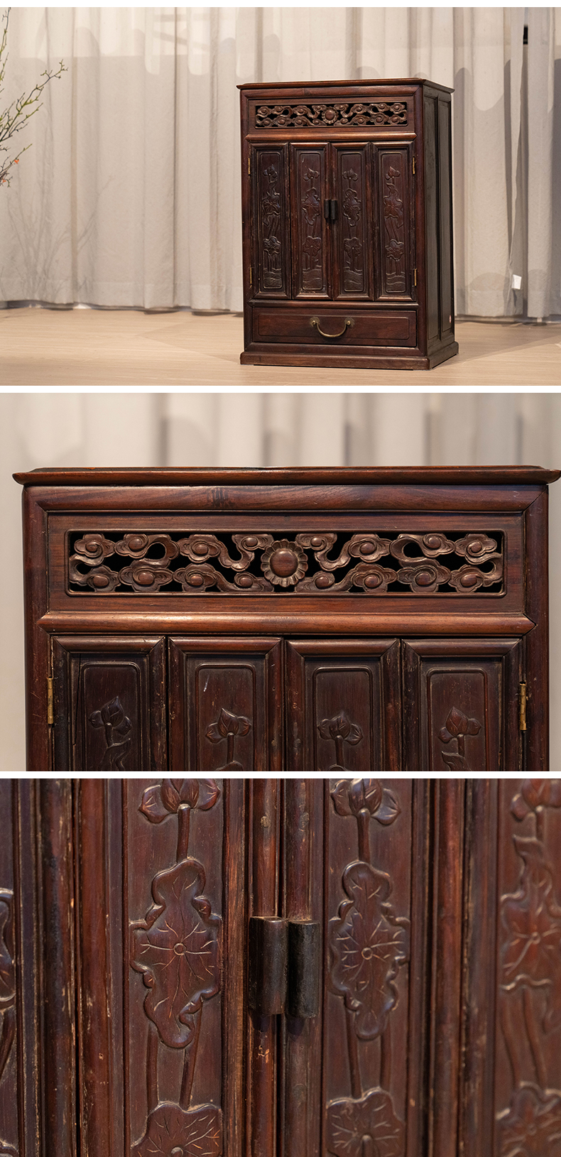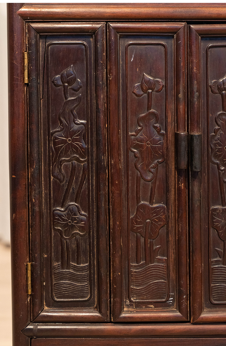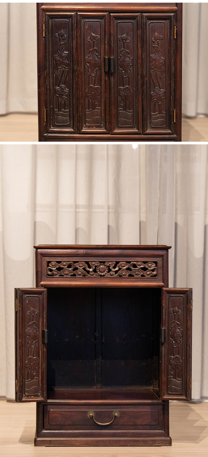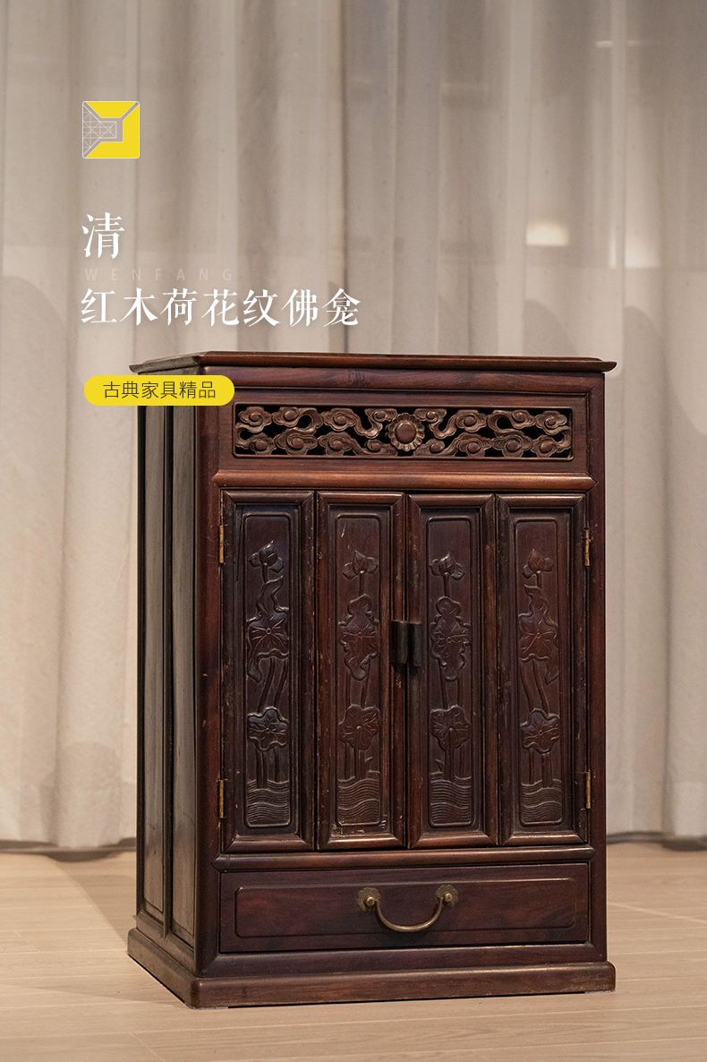 清 红木荷花纹佛龛