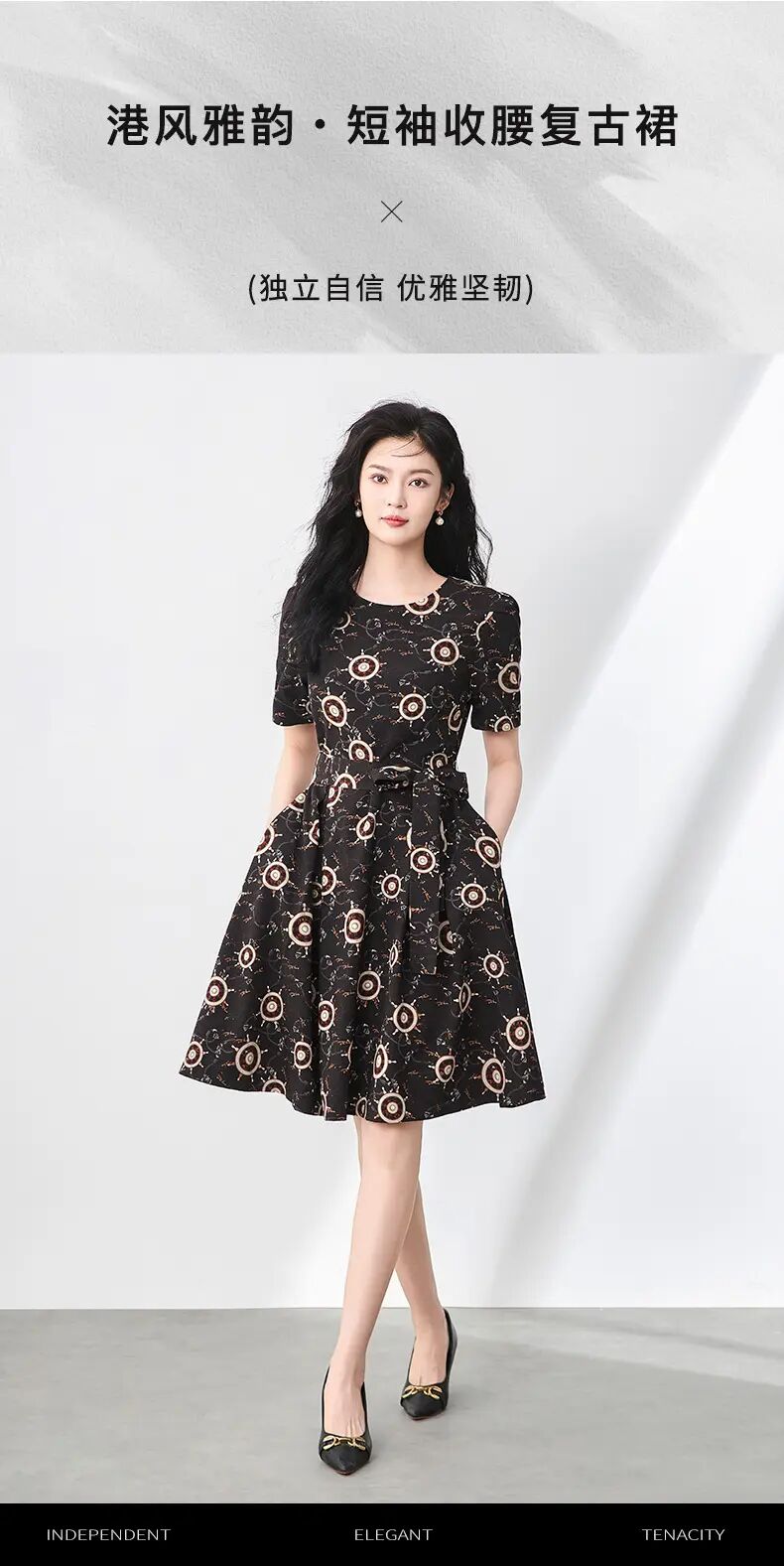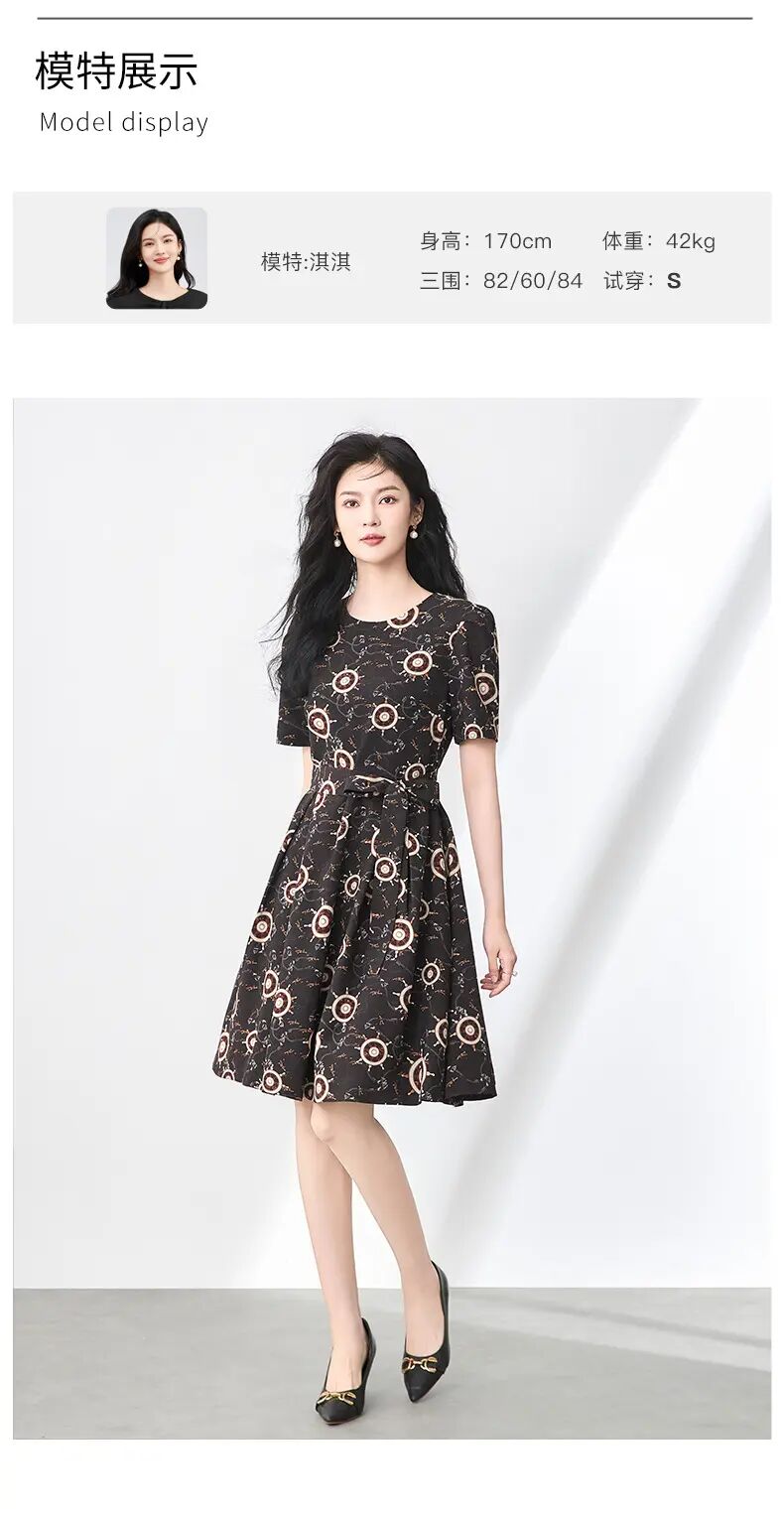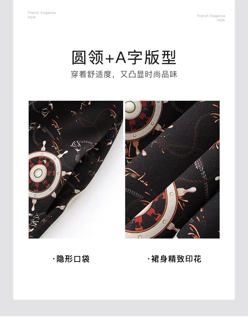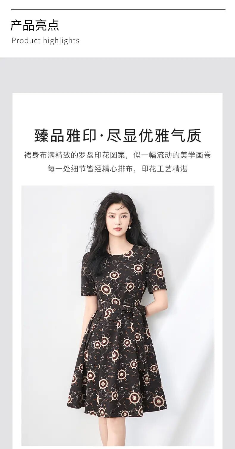 「高货wl」全新升级【铂金会员293/天猫399/差价106】(94710)洛诗琳气质印花双绉雪纺连衣裙2025夏季罗盘印花圆领显瘦裙94710