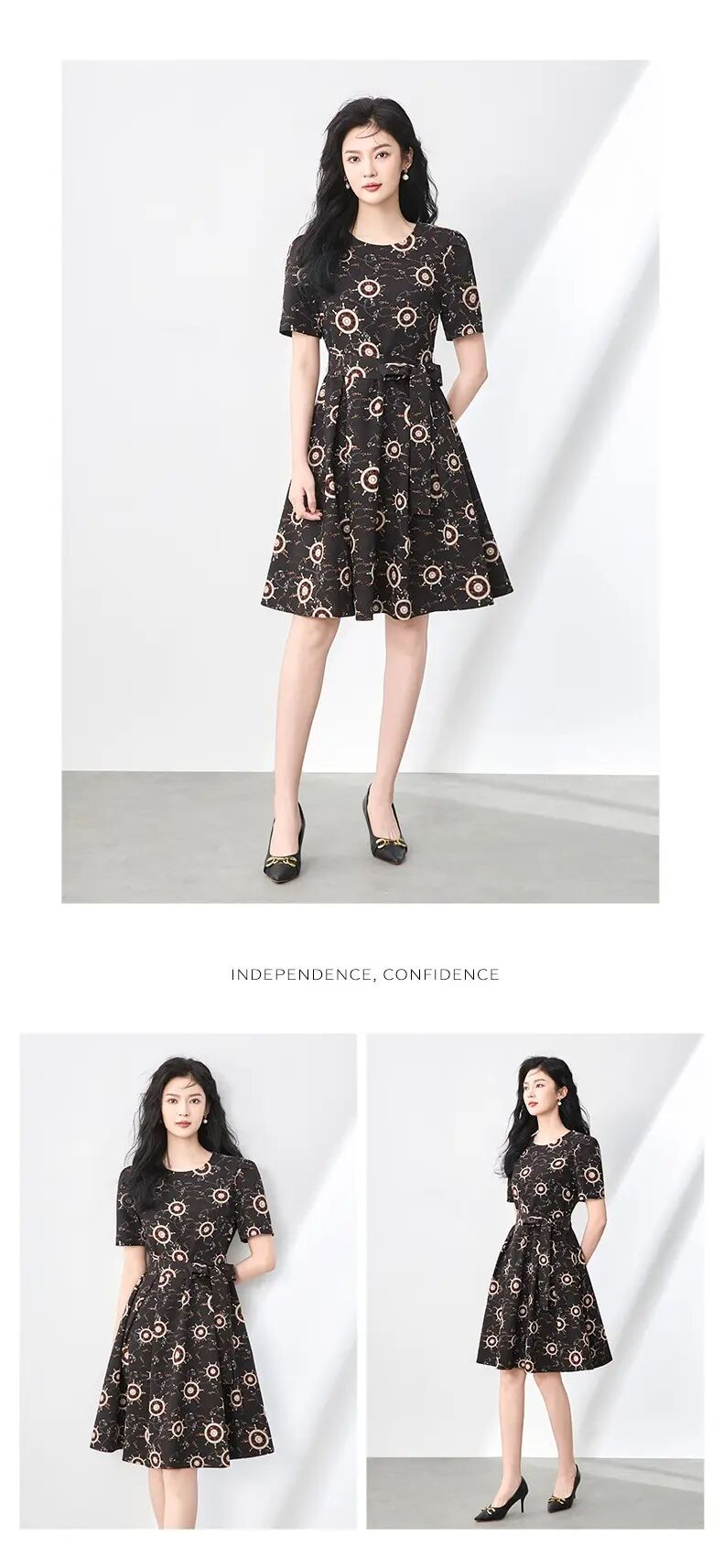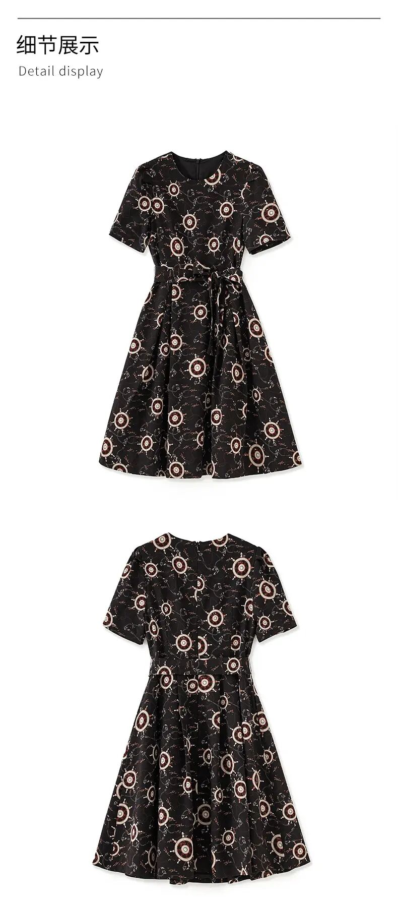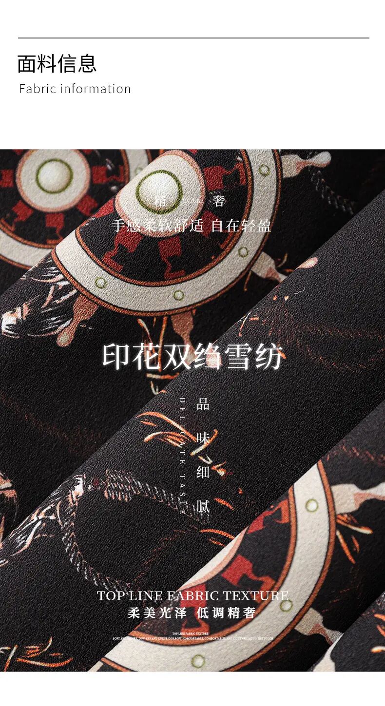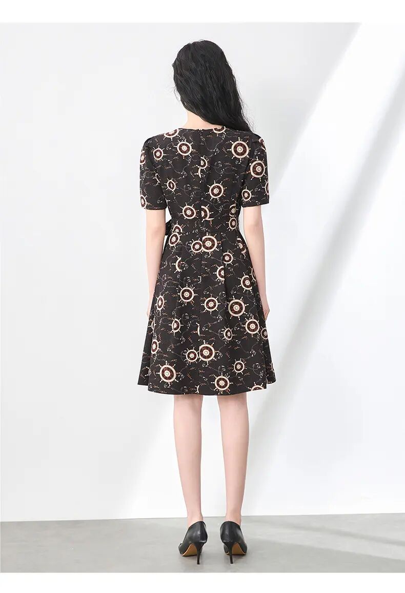 「高货wl」全新升级【铂金会员293/天猫399/差价106】(94710)洛诗琳气质印花双绉雪纺连衣裙2025夏季罗盘印花圆领显瘦裙94710