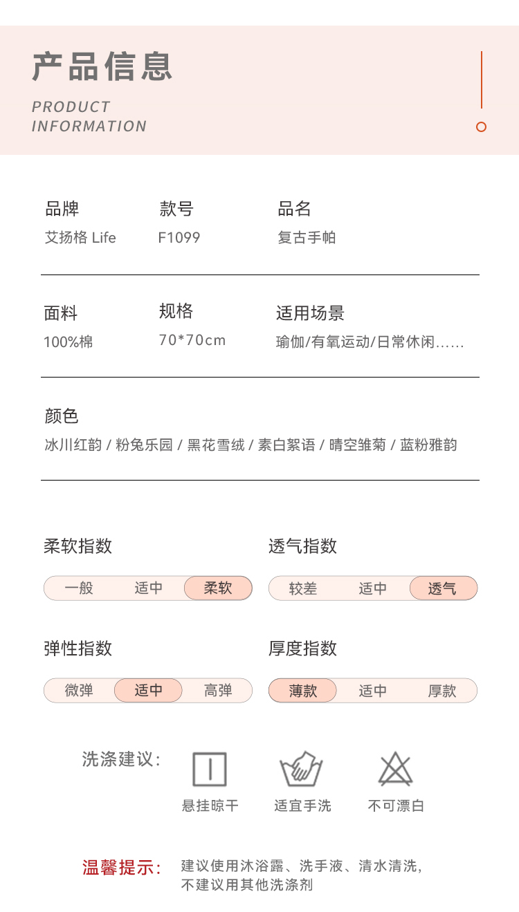 艾扬格life F1099复古手帕 户外运动瑜伽手帕