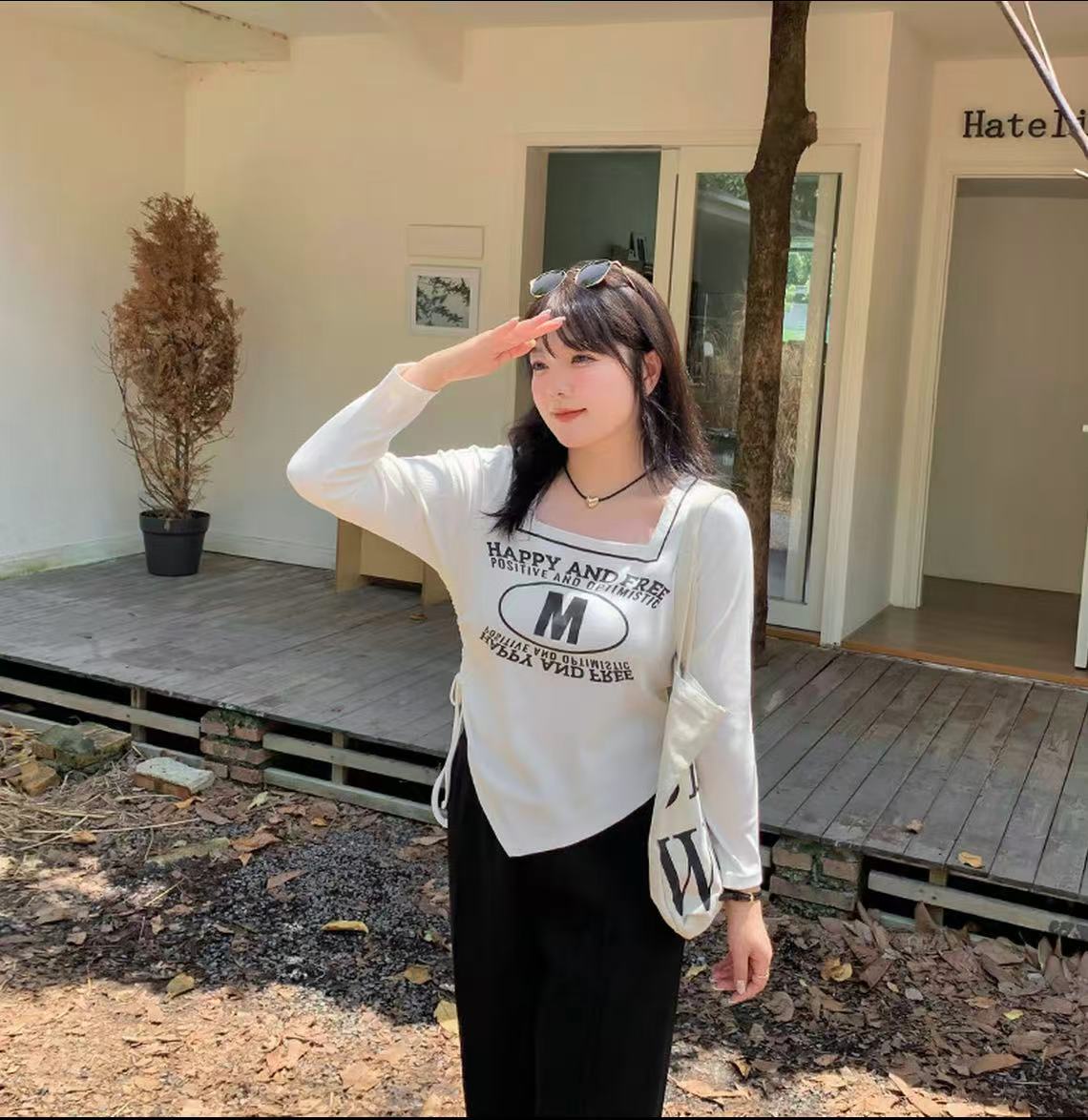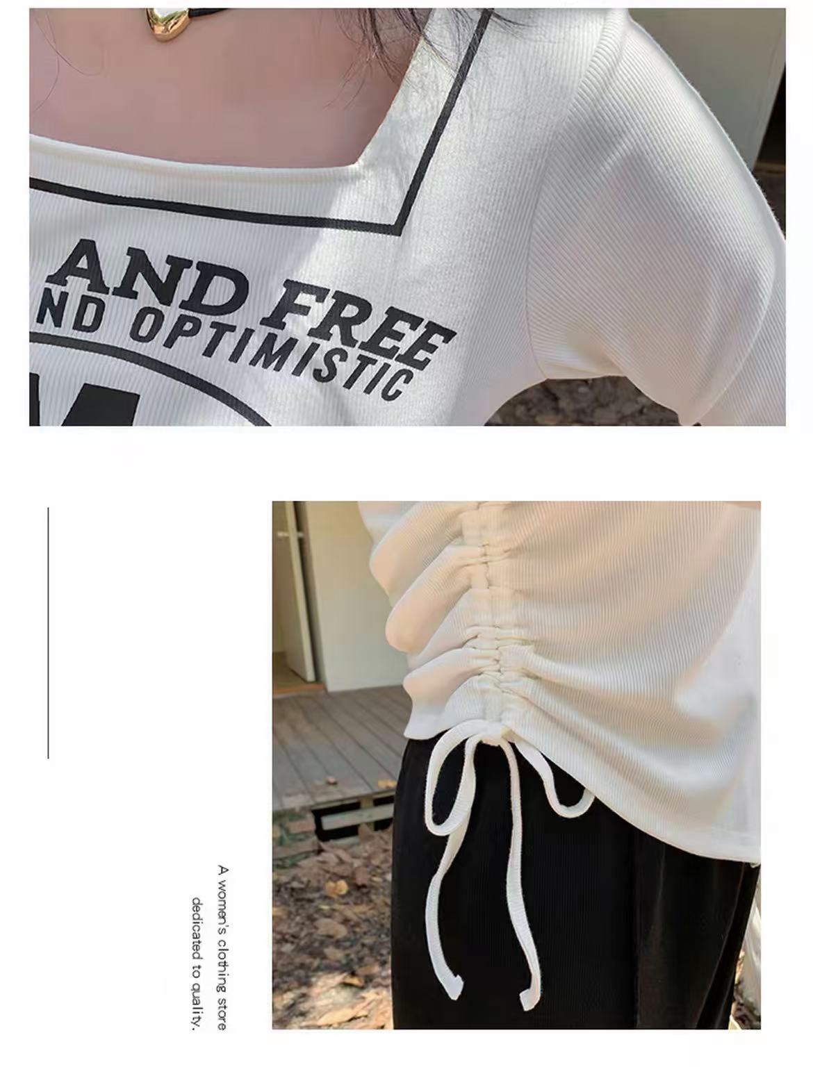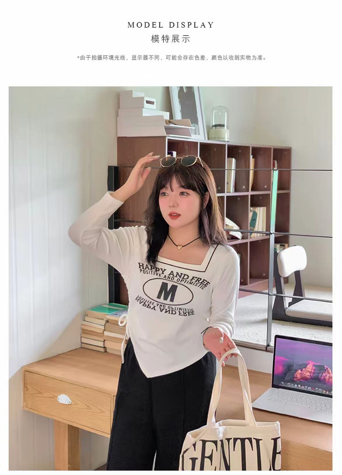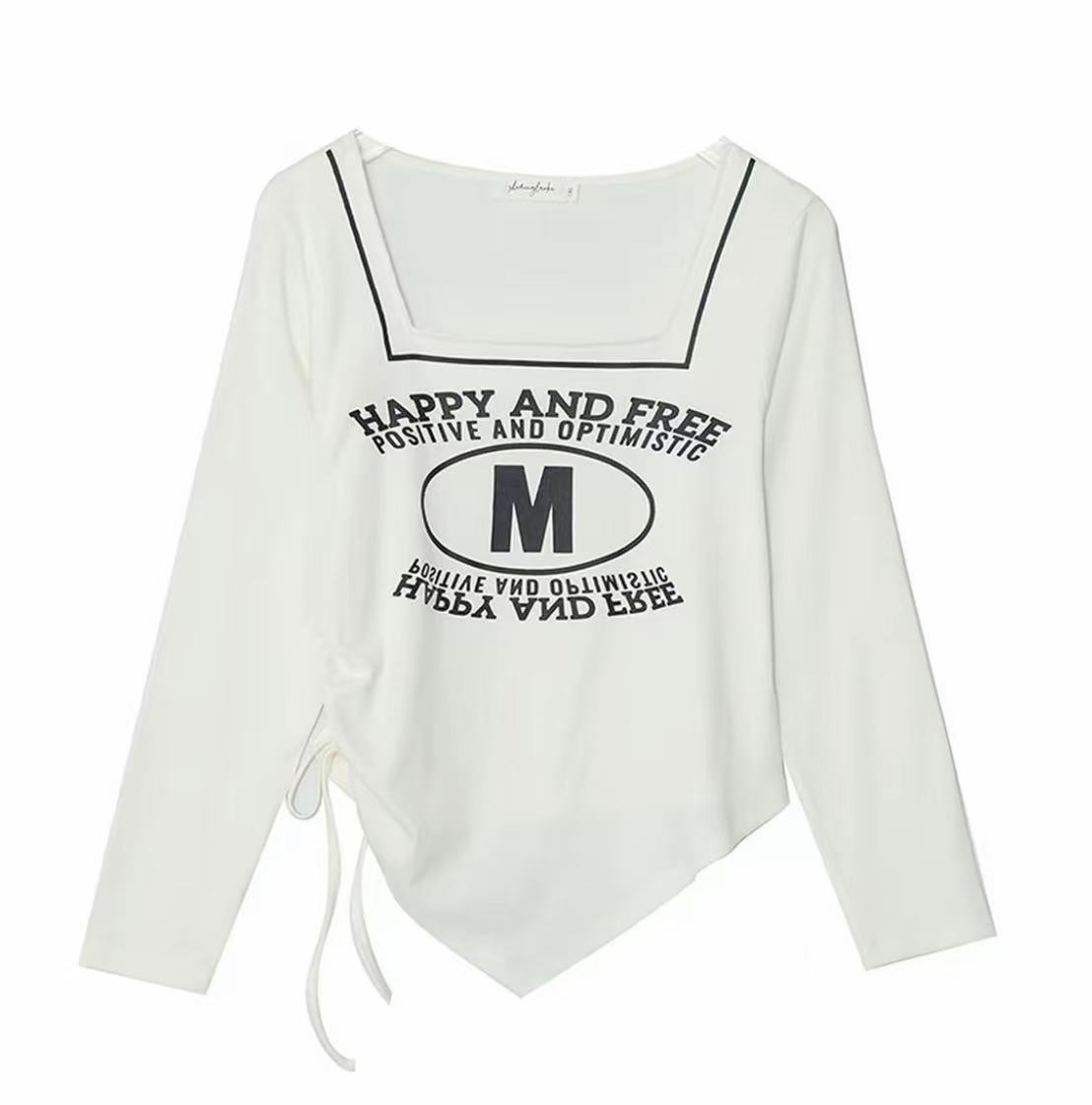 【诗铭洛可】W1062印花方领可抽绳T恤B19-3