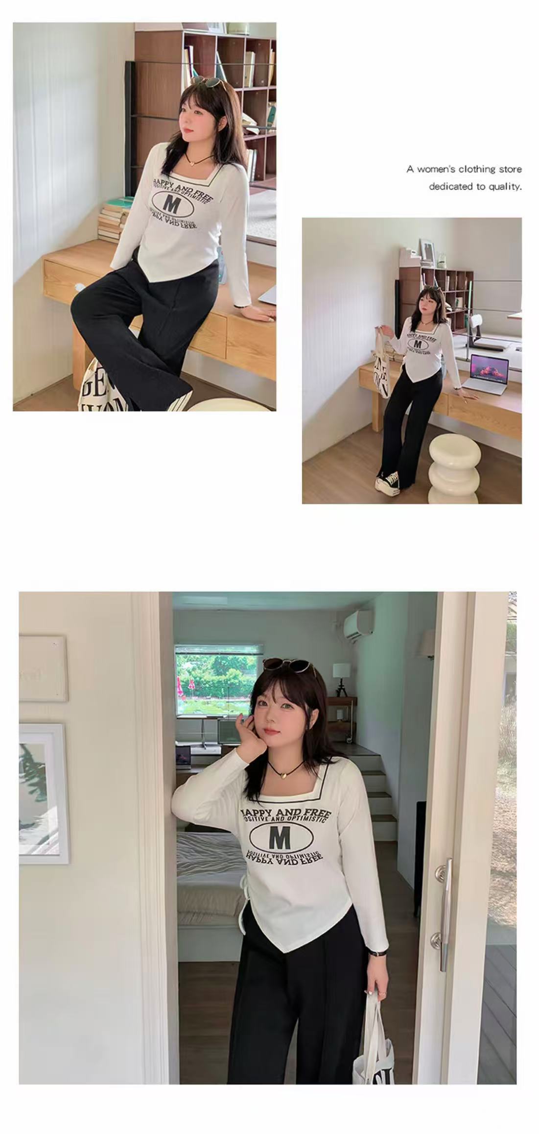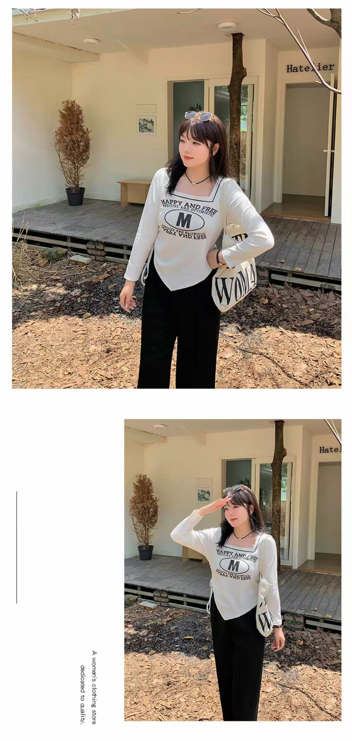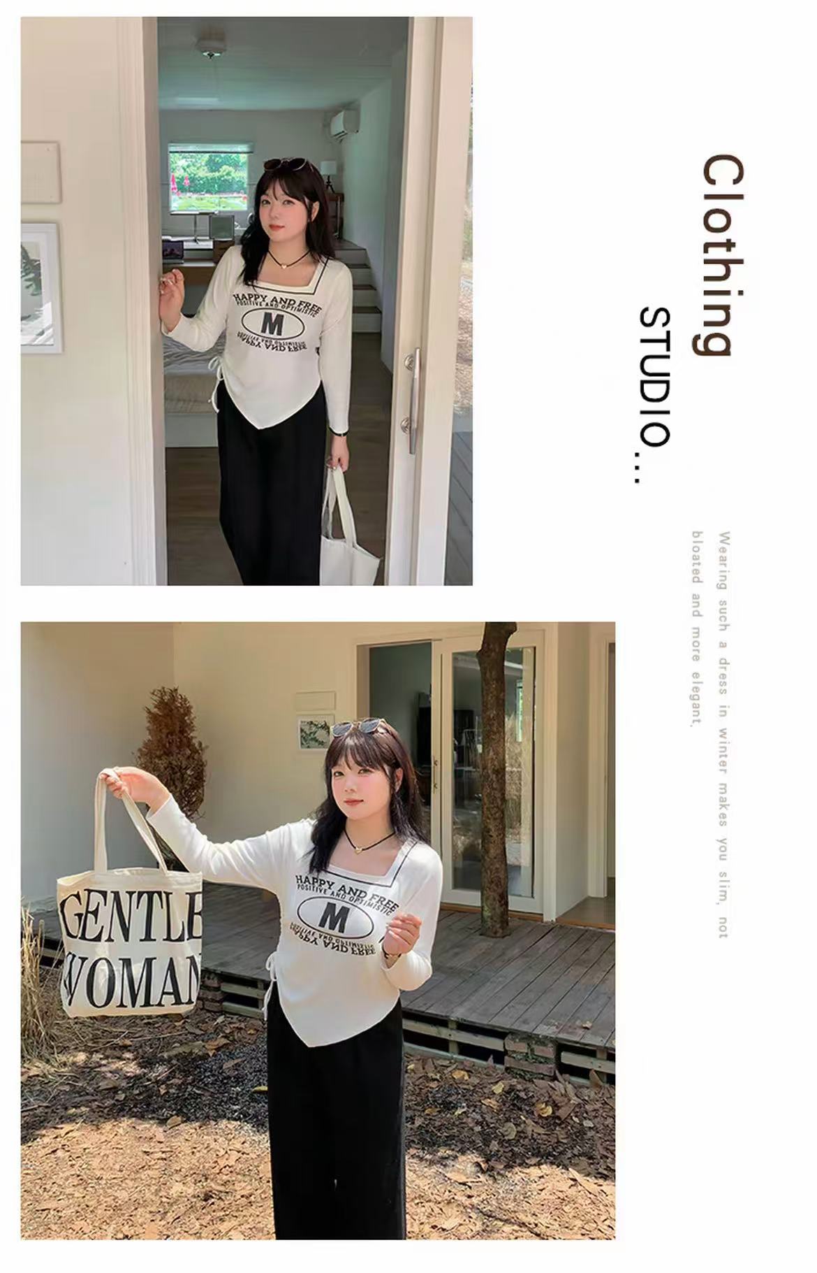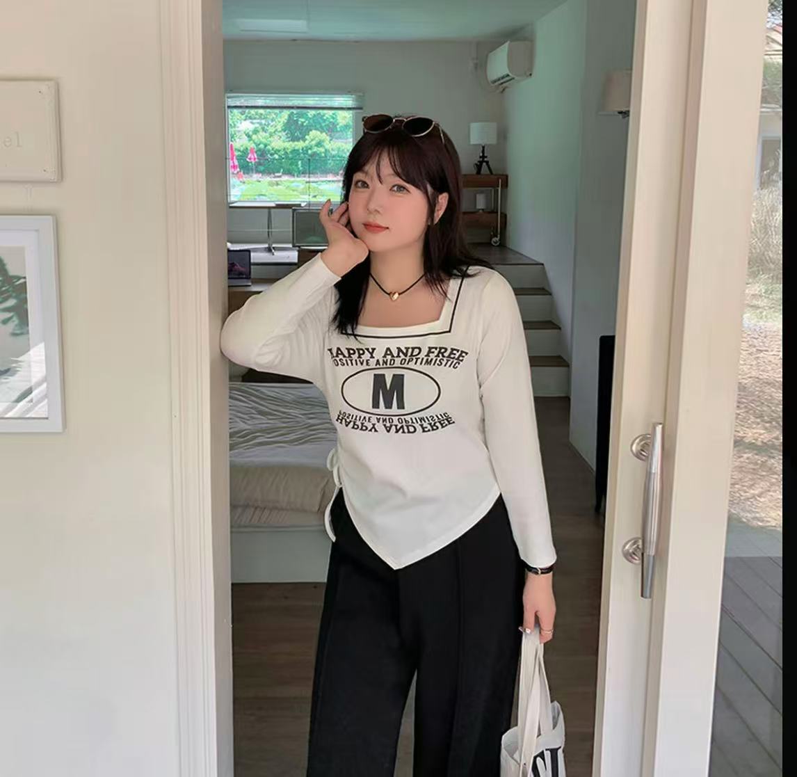 【诗铭洛可】W1062印花方领可抽绳T恤B19-3