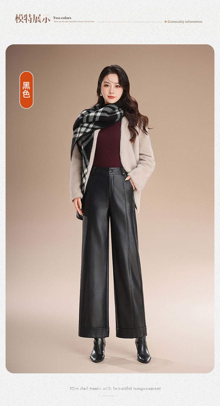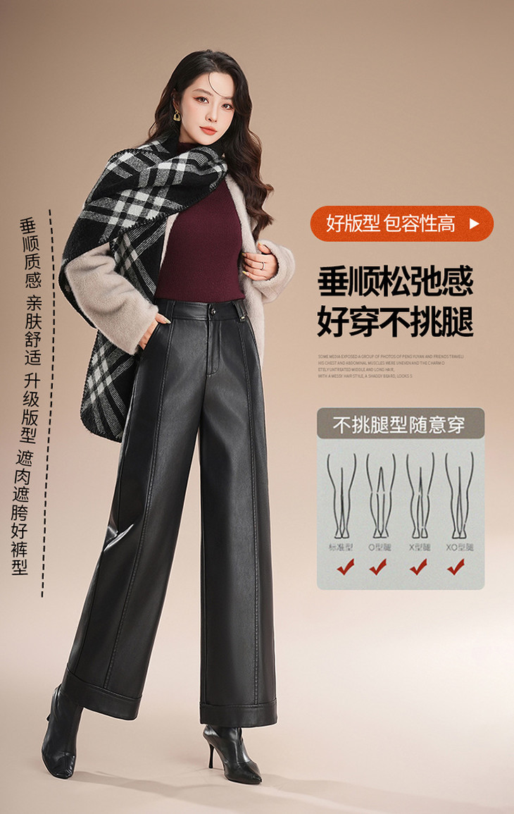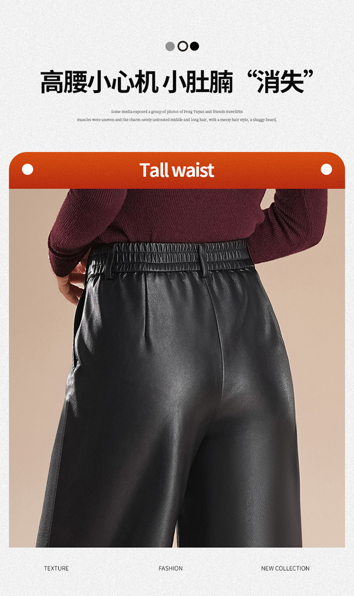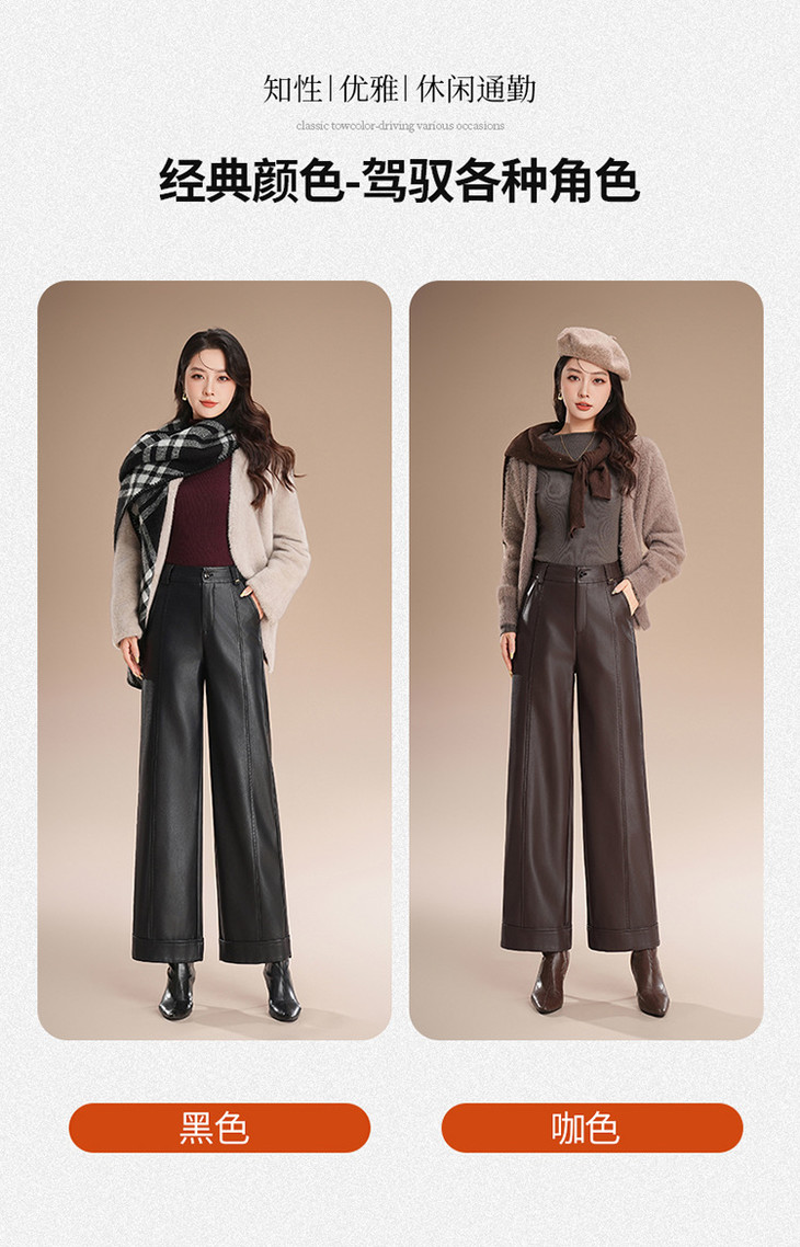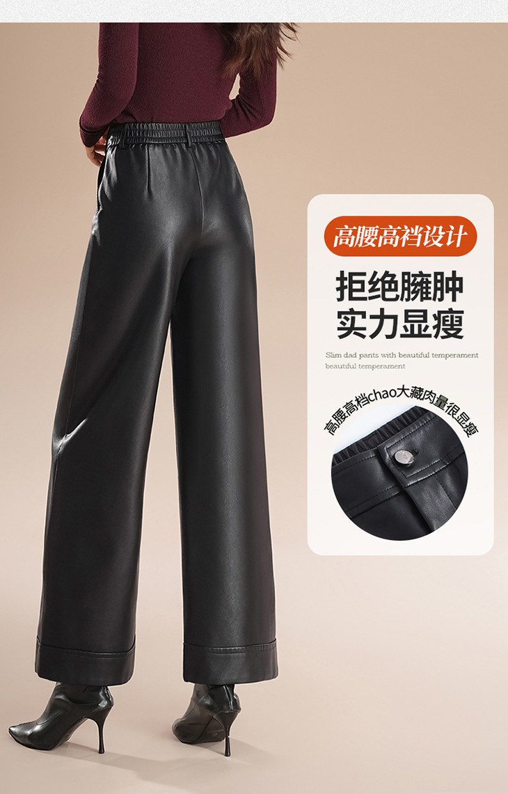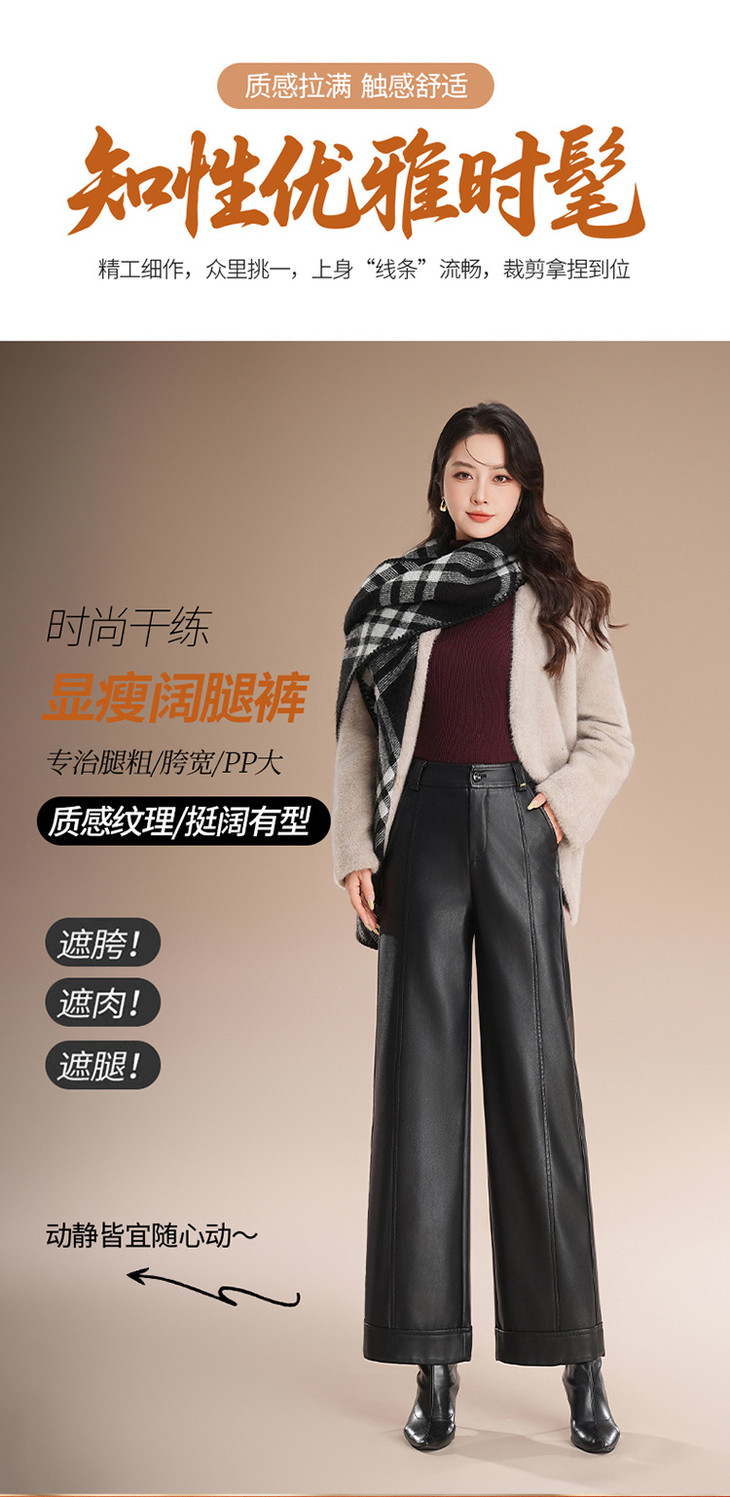 时尚九分PU皮裤,垂感修身直筒裤洋气阔腿裤MYX-HYH-83515-L