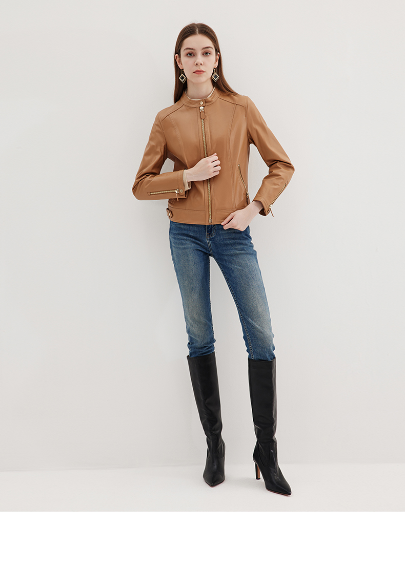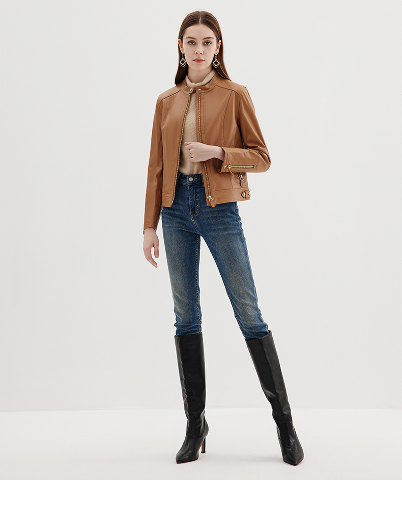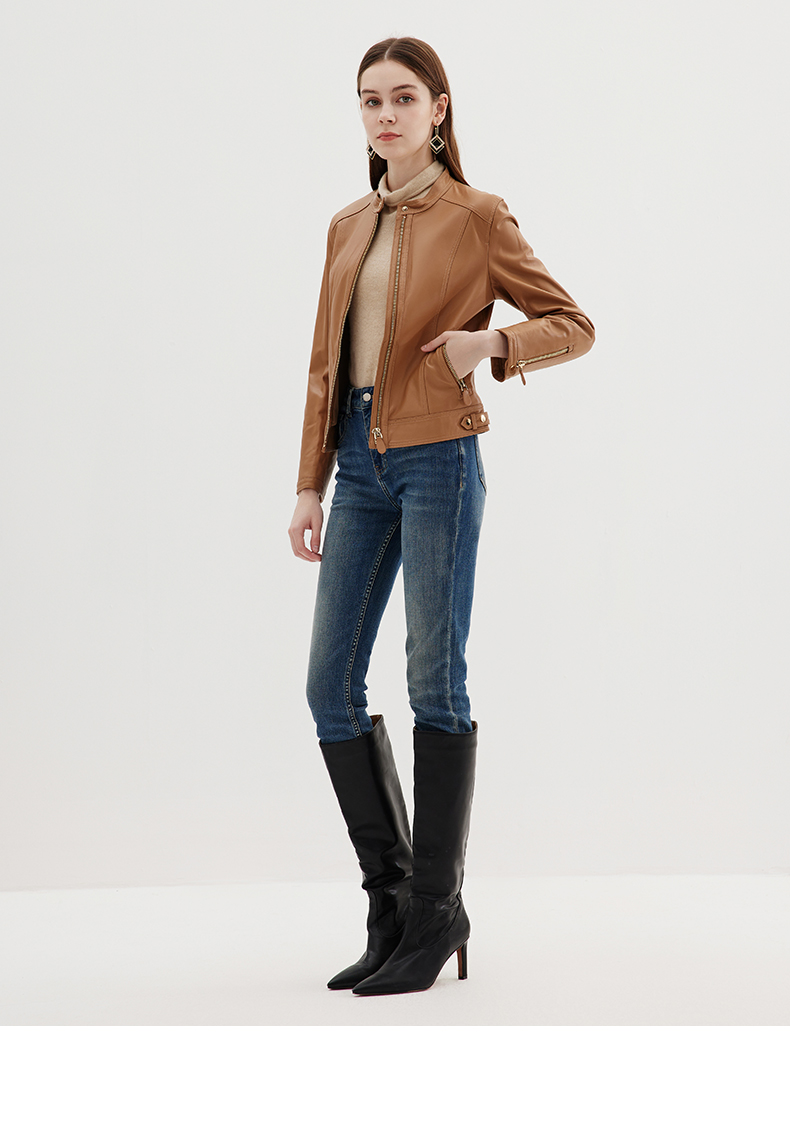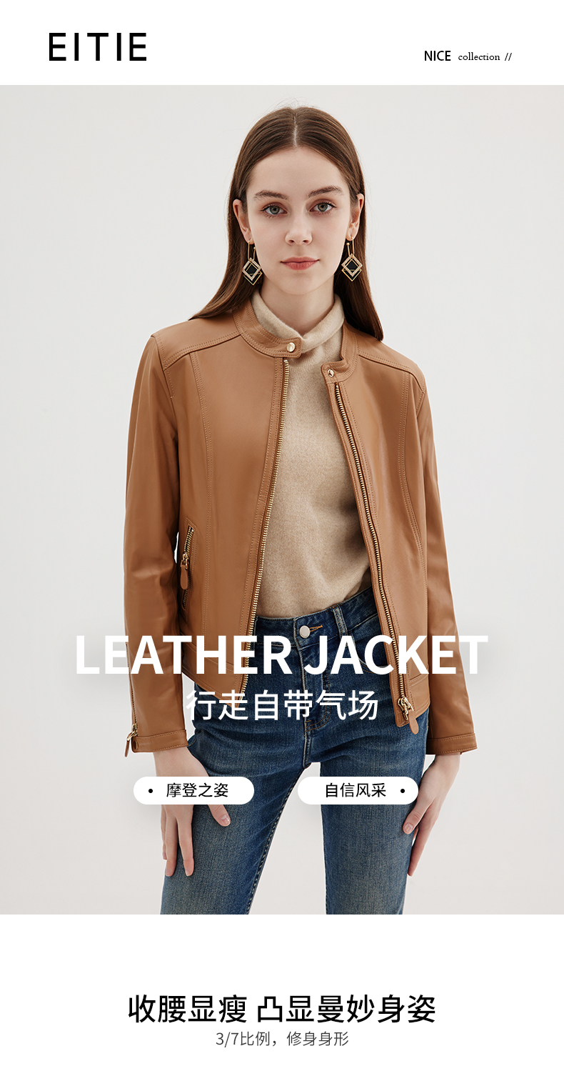 EITIE爱特爱冬季新款个性帅气纯色短款外套皮衣7293916