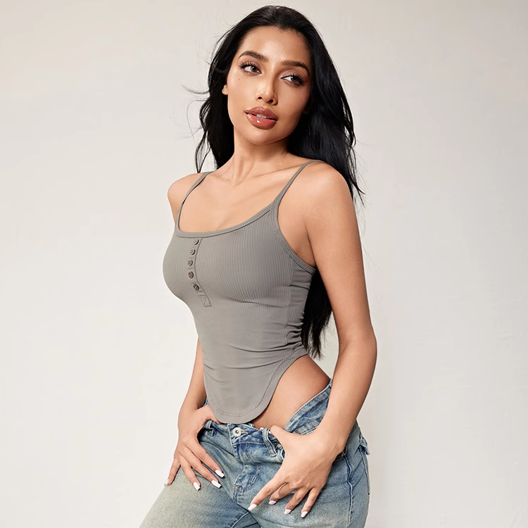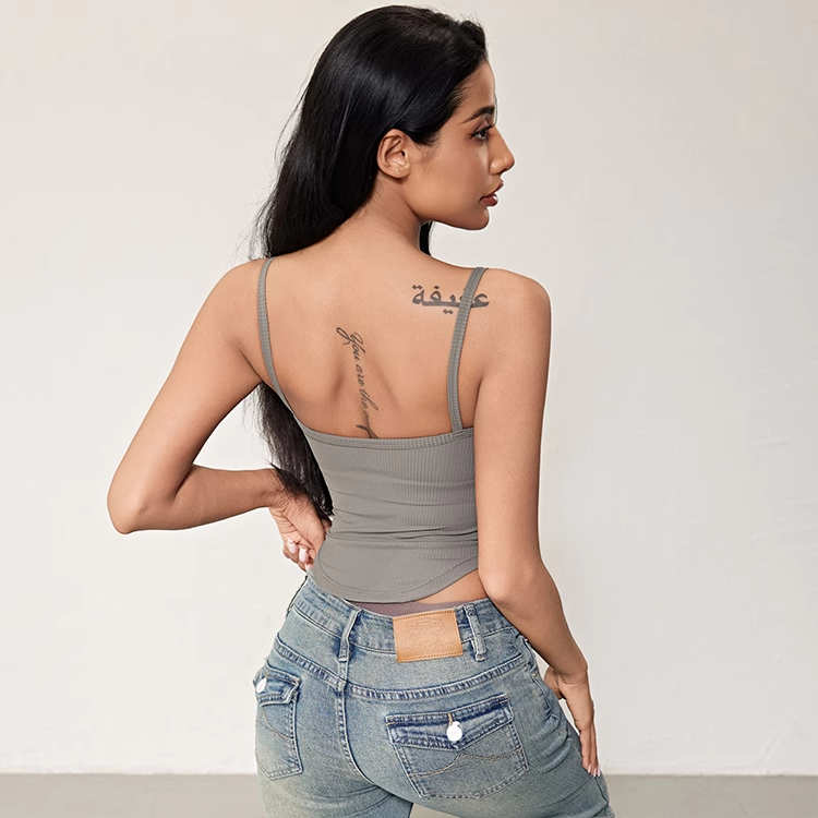 跃牌【周游世界系列】2024秋冬新款螺纹细肩带固定杯运动内衣纽扣U领瑜伽内衣BR1571
