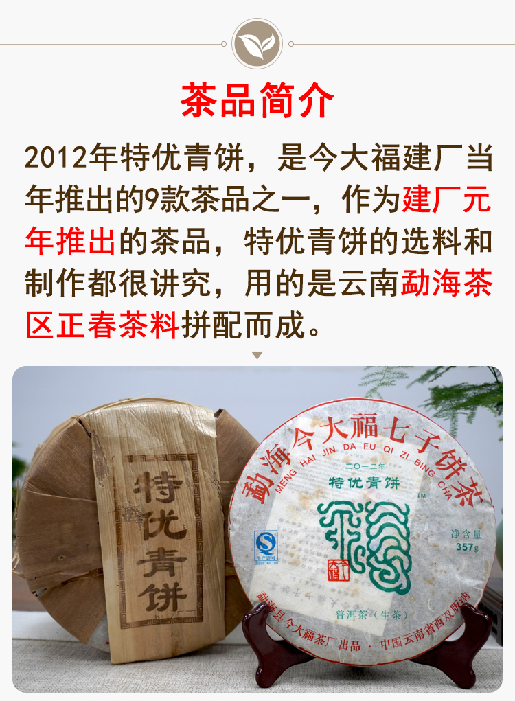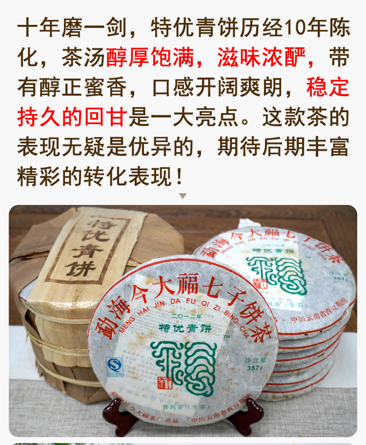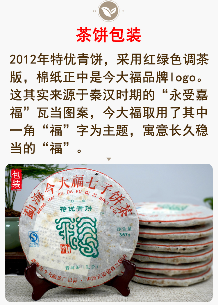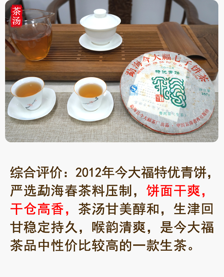 经典2012年今大福特优青饼生茶 今大福建厂年9款茶品之一 干仓高香真品好回甘 高性价比好茶