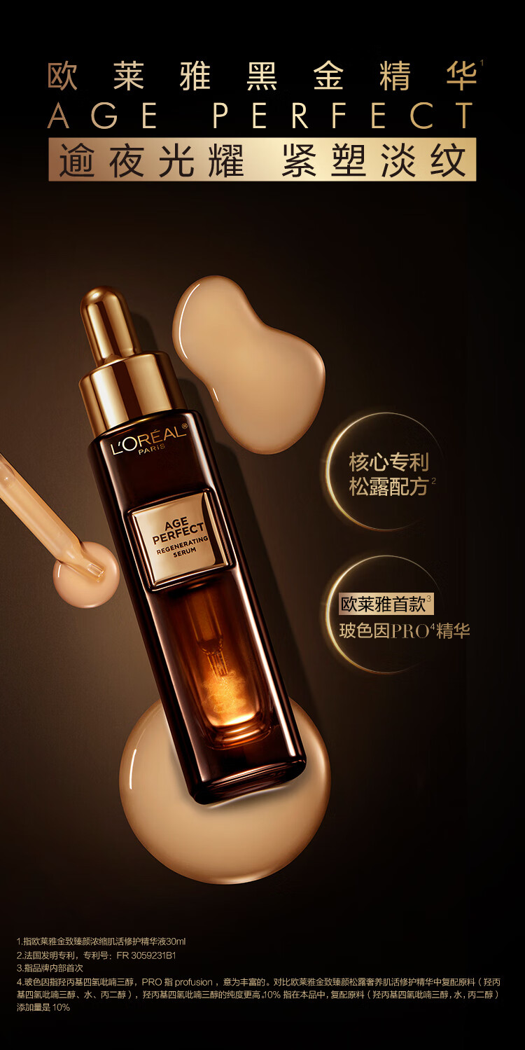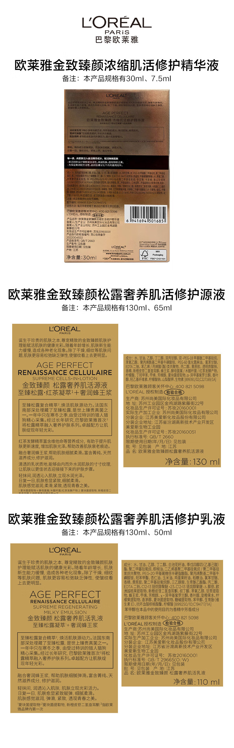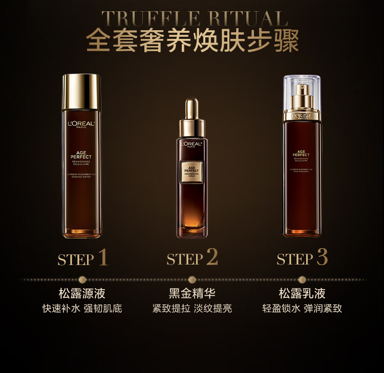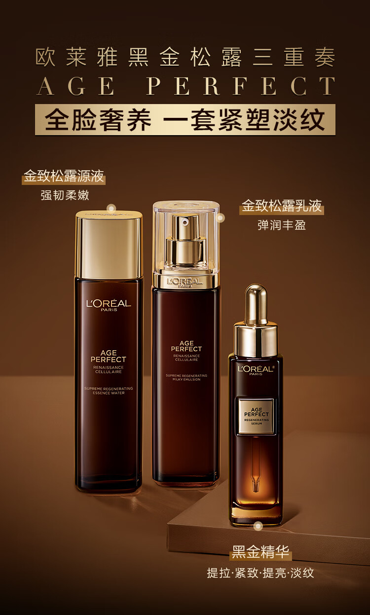 欧莱雅金致臻颜黑精松露奢养中样组合装(源液65ml+修护乳液50ml)