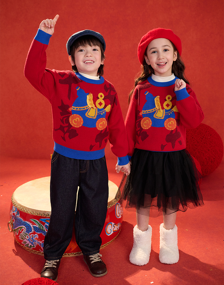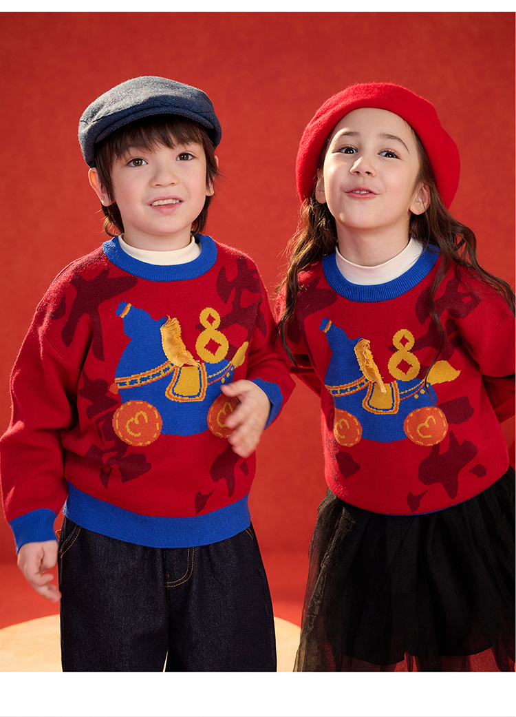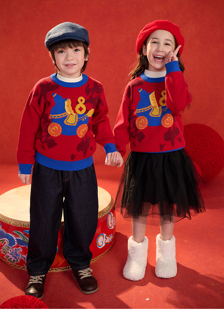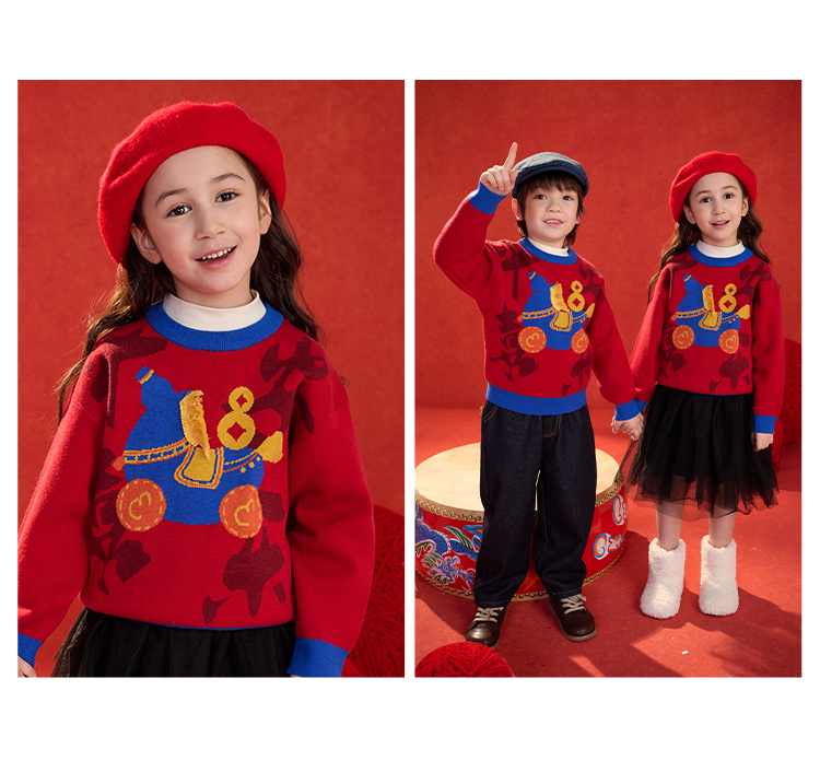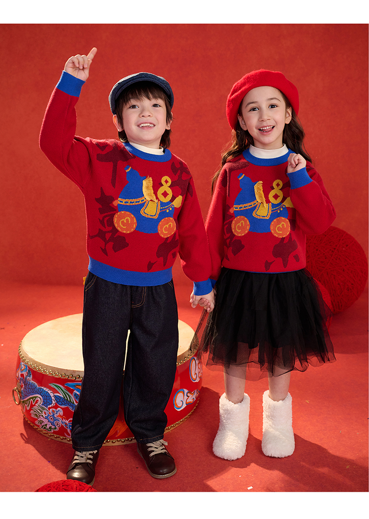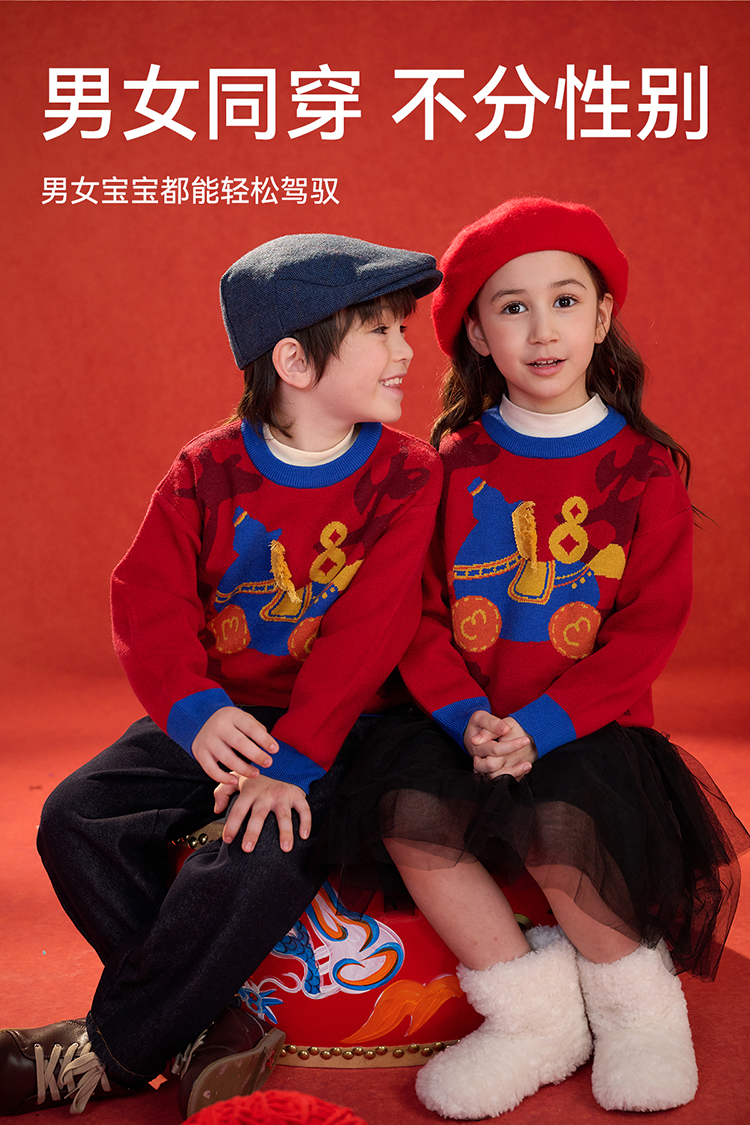 【新年】棉花堂童装儿童红色毛衣秋冬2026新款马年加厚过年拜年服FA52270