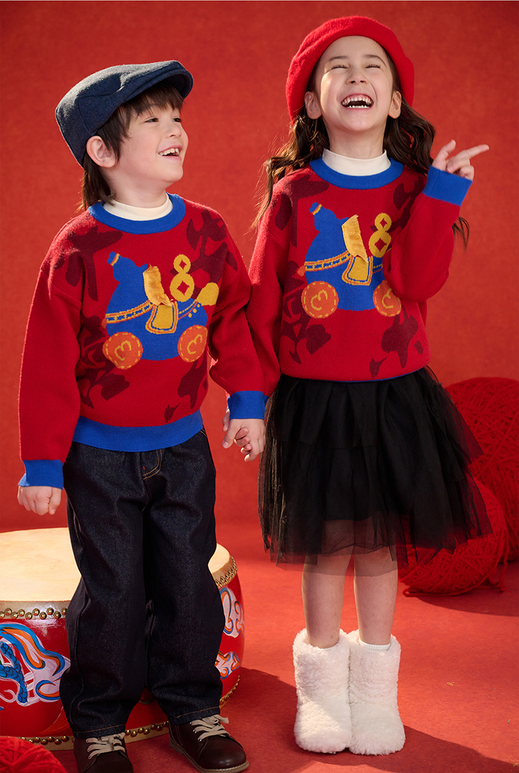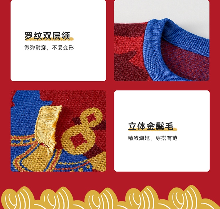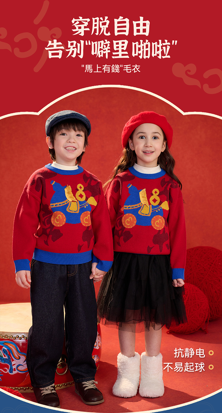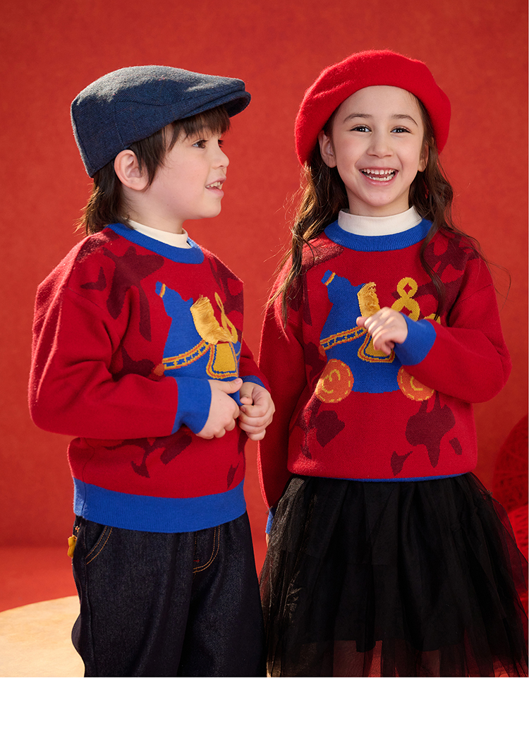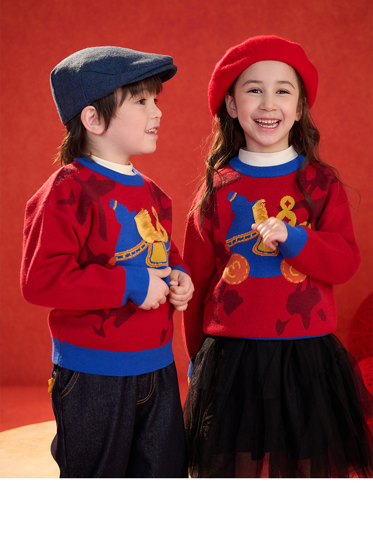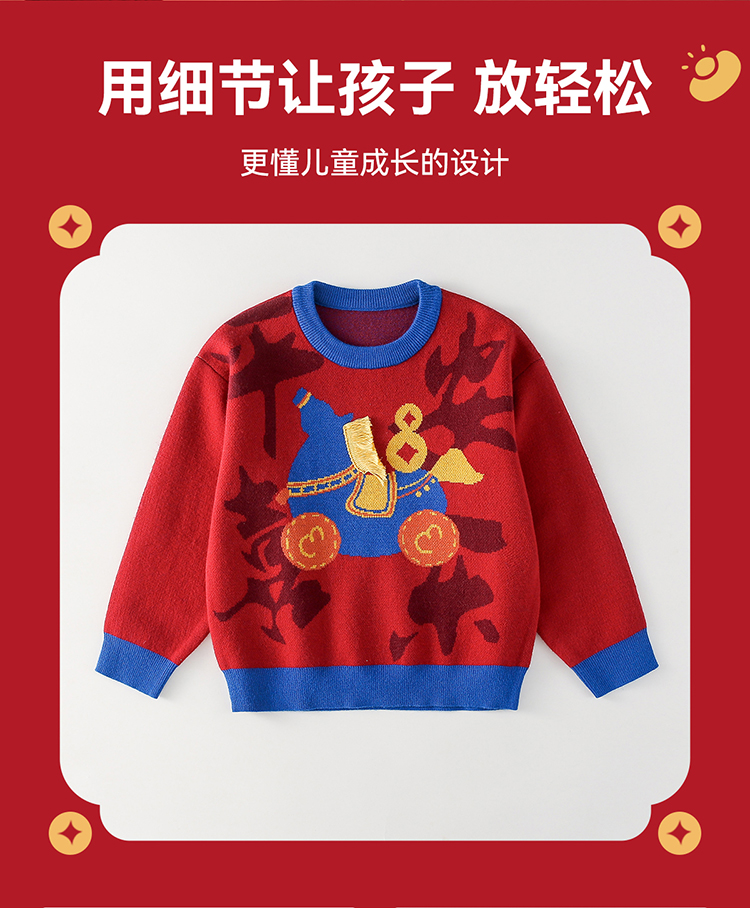 【新年】棉花堂童装儿童红色毛衣秋冬2026新款马年加厚过年拜年服FA52270