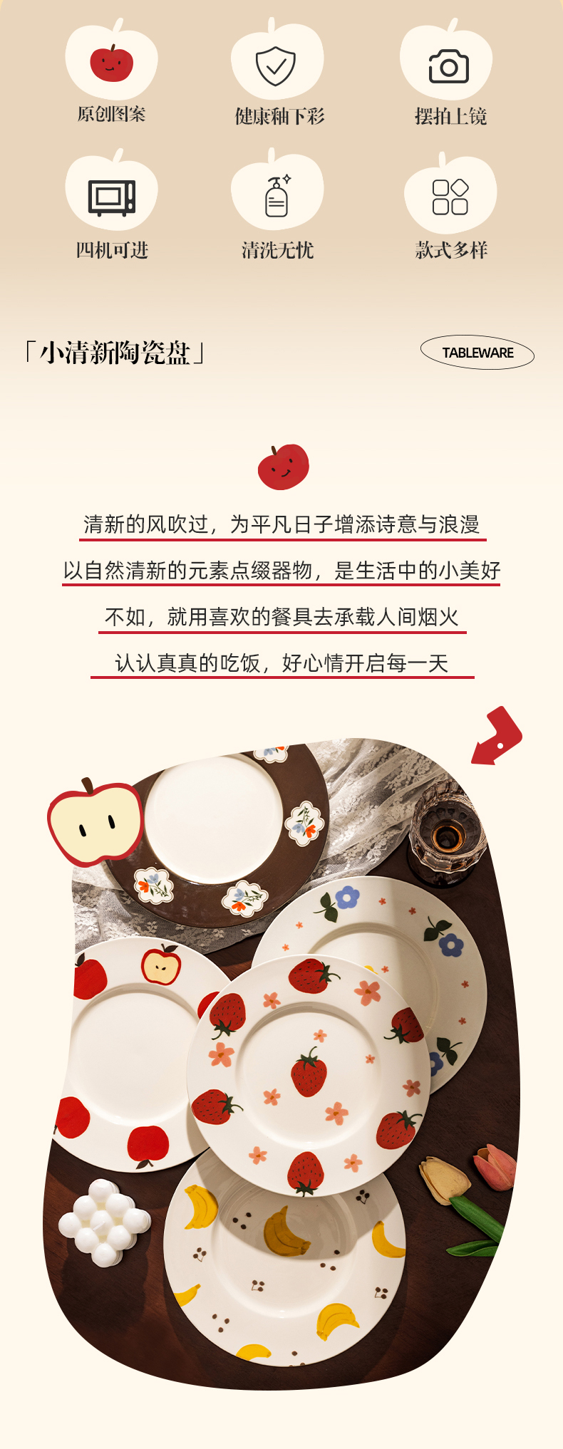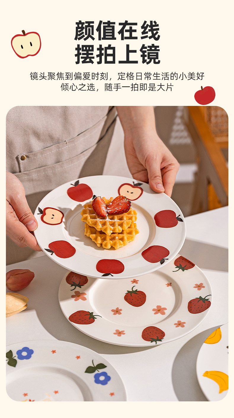 摩登主妇釉下彩盘子家用菜盘2025新款高颜值餐具西餐盘早餐甜品盘