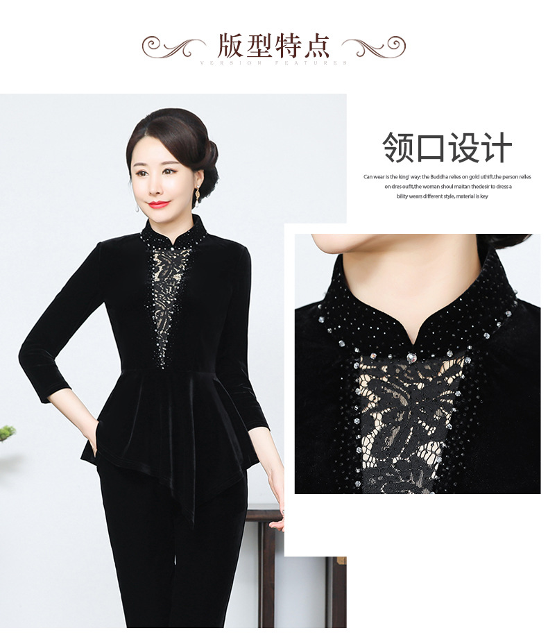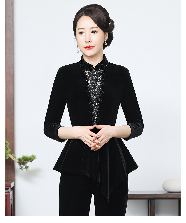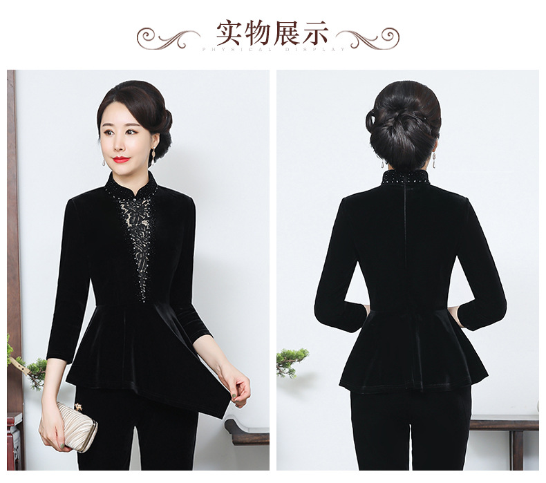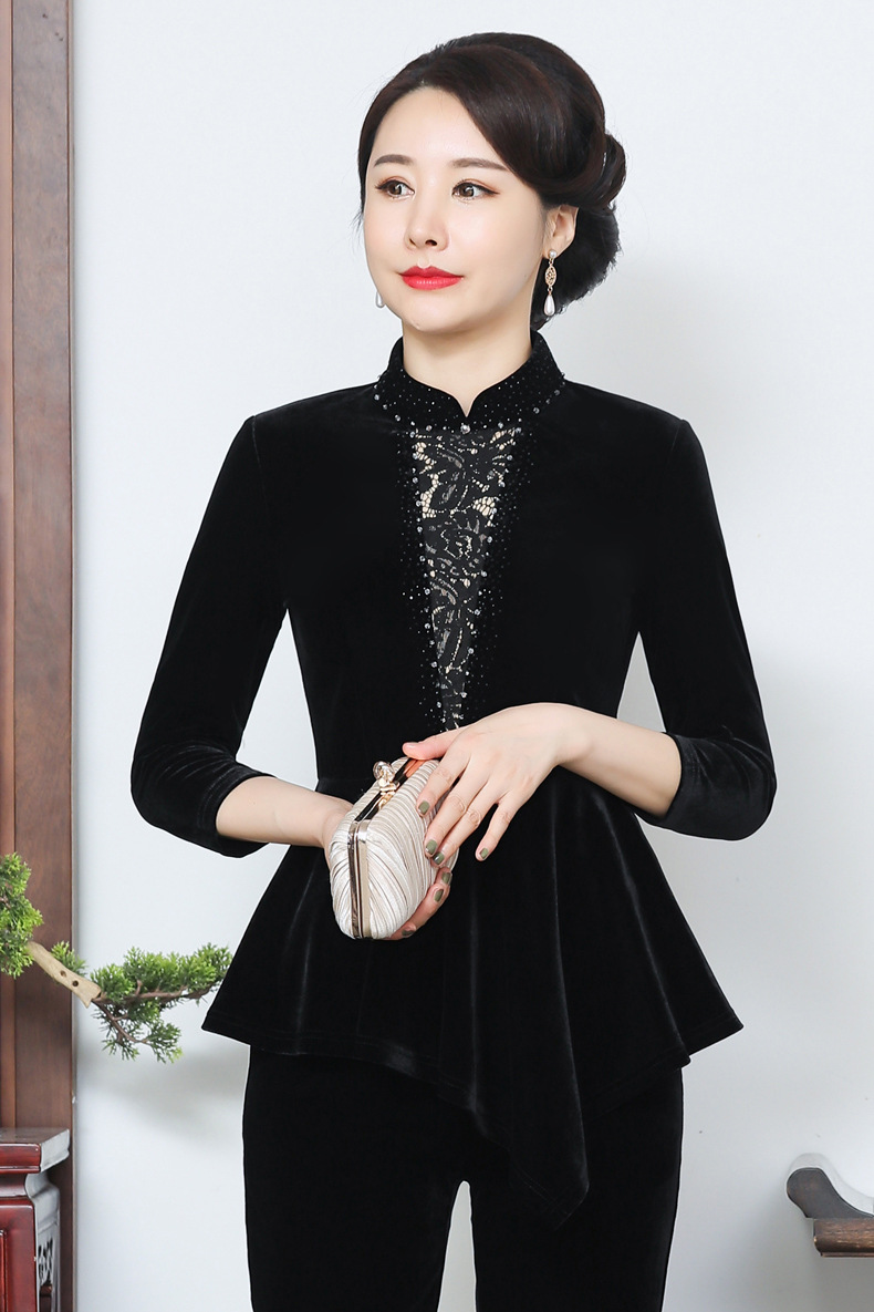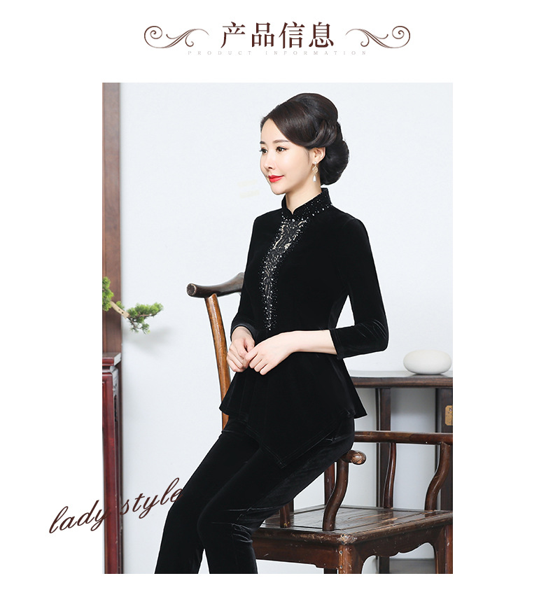 秋季新款女装中年妈妈装金丝绒九分袖上衣YMY-5881