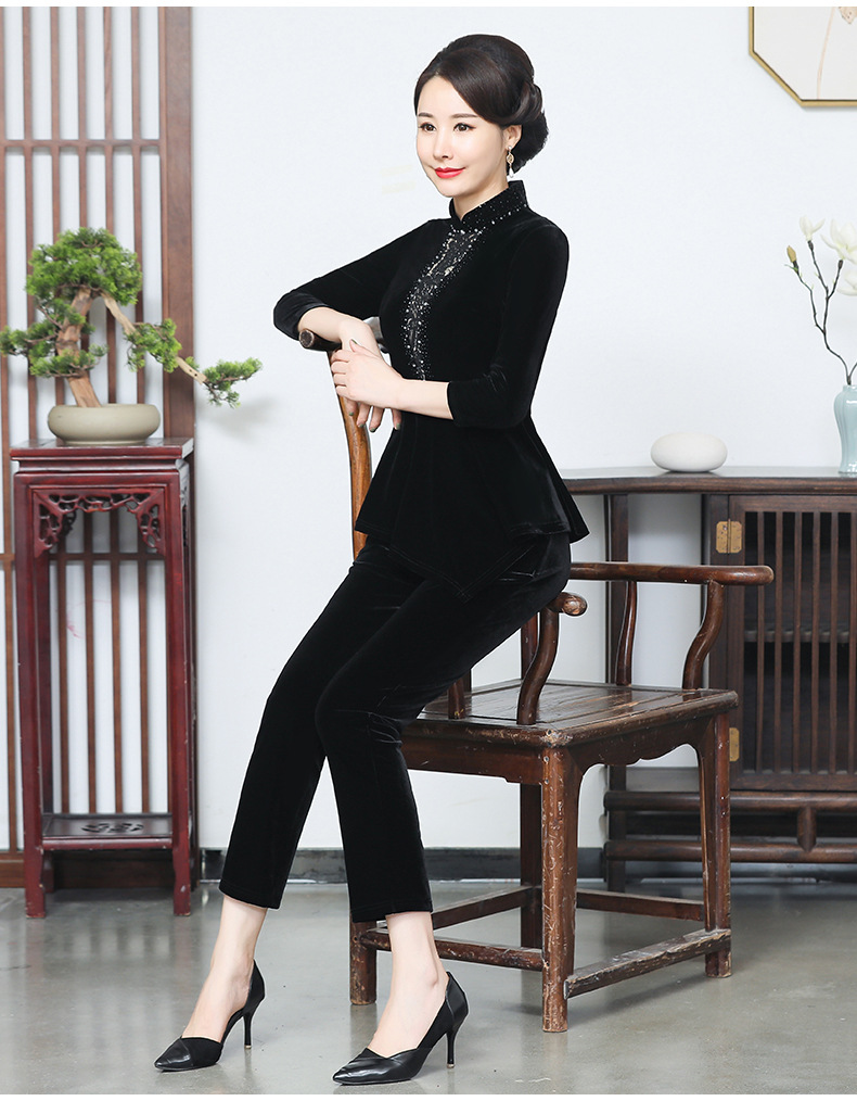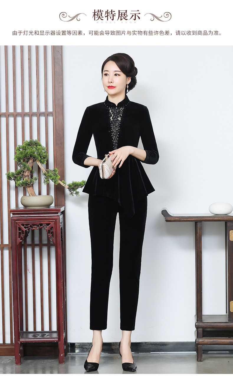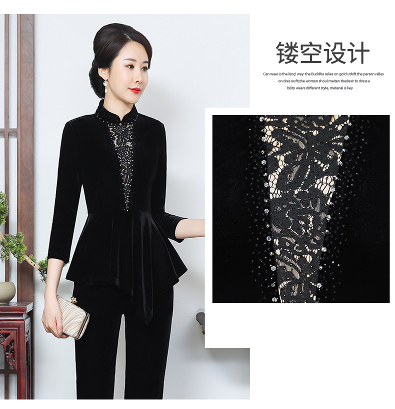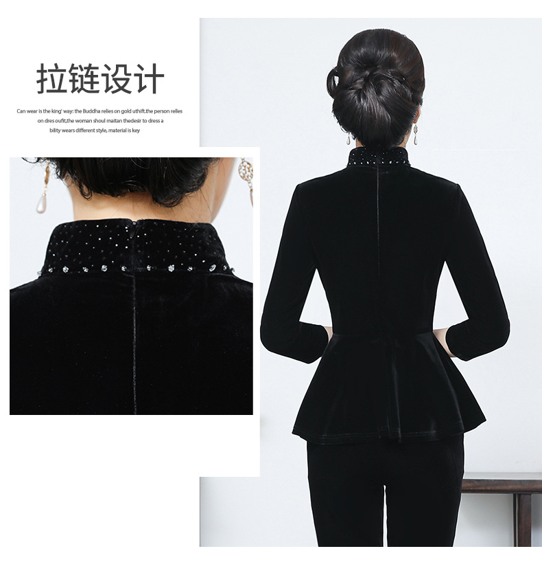 秋季新款女装中年妈妈装金丝绒九分袖上衣YMY-5881