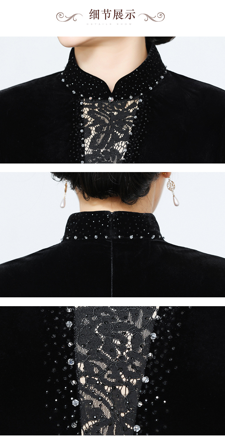 文艺复古V领真丝丝绒连衣裙,妈妈装秋冬长袖中长裙子SM-82497998