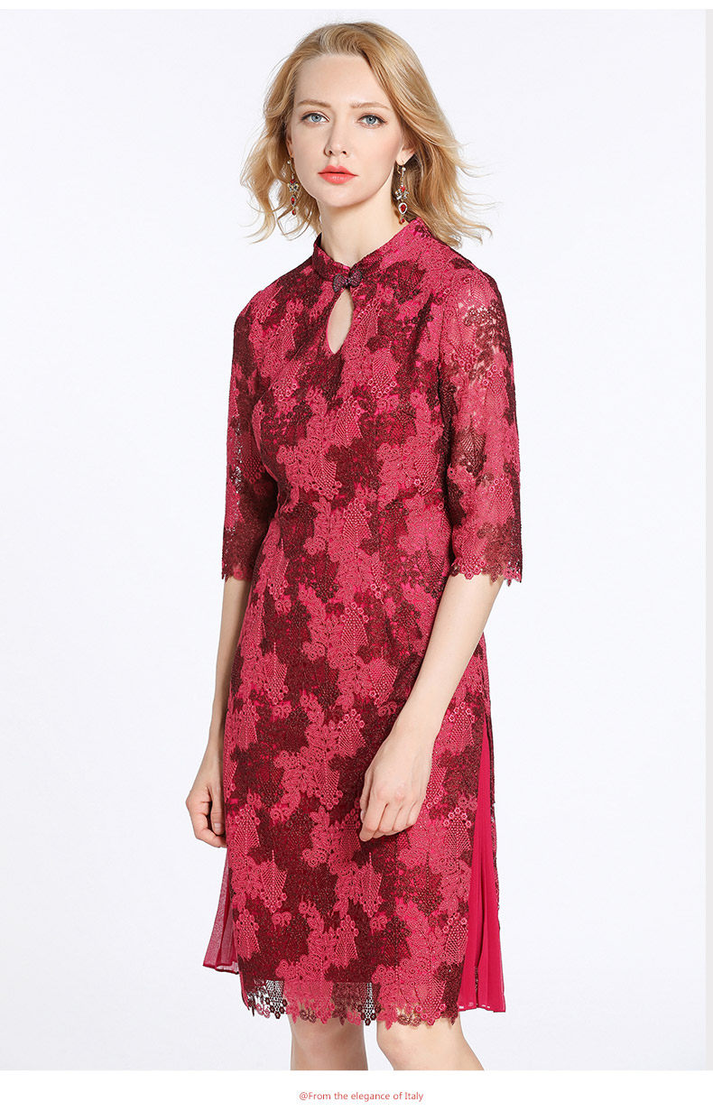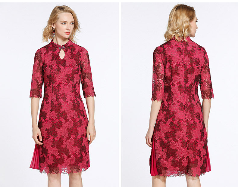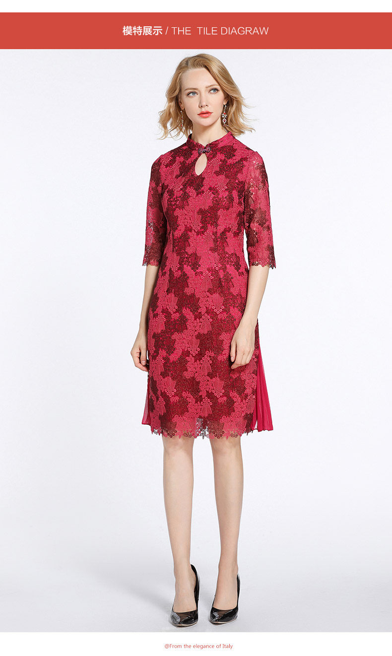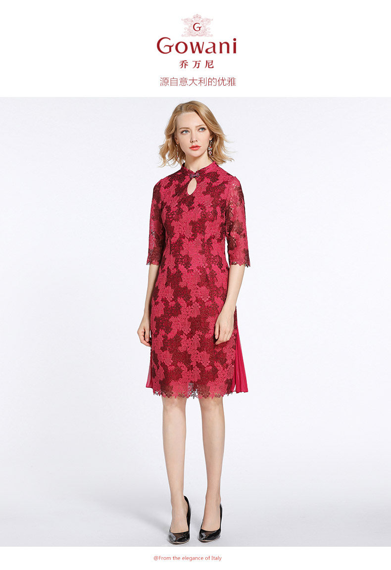 乔万尼春季修身五分袖连衣裙中国风旗袍喜宴红装EB3E281