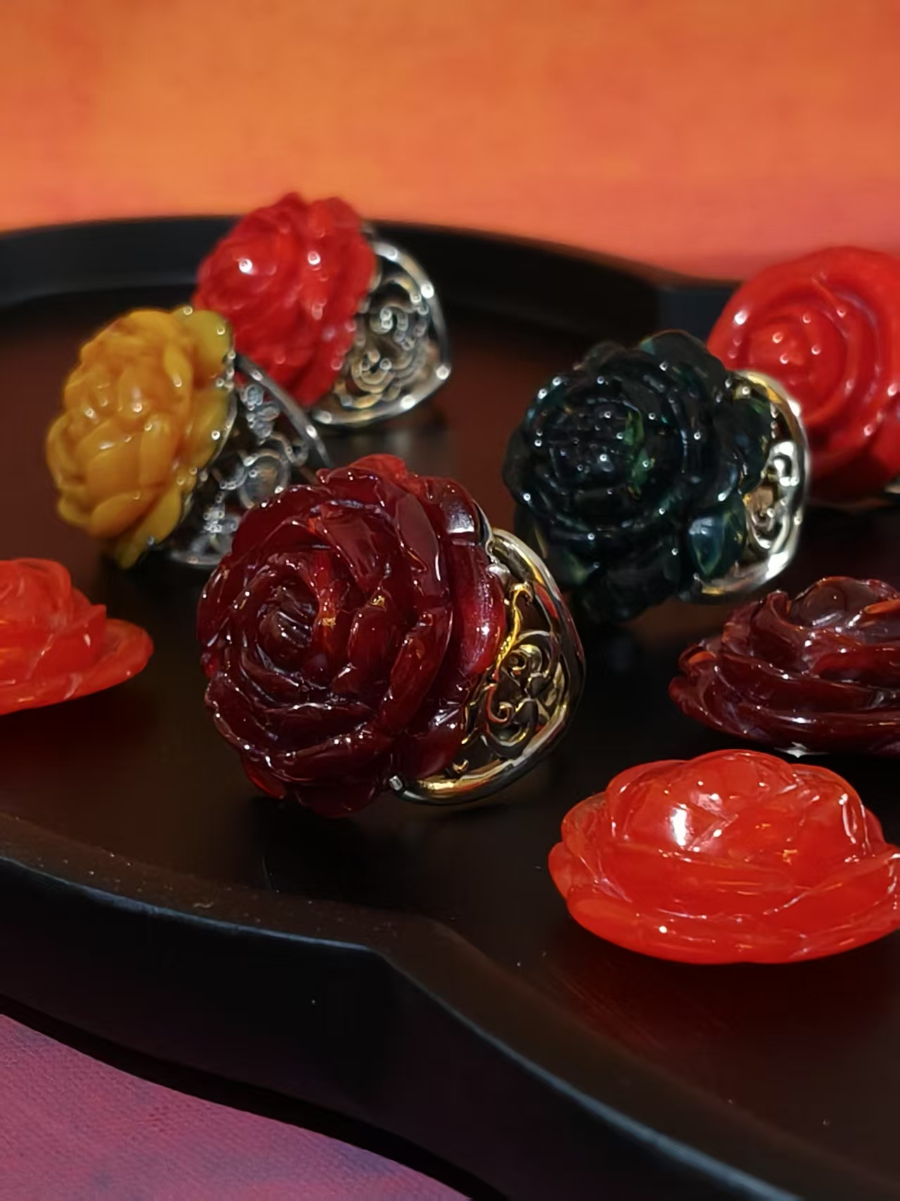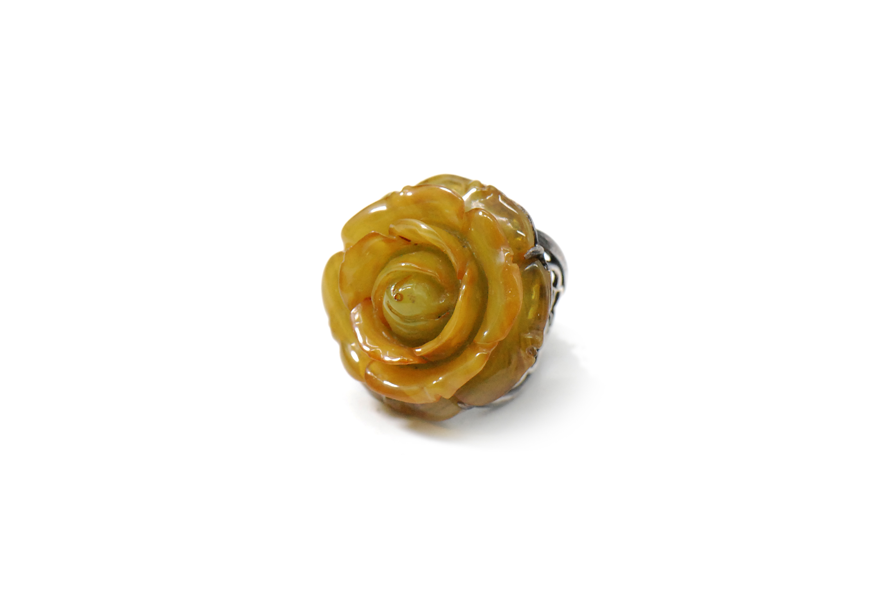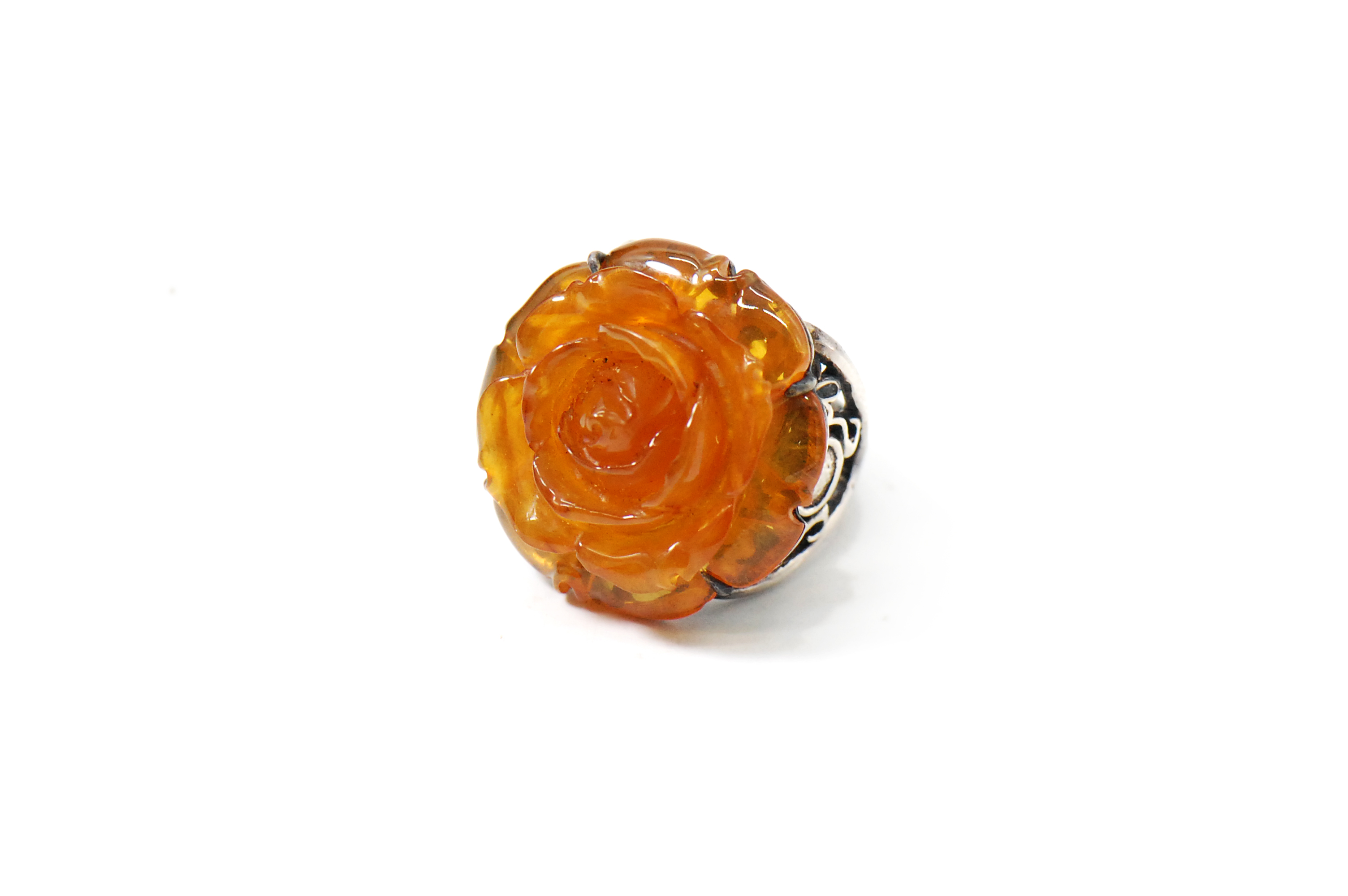 品名:多宝蜜蜡雕玫瑰花镶尼泊尔手制925银戒指
