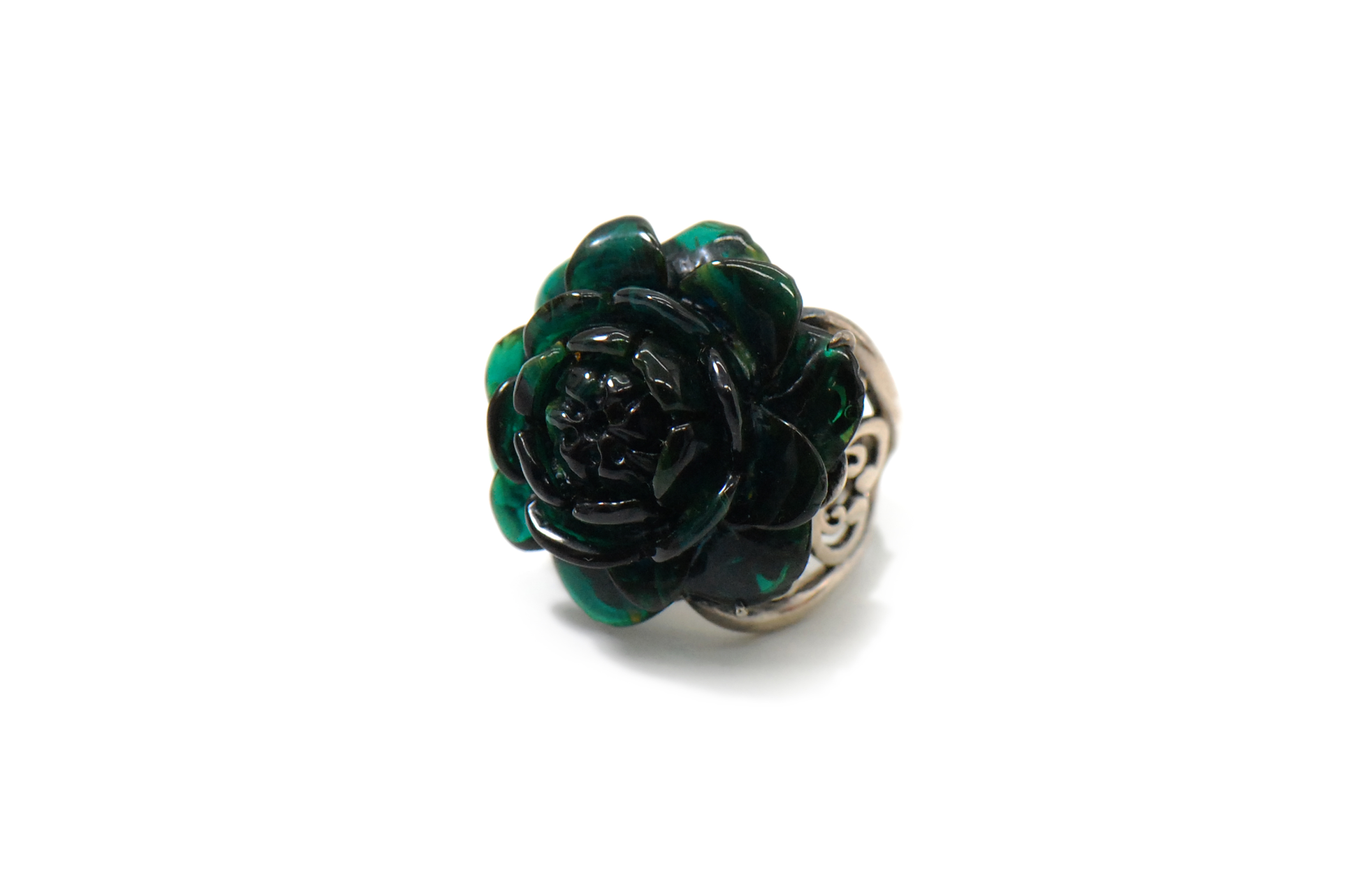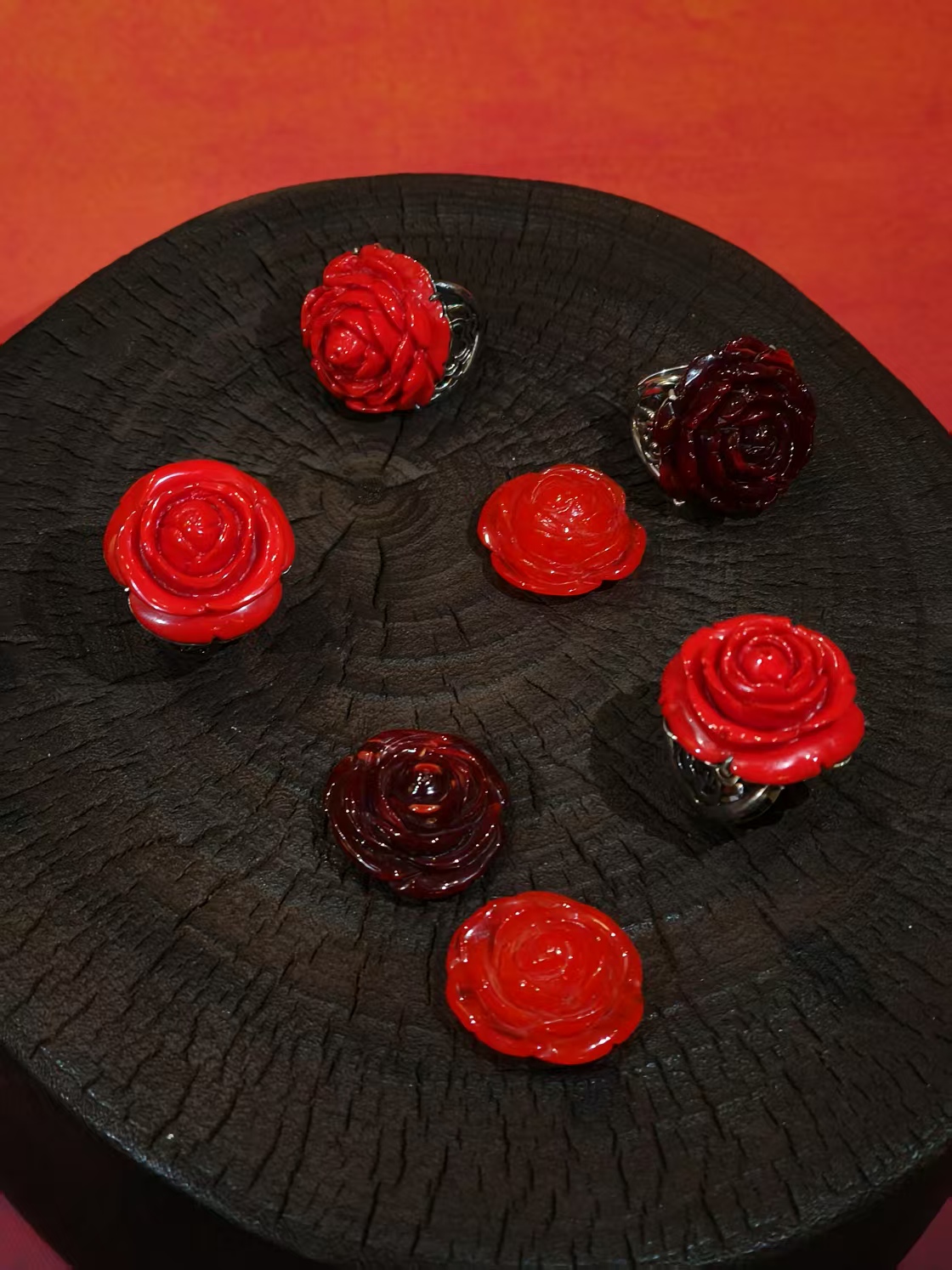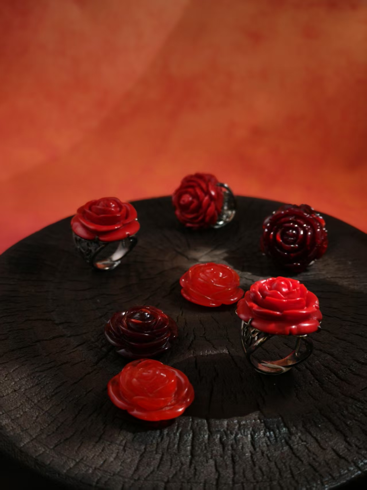 品名:多宝蜜蜡雕玫瑰花镶尼泊尔手制925银戒指
