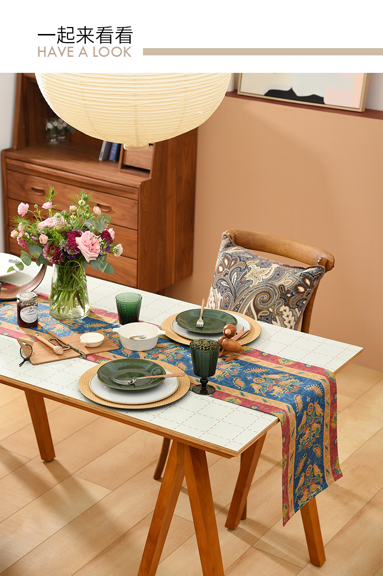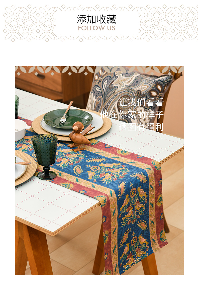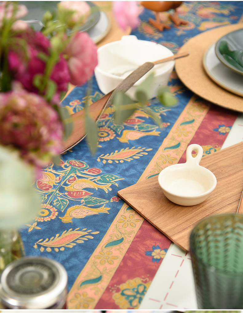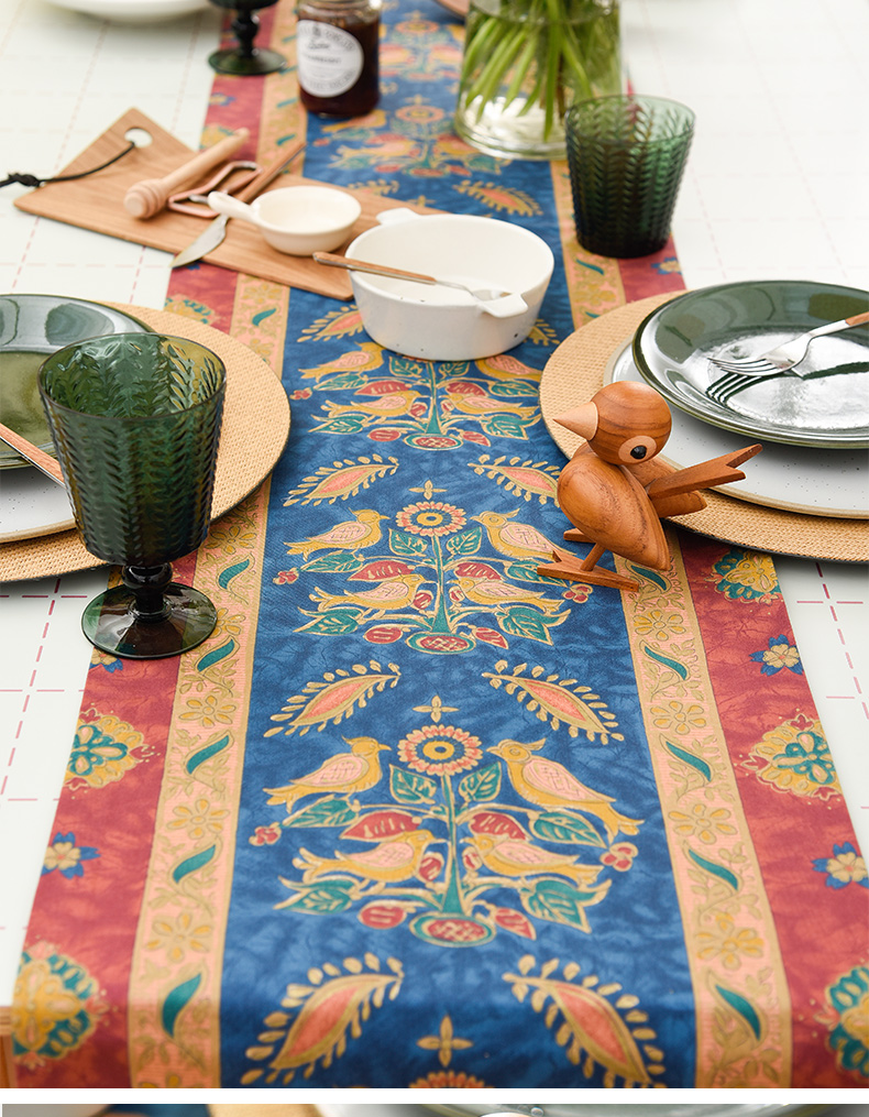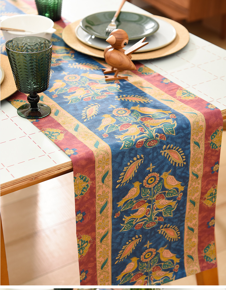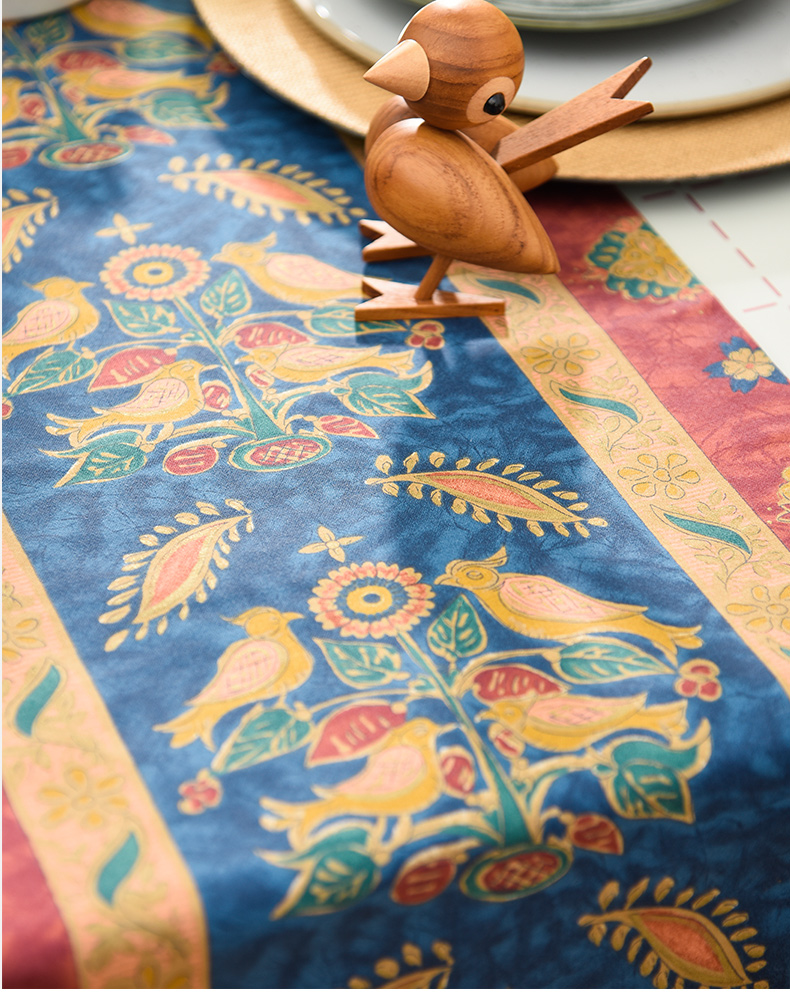 飞鸟与花美式复古茶几巾