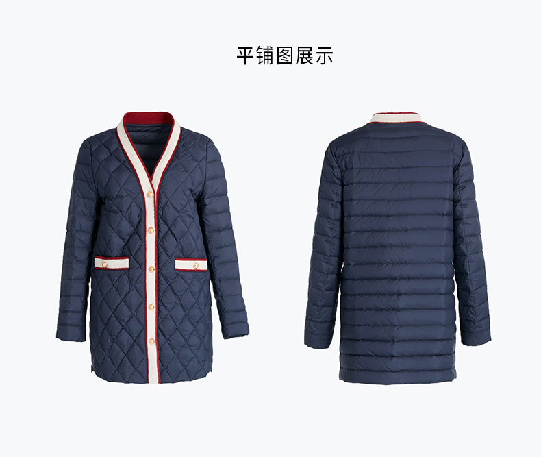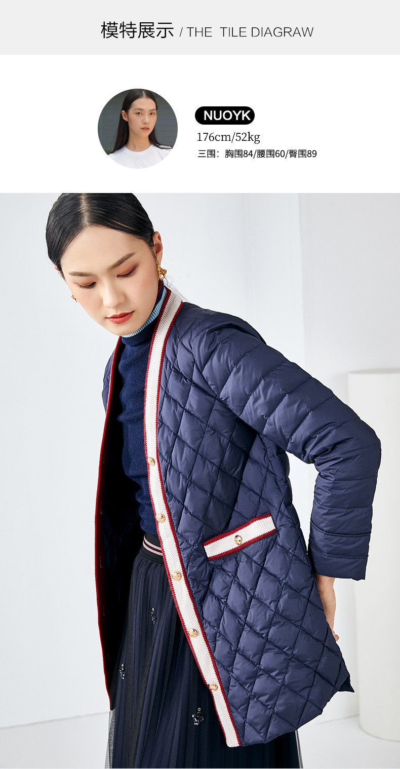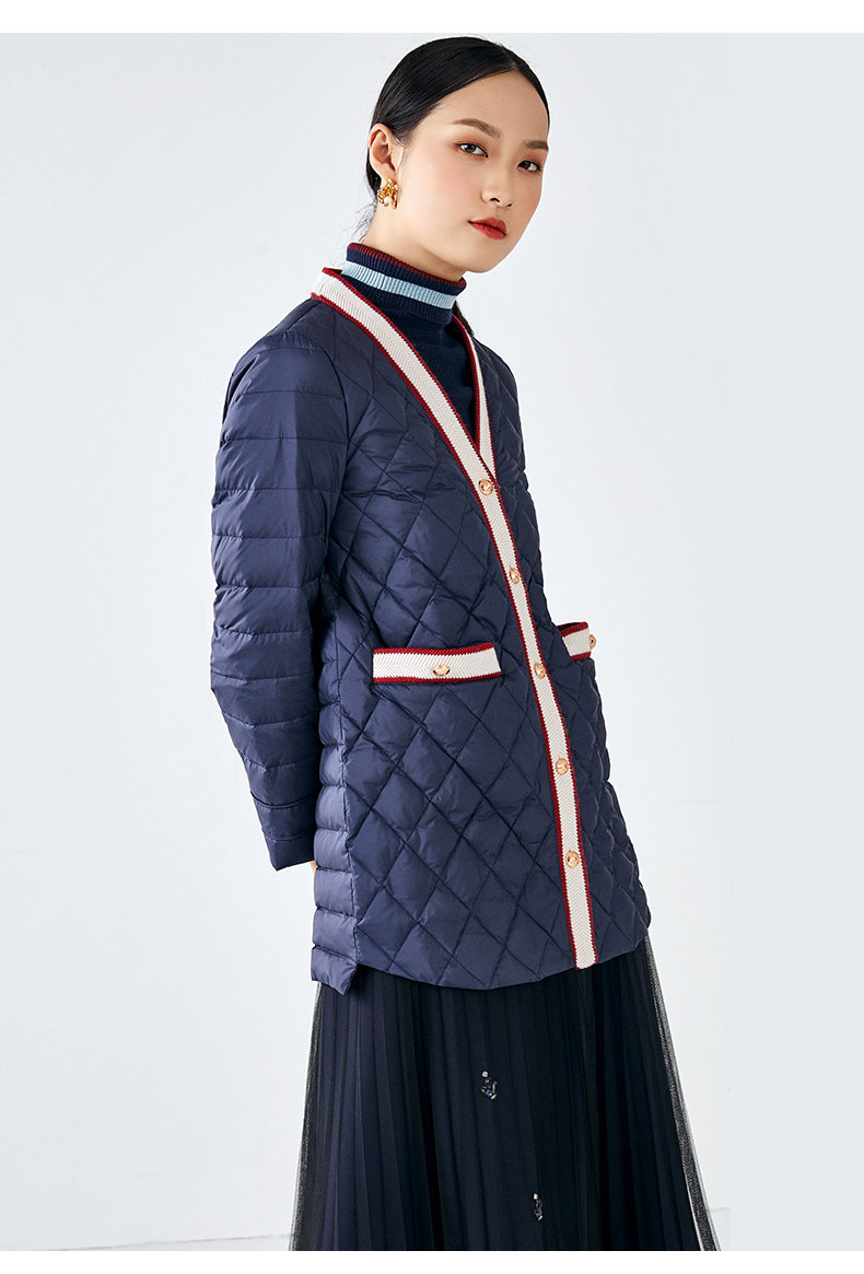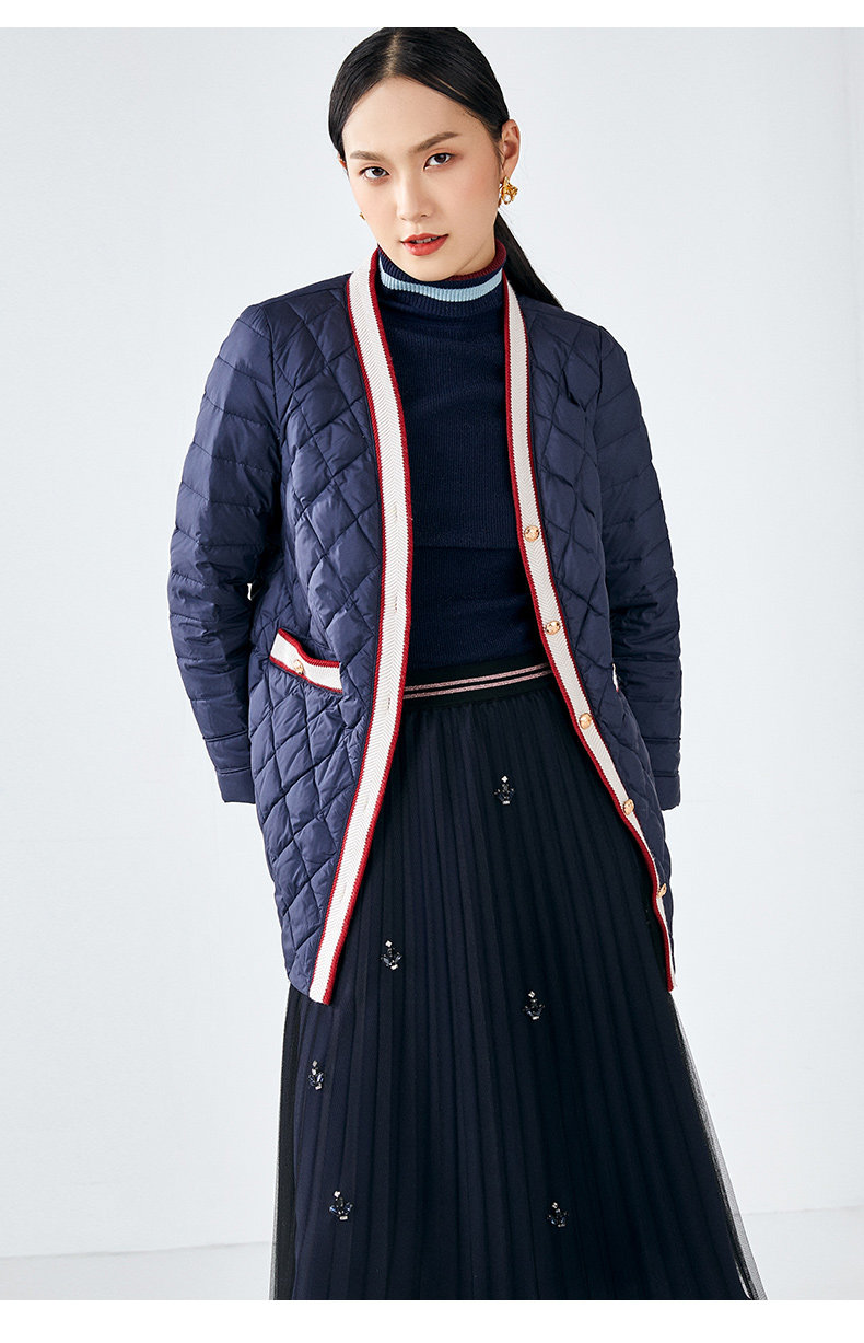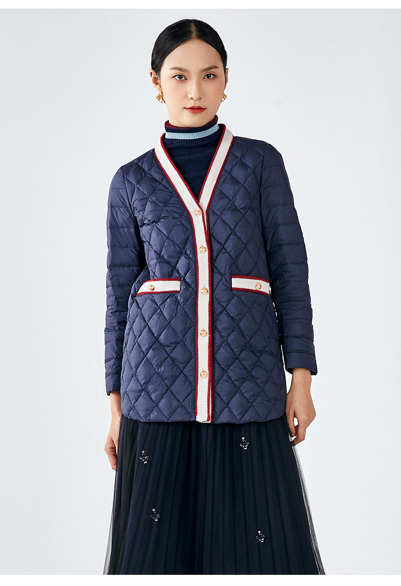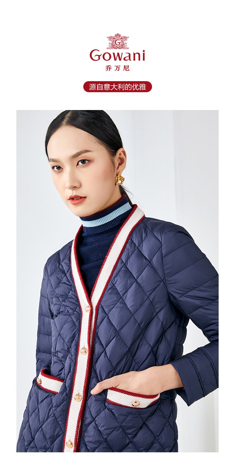 乔万尼羽绒服时尚小香风V领白鸭绒轻薄直筒保暖外套ES4T478