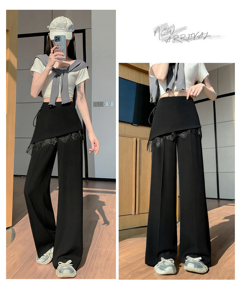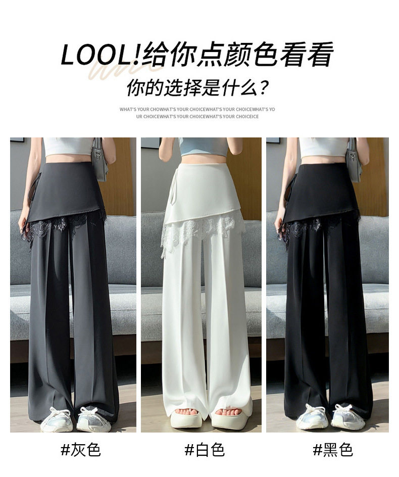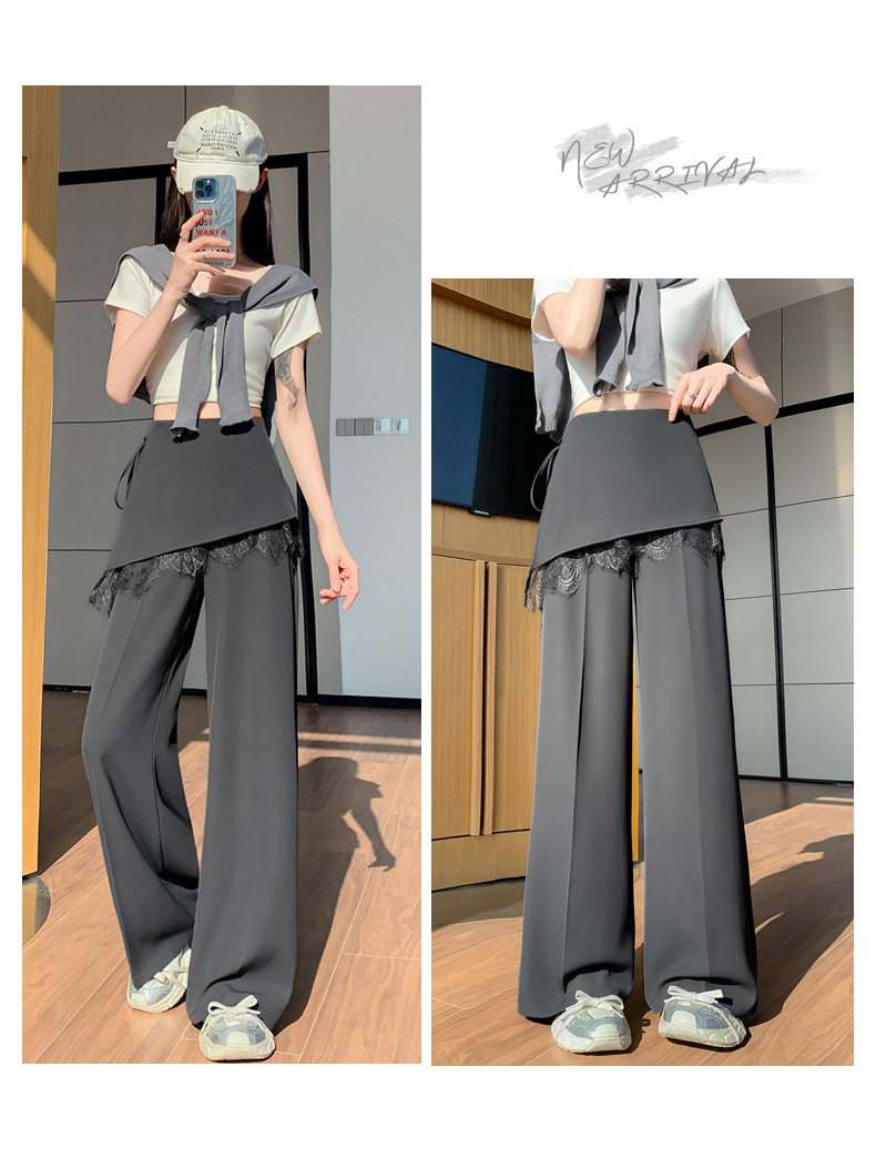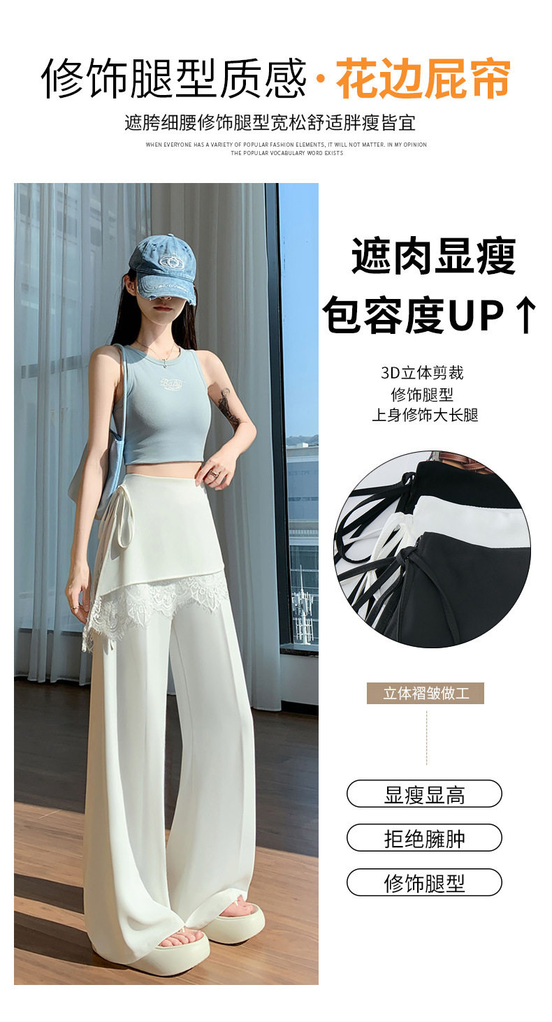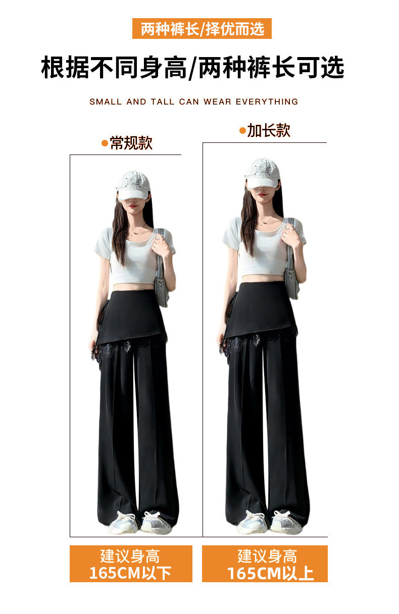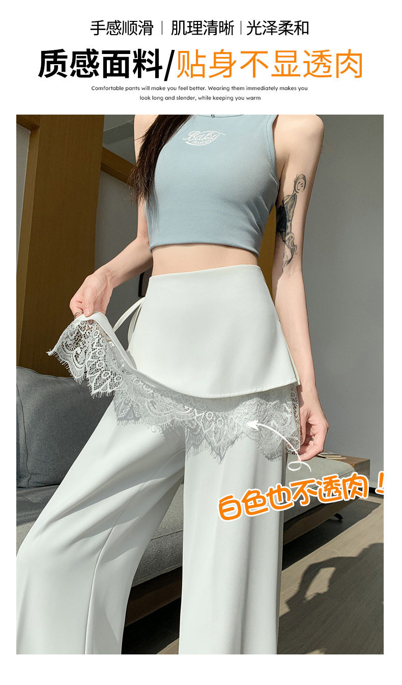 假两件蕾丝拼接屁帘阔腿裤女夏季高腰显瘦西装休闲直筒拖地裤 NDK-B2028