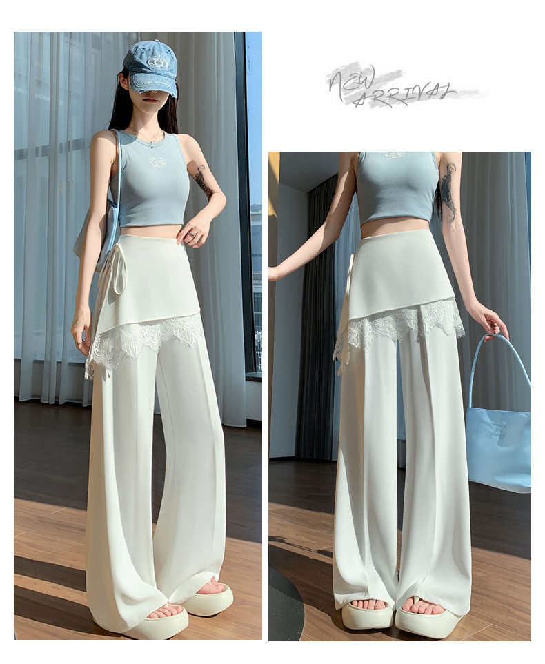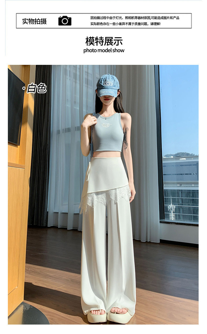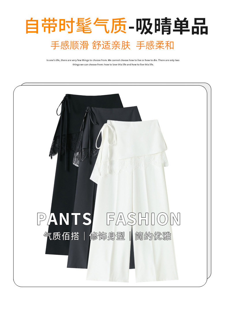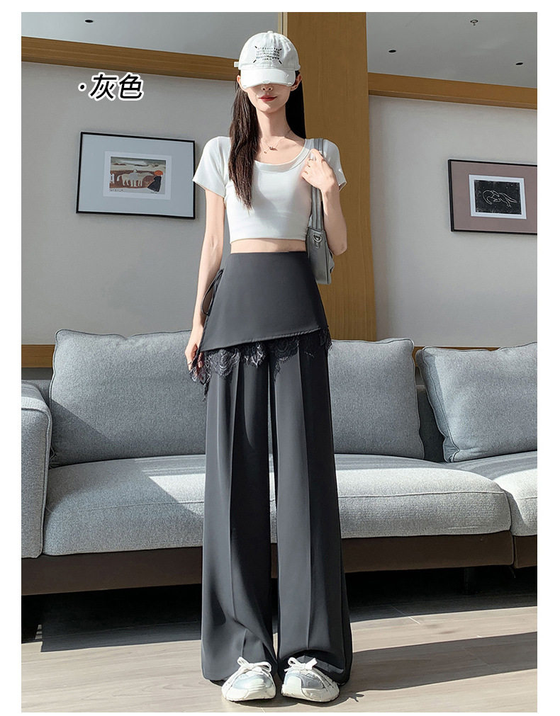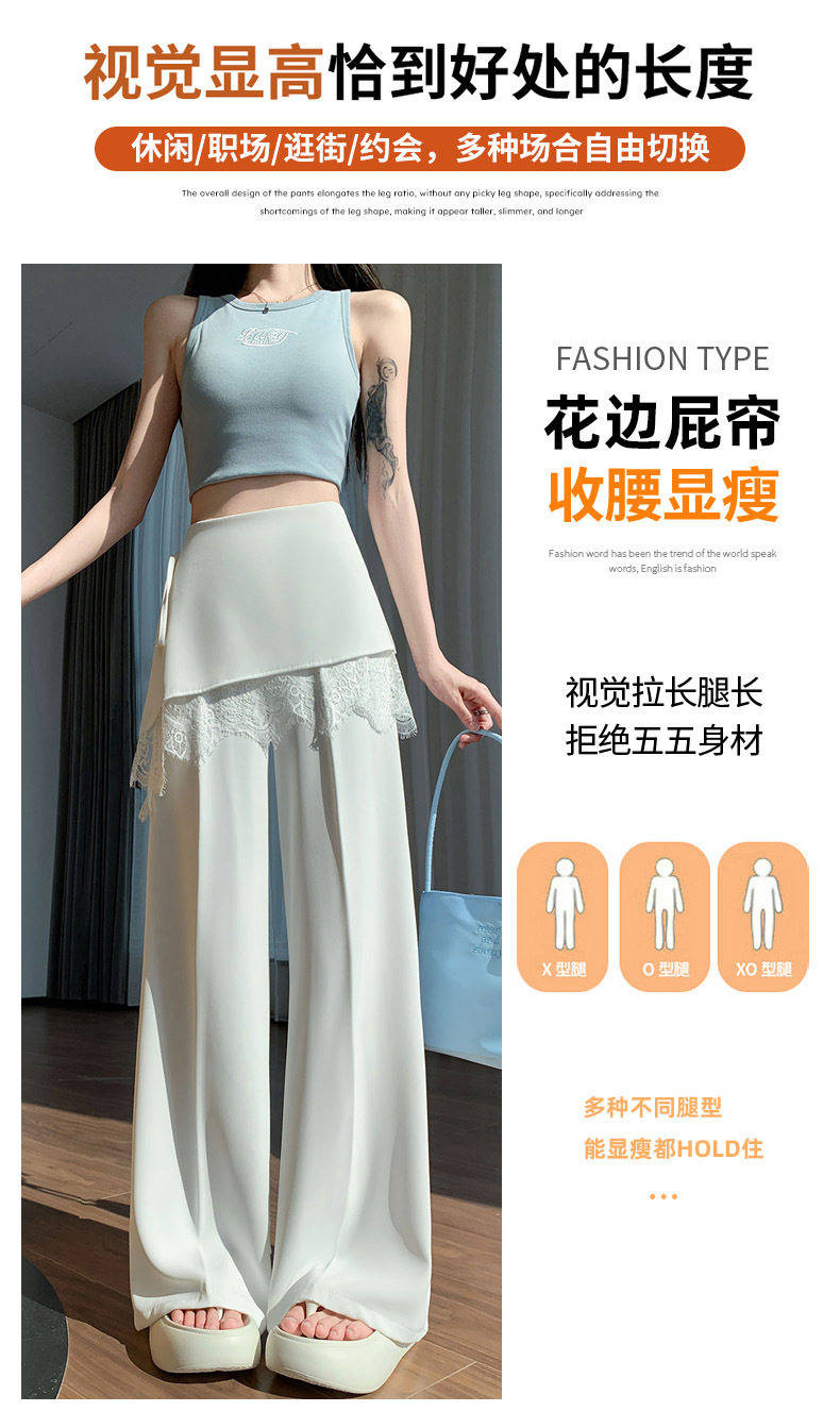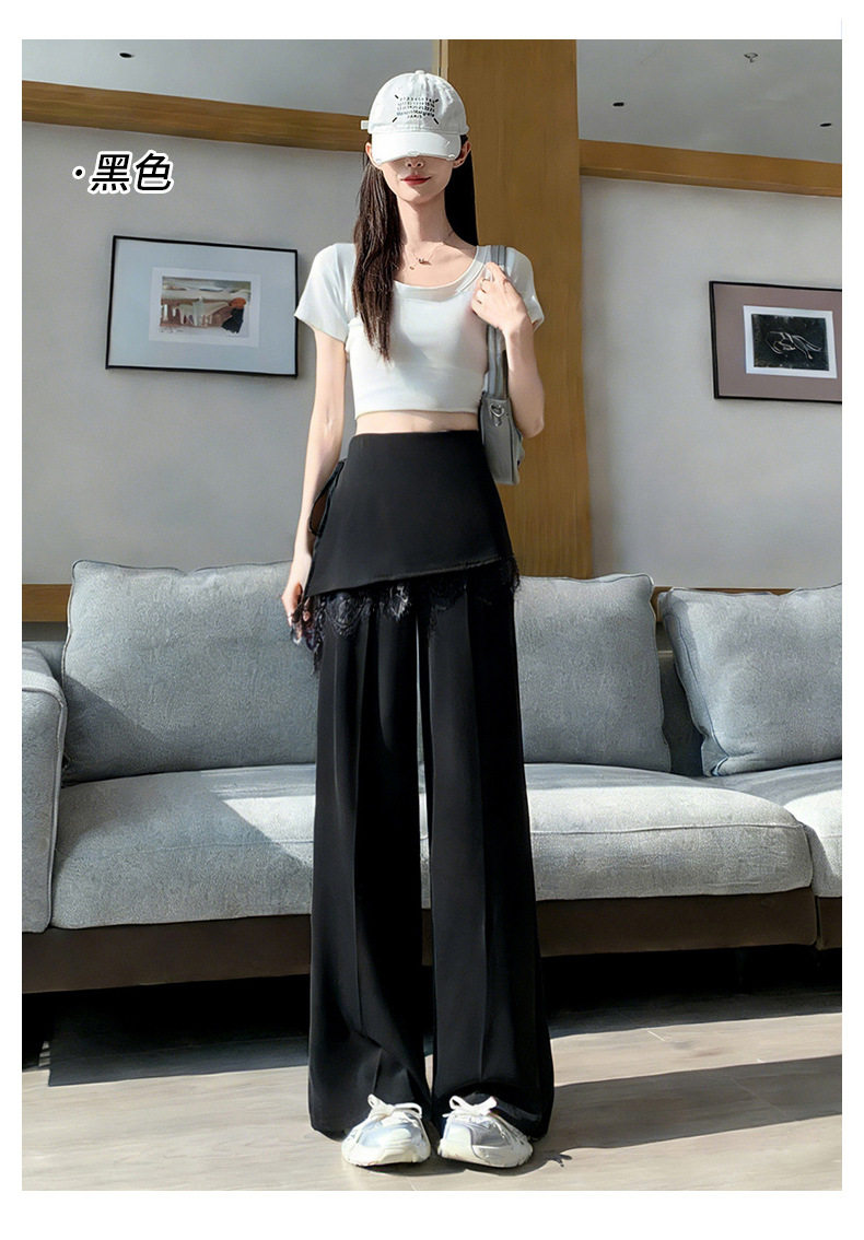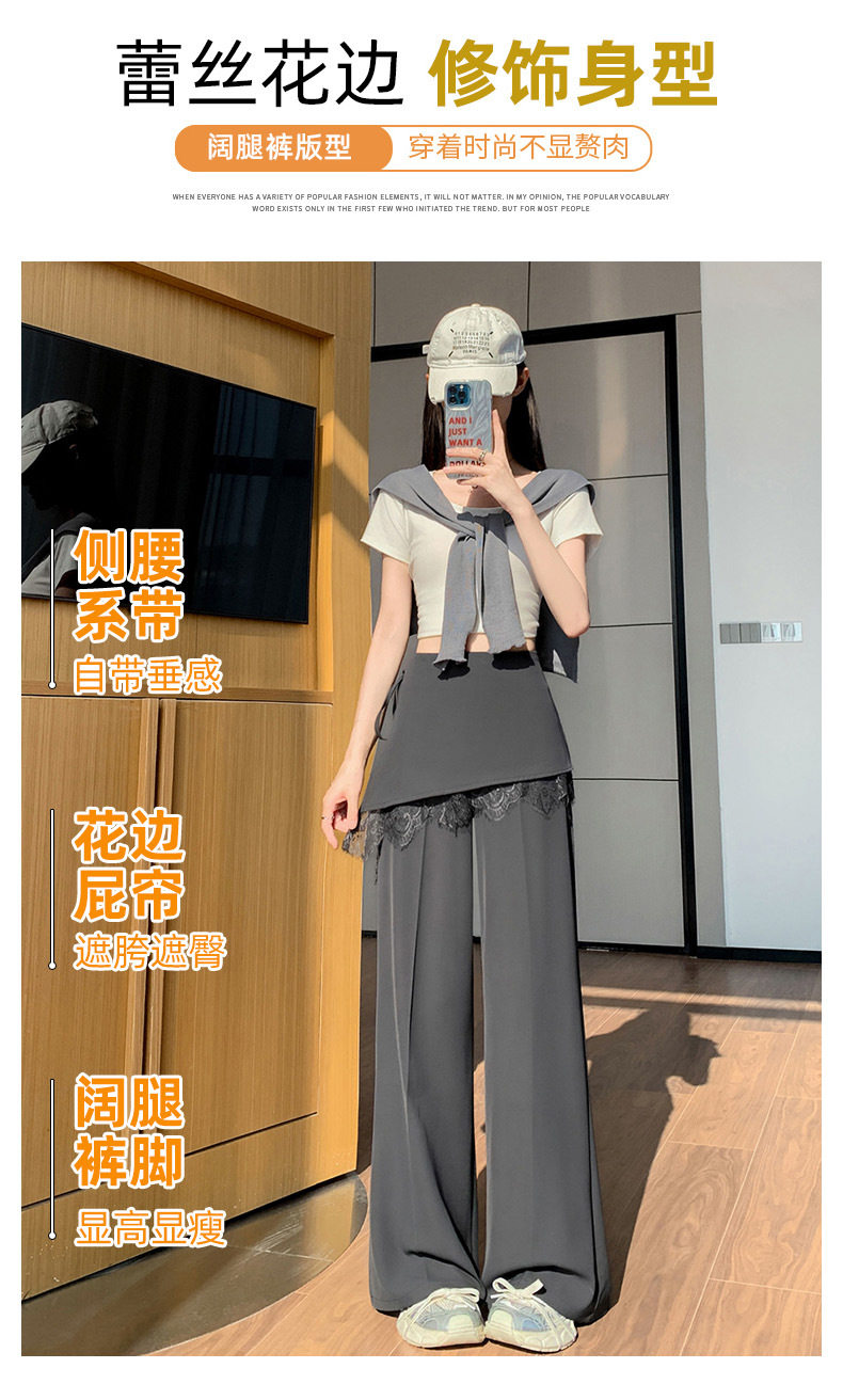 假两件蕾丝拼接屁帘阔腿裤女夏季高腰显瘦西装休闲直筒拖地裤 NDK-B2028