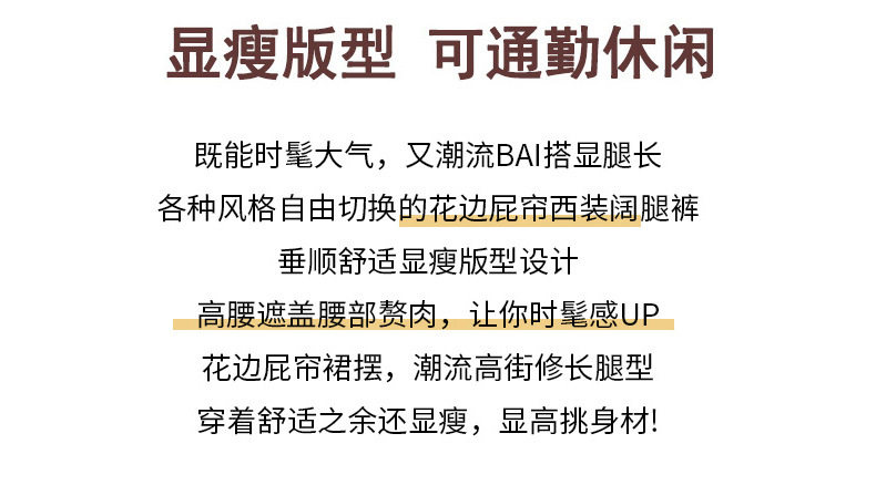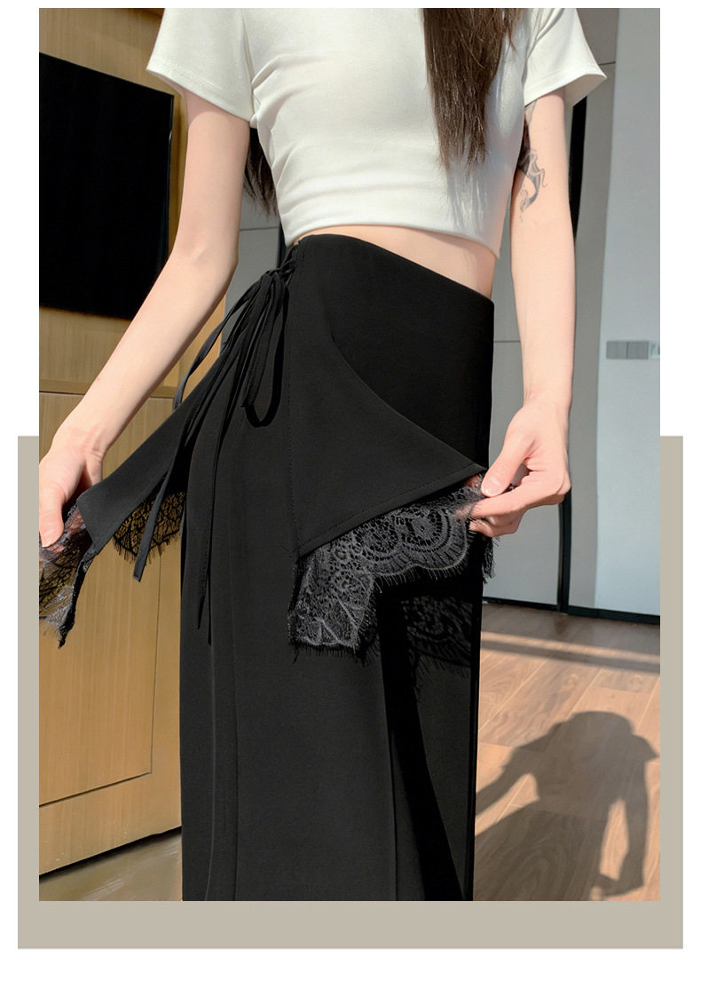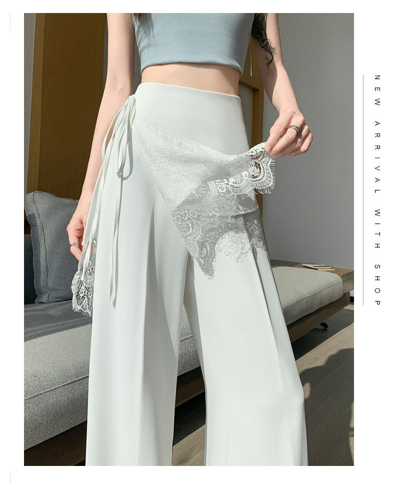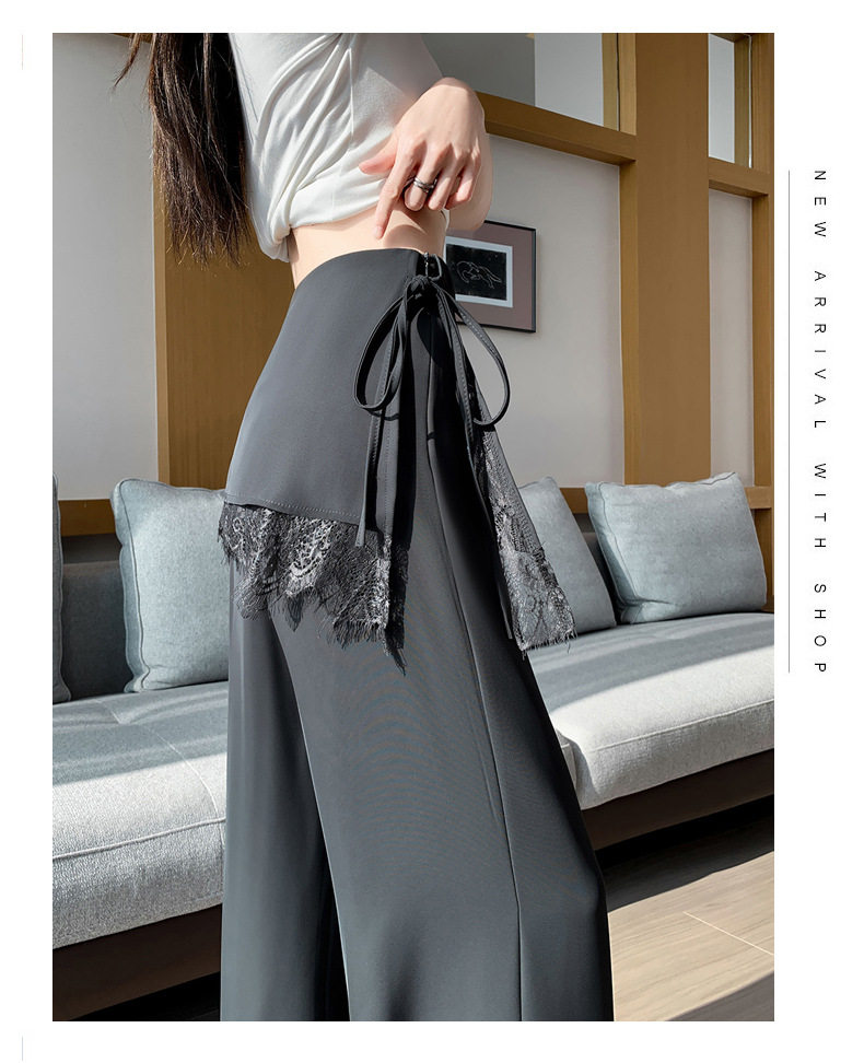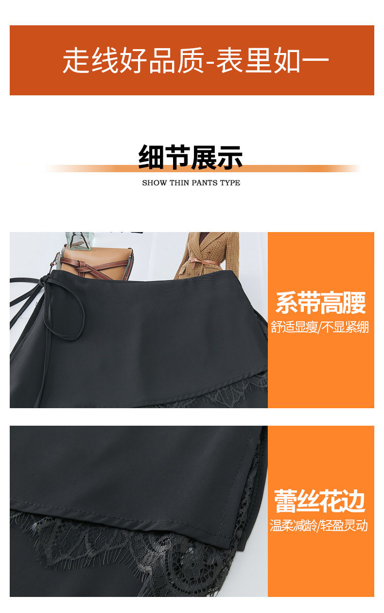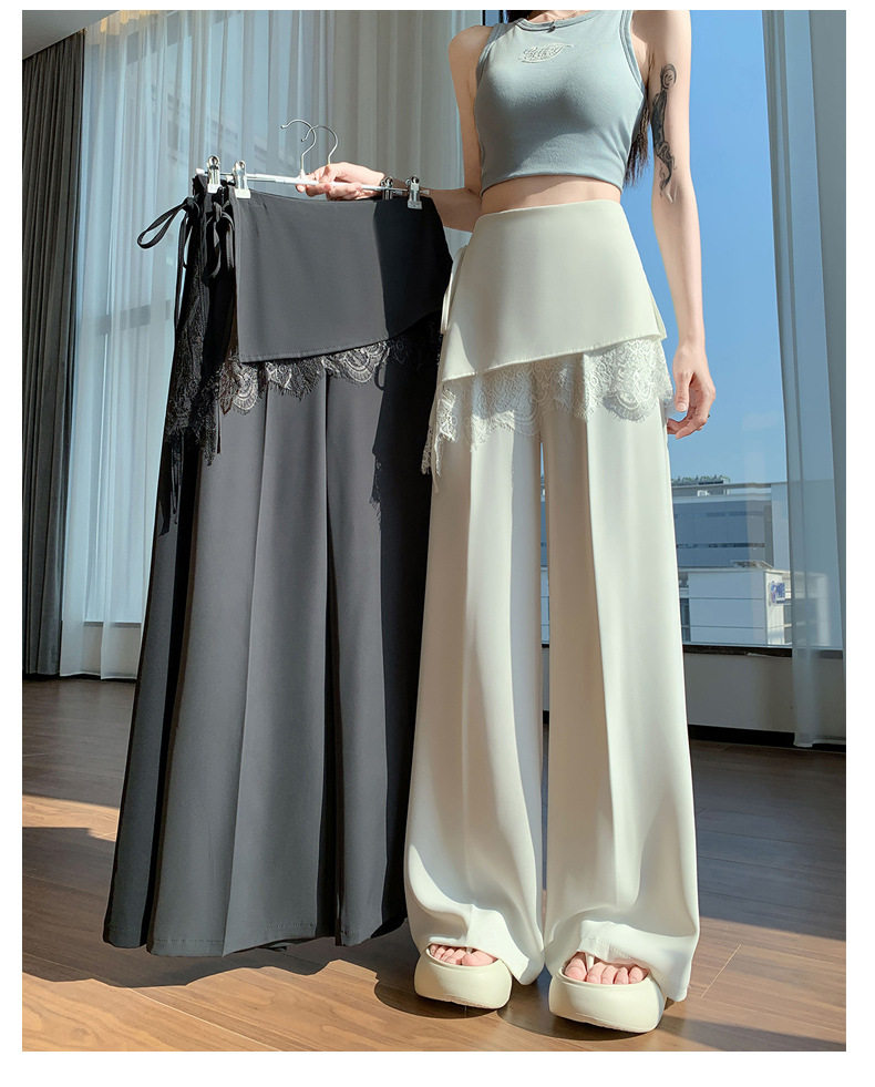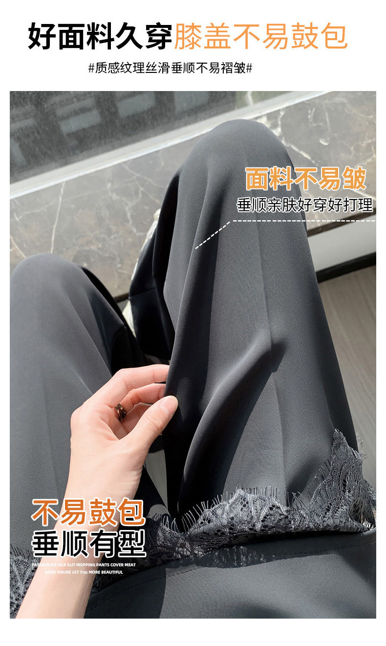 假两件蕾丝拼接屁帘阔腿裤女夏季高腰显瘦西装休闲直筒拖地裤 NDK-B2028