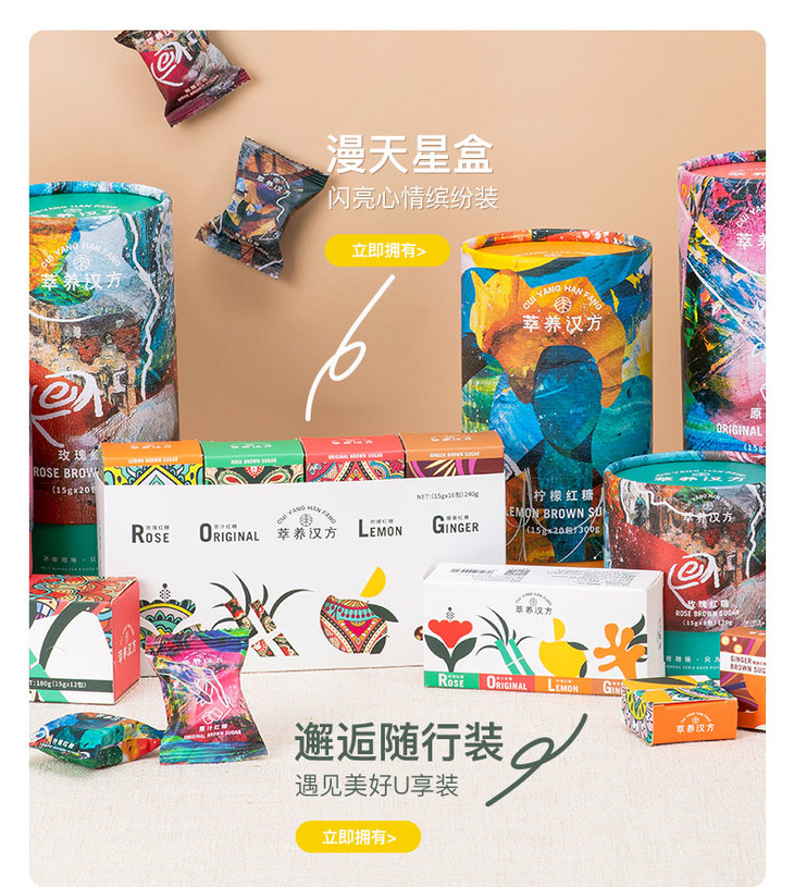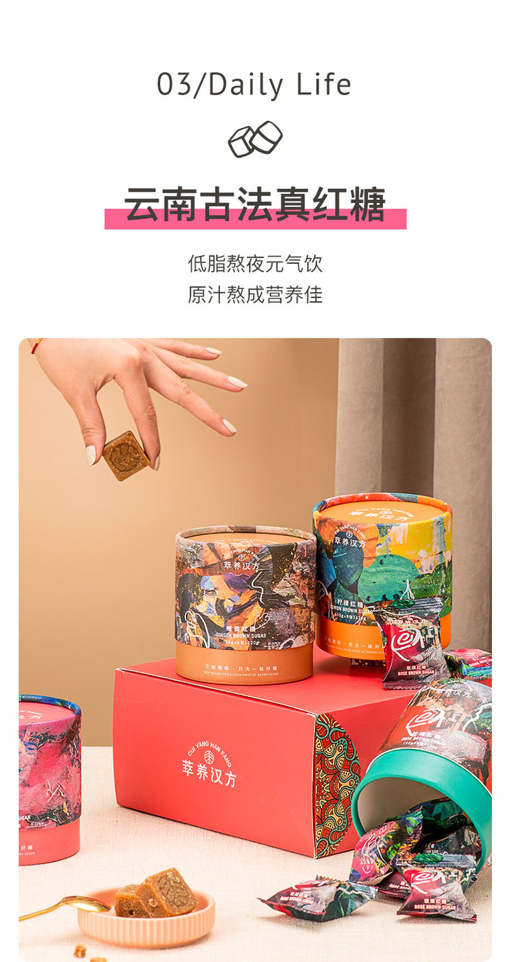 【重阳派礼】120g萃养汉方原汁红糖/玫瑰红糖/柠檬红糖/生姜红糖 圆筒装