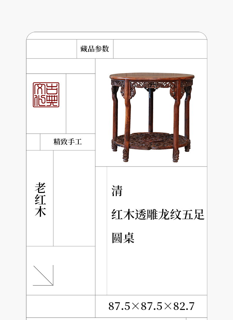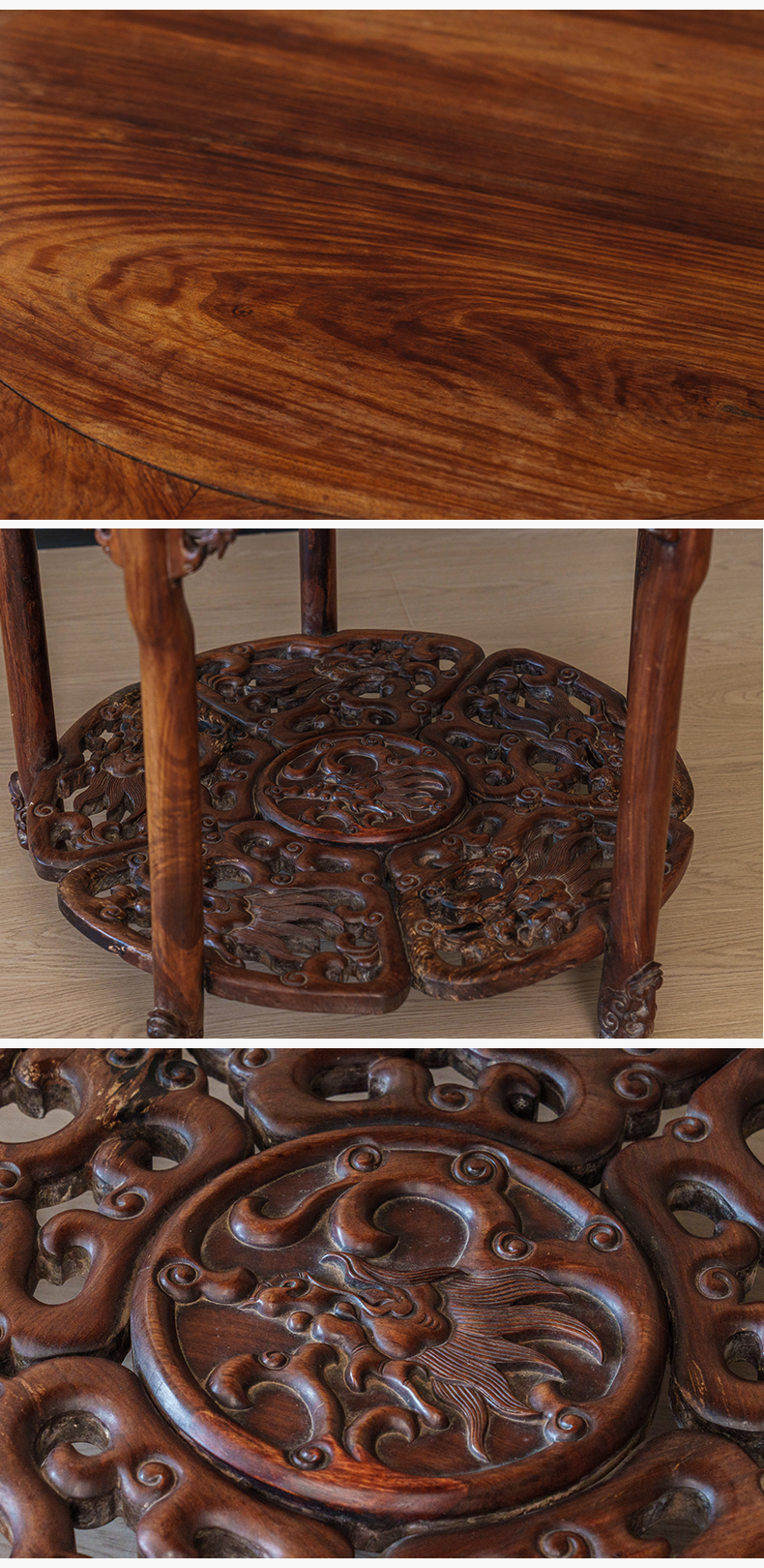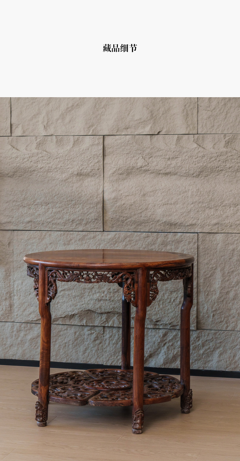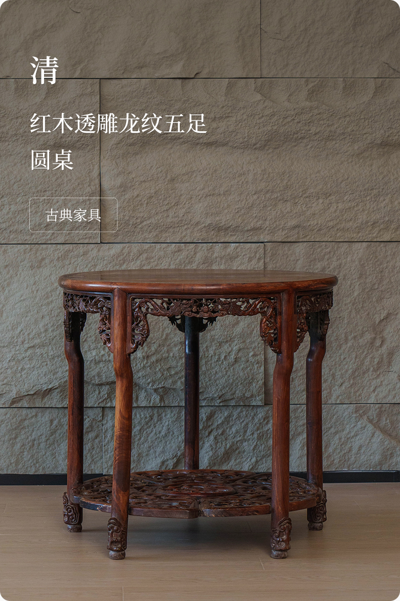 清 红木透雕龙纹五足圆桌