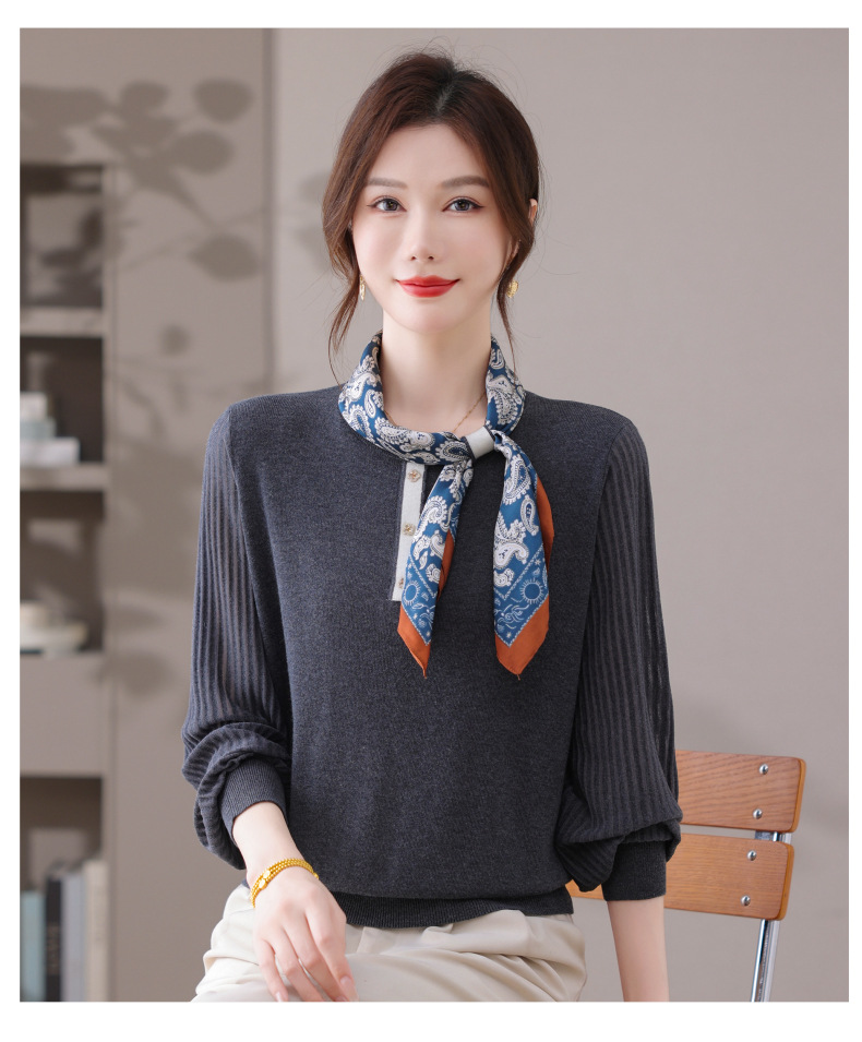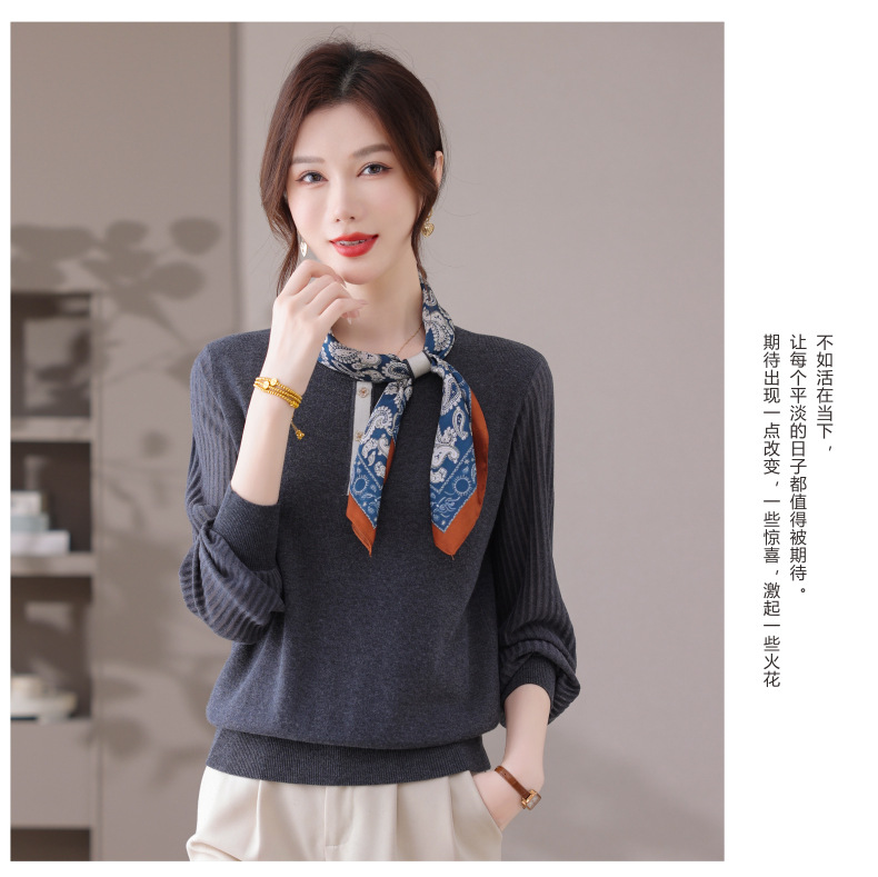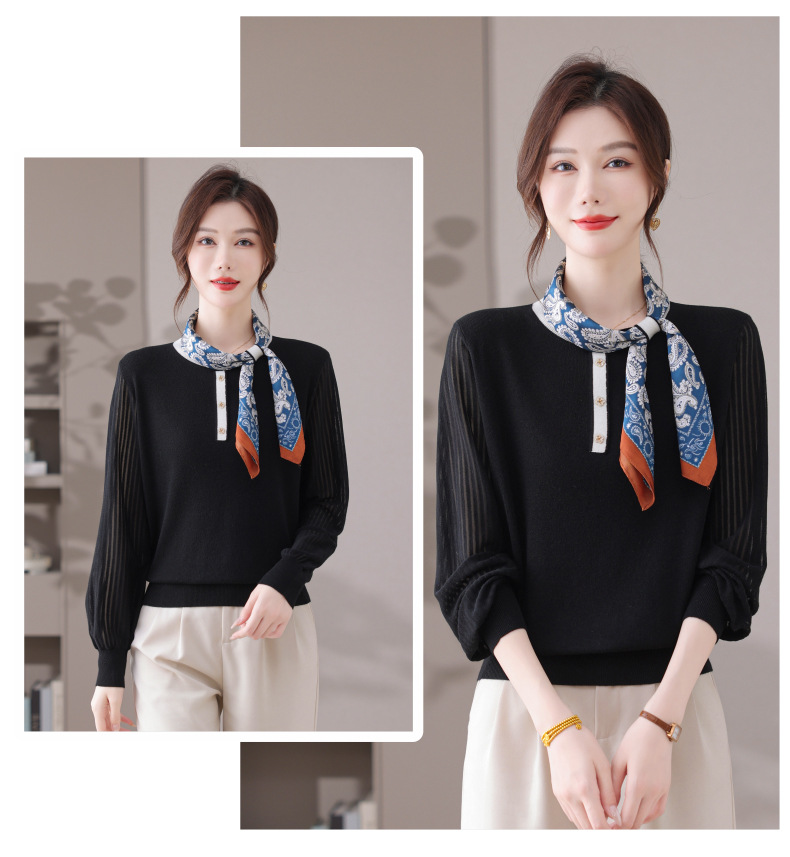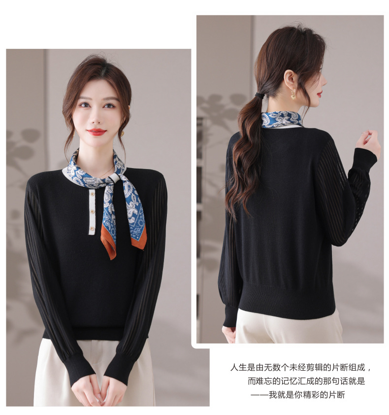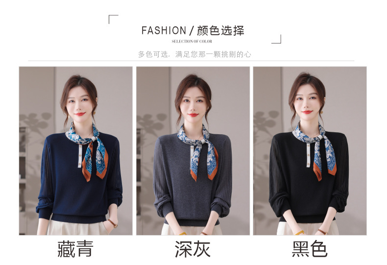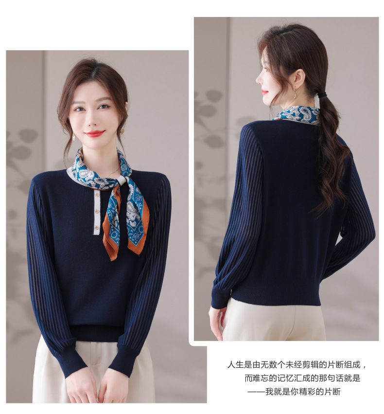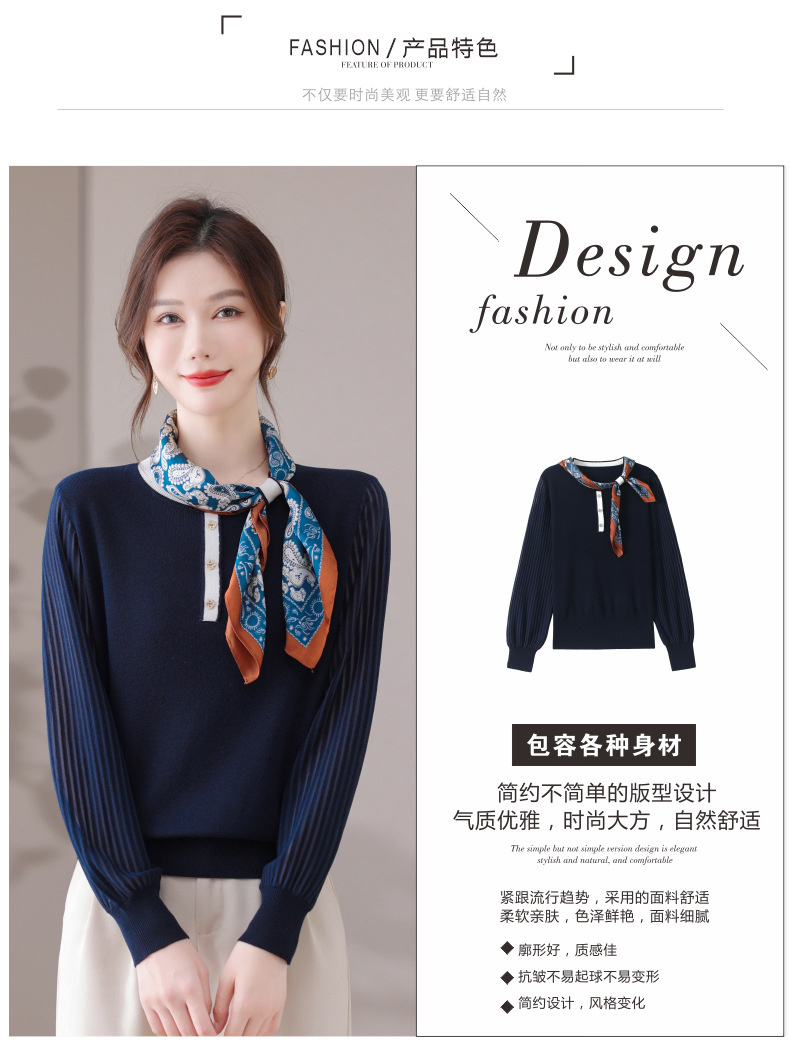 CC漂亮减龄打底衫短款洋气新款春秋薄款针织衫带丝巾的上衣气质时髦