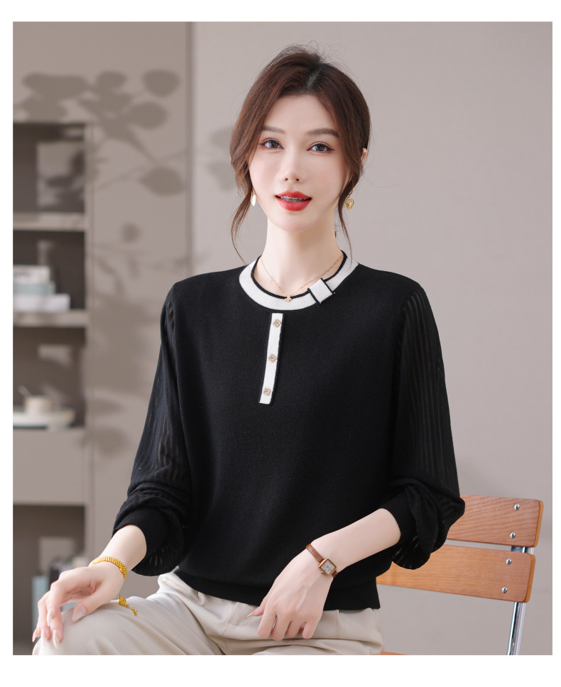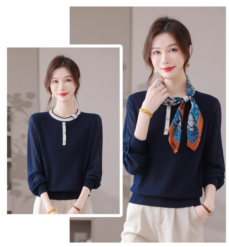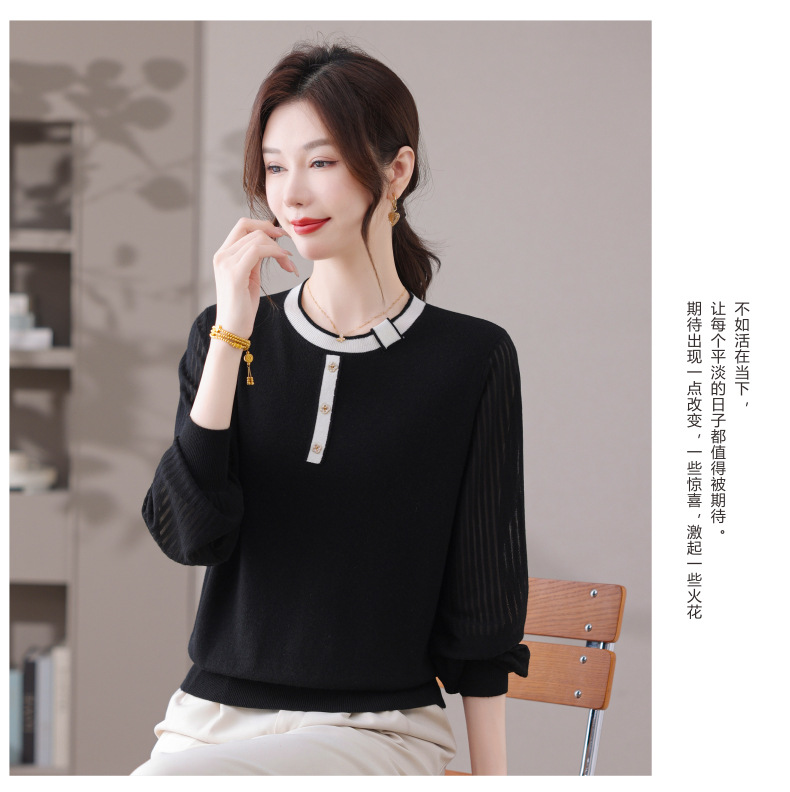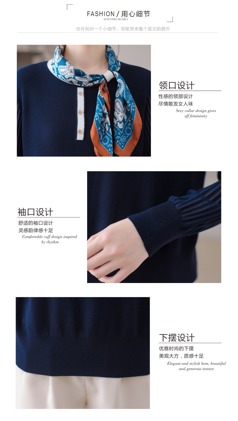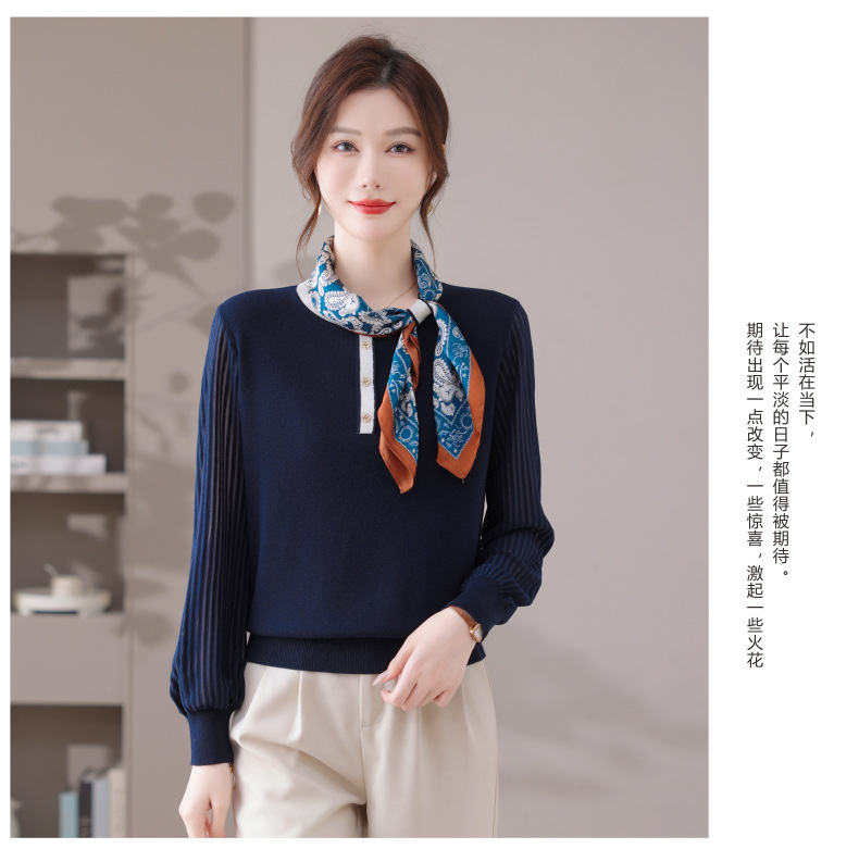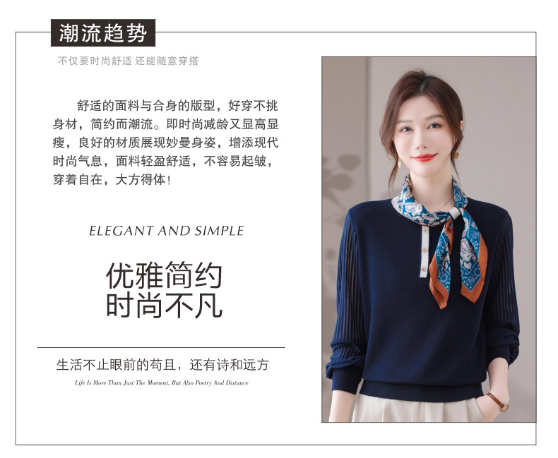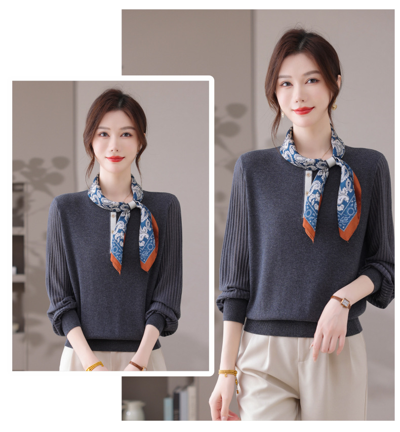 CC漂亮减龄打底衫短款洋气新款春秋薄款针织衫带丝巾的上衣气质时髦