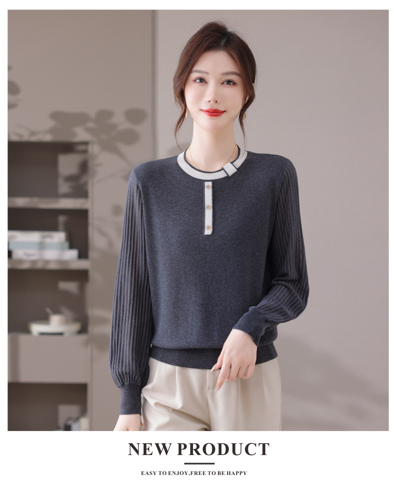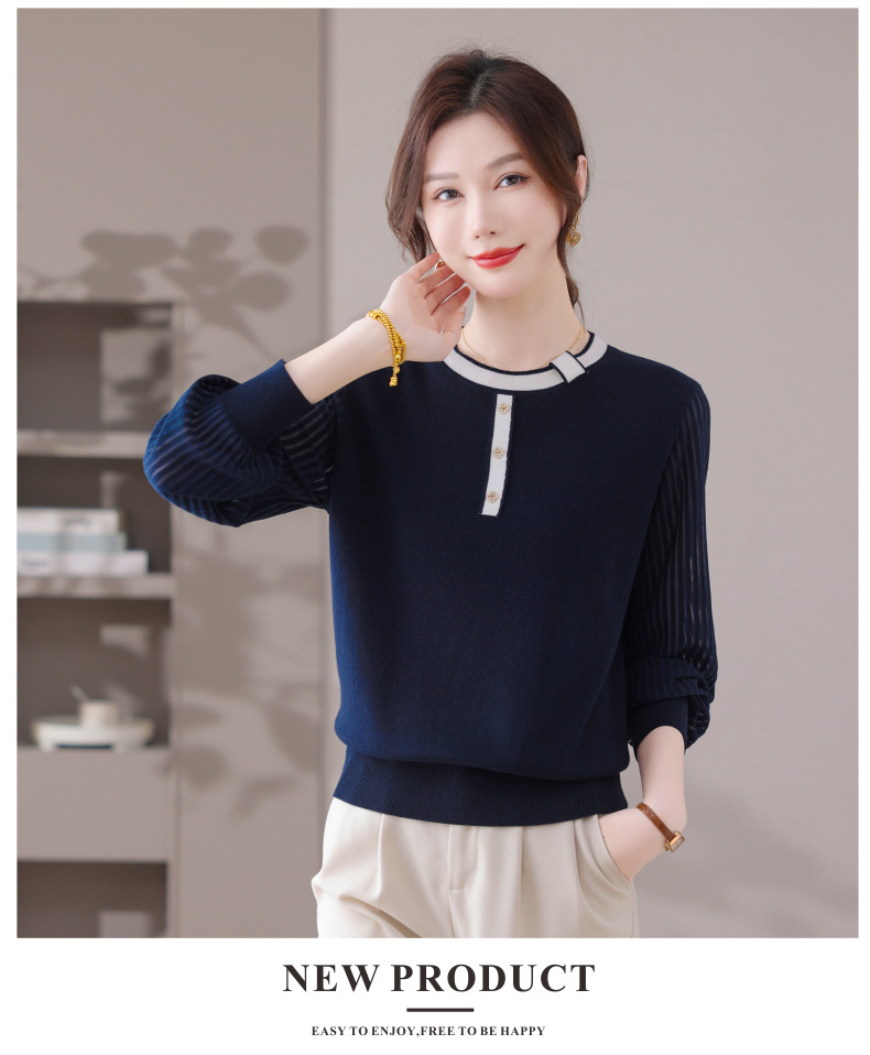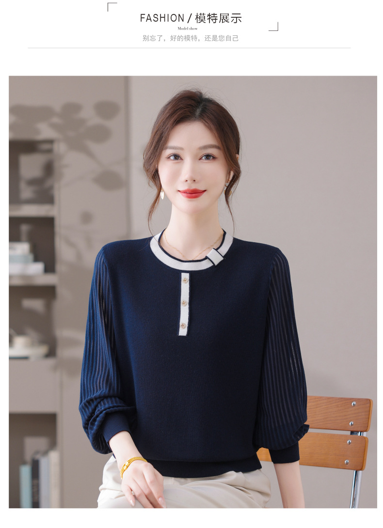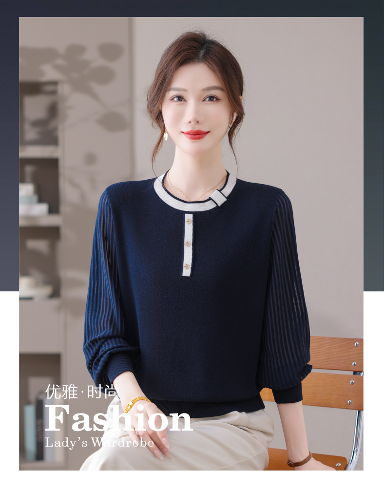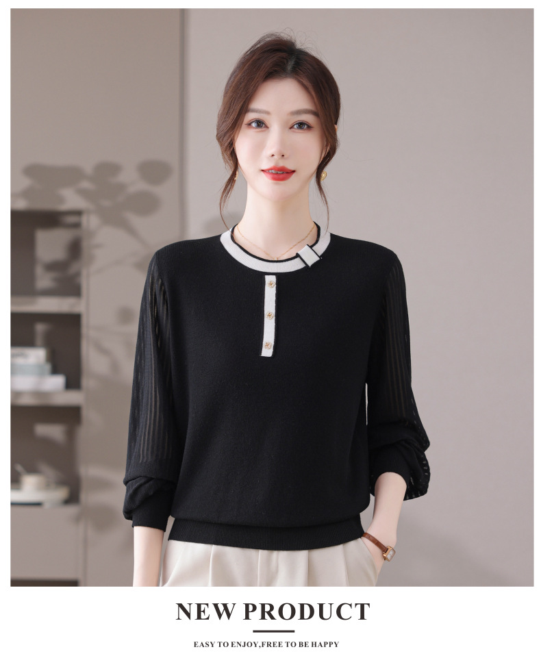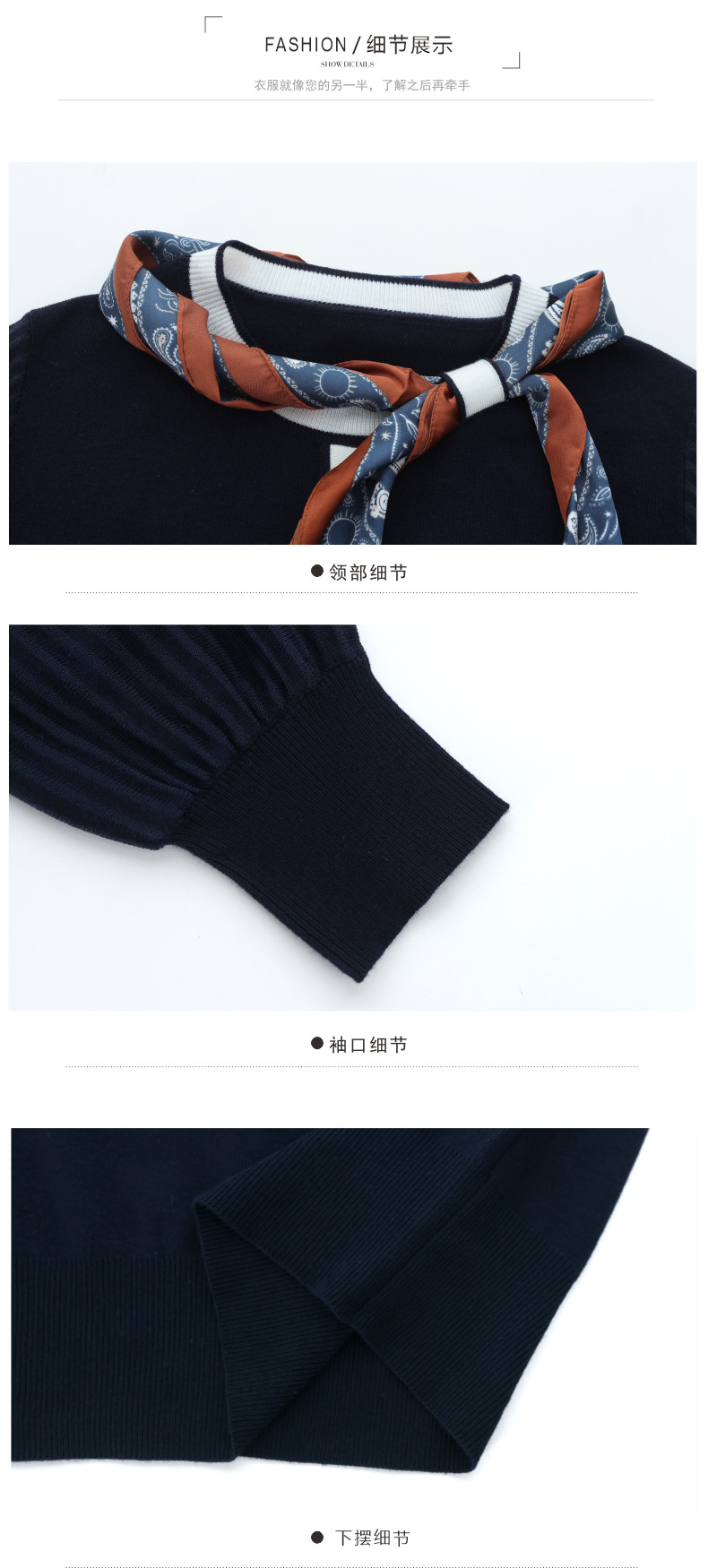 CC漂亮减龄打底衫短款洋气新款春秋薄款针织衫带丝巾的上衣气质时髦